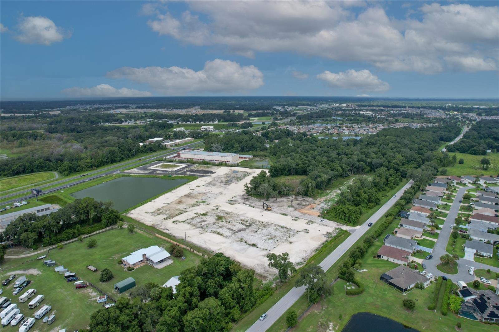 AVAILABLE, BACK ON THE MARKET!!! This is a prime location on the busy corridor SR 44 with over 21, 000 vehicles a day as well as full access to C44-A on the north side. The property is 18.2 acres with approximately 615 feet of frontage on SR 44. Take advantage of this rare opportunity to own this large of a parcel with such close proximity to The Villages Brownwood Paddock Square. The buyer has the option to complete the currently permitted plaza or create their own mixed use, commercial, medical, retail, etc. The infrastructure is near complete for the plaza or salvageable for your new use. The water retention pond was designed for the intended plaza, so all 18.2 acres are compensated for in this retention pond.