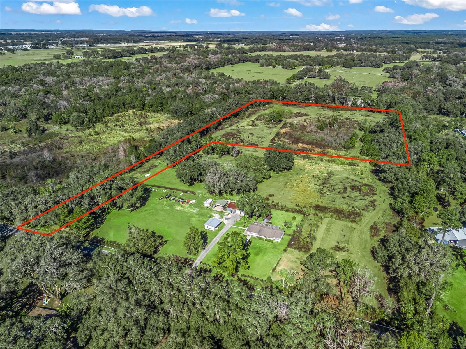 Discover a truly special opportunity to own a beautiful piece of Sumter County countryside, perfectly tucked away along C-44A near SR 44. This exceptional vacant flag-lot parcel features a generous 100-foot-wide private driveway that leads you into a serene and picturesque homesite. Zoned Agricultural, this property invites you to embrace a rural lifestyle—bring your pets, build a horse barn, and design the dream home you’ve always envisioned. Surrounded by other farms and spacious homesites with acreage and barns, the setting feels peaceful and open while still being incredibly private. Enjoy easy access to SR 44 and I-75, placing you just a short drive from Wildwood, The Villages, and Ocala. Experience the best of both worlds: nearby shopping, dining, and entertainment, then return home to your own private retreat where nature and tranquility take center stage. For those seeking even more space and versatility, this vacant land may be purchased in conjunction with the neighboring homesite, creating an impressive 20-acre estate. The adjoining property includes a 3-bedroom, 2-bath concrete block home, a 24’ x 40’ concrete block office/storage building, a 24’ x 49’ three-bay carport with an 8’ x 24’ workshop, and a 10’ x 14’ utility shed, perfect for equipment, hobbies, or gardening needs. Buy just the vacant land or buy it all. The possibilities here are truly endless. This is a rare chance to secure acreage, privacy, and convenience in one remarkable property. Seller has a survey.