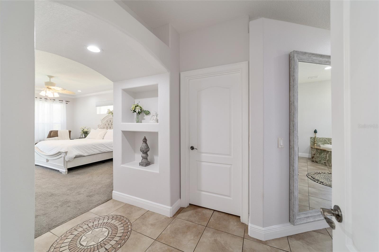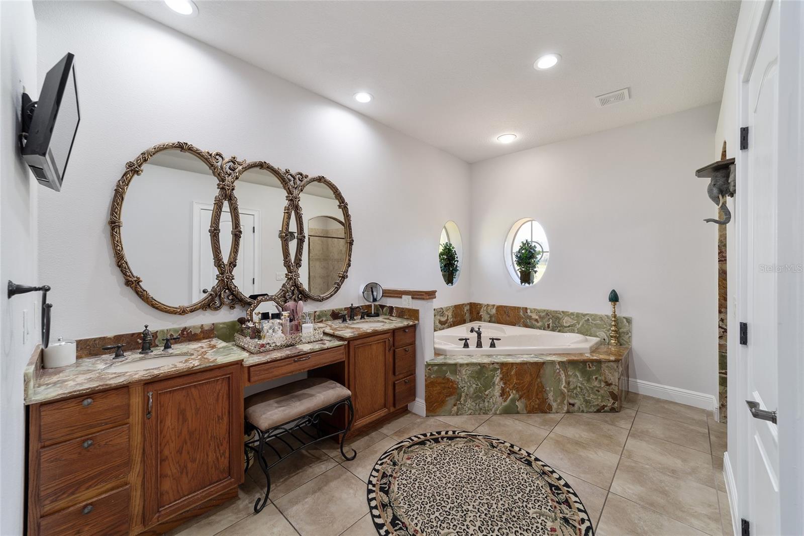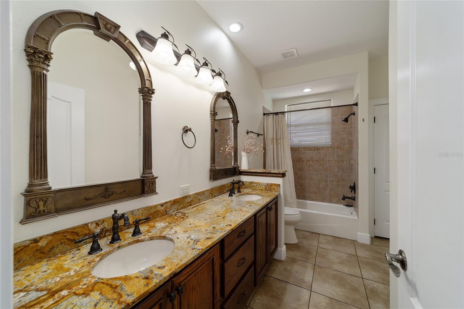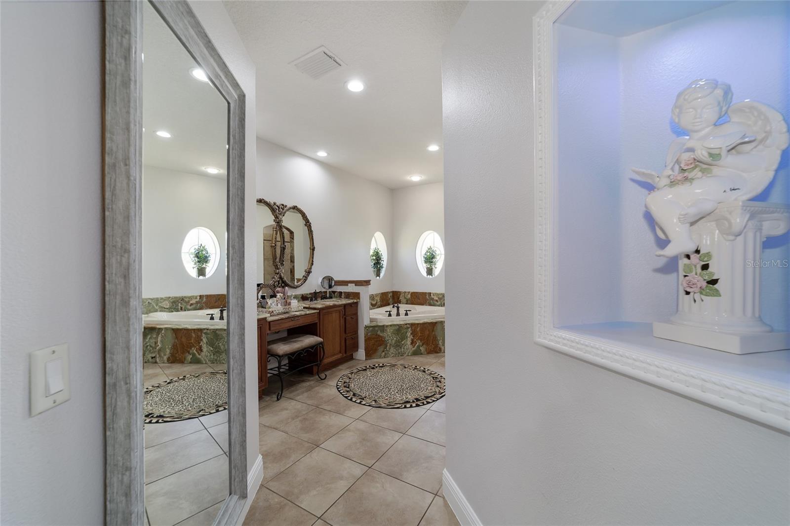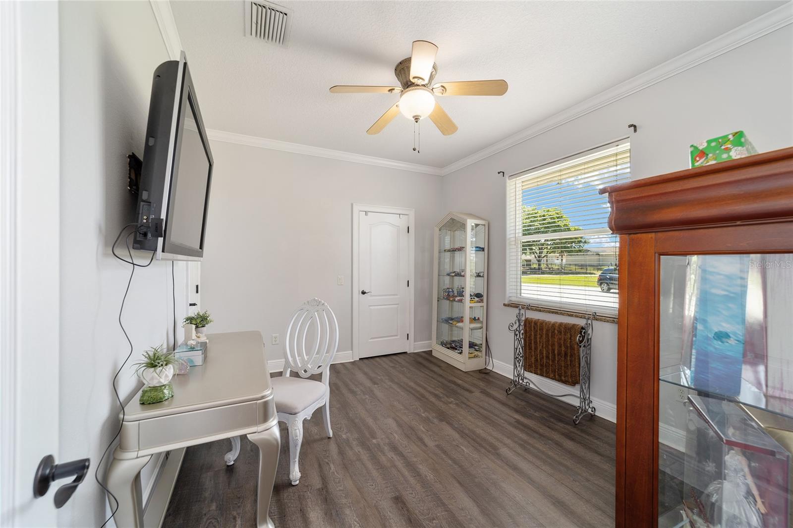 Welcome to your dream home in the coveted Fox Hollow subdivision, a rare gem nestled just minutes away from The Villages, Florida. This expansive property boasts over an acre of land and features a spacious 4-Bedroom / 2-Bathroom plus Den and Formal Dining layout, offering ample space for both relaxation and entertainment. As you step inside, you'll be greeted by stunning Dual Leaded Glass Front Doors, soaring 12' Ceilings adorned with elegant Crown Molding throughout. Coin Corners and 5 1/4" baseboards add a touch of timeless charm to every corner. The heart of the home lies in its well-appointed Kitchen, complete with Solid Wood 42-inch Cabinetry, Imported Granite Countertops, Newer Black SS Samsung Appliances, including Gas Range, and convenient Pantry Closet. Ceramic and accent tile flooring flow seamlessly throughout the main areas, creating a cohesive and stylish ambiance. Escape to the luxurious Primary Bedroom retreat, featuring a spacious Walk-in Closet and sprawling attached En-Suite Bath complete with Jetted Tub and Custom Gorgeous Onyx stone surround. A Private Water Closet with Bidet adds an extra touch of indulgence, while a Slider off the Master Bedroom provides easy access to the tranquil lanai and pool area. Entertain guests with ease in the custom-built entertainment center, complete with plant and lighted accent shelving. Transom Entryway Windows in the office and primary bedroom flood the spaces with natural light. The Split Floor Plan ensures privacy, with three additional bedrooms located away from the primary suite. Upstairs, the Bonus 4th Bedroom space offers versatility and convenience for guests or would make an excellent theater or hobby room! Step outside the quad pocket sliding doors off living room to your own private oasis where a 30 x 14 SALTWATER POOL awaits, complete with Triple Cascade Waterfalls for a touch of luxury. A HUGE Birdcage (New in 2019) and Lanai overlook the completely fenced, north-facing backyard, providing the perfect setting for outdoor gatherings or quiet relaxation. Low-maintenance stone hardscaping and meticulously maintained yard featuring mature plantings, extensive accent and pathway lighting along with in-ground irrigation system create a sense of grandeur and sophistication and complete the luxury exterior. This home is built to last with block and stucco construction. Additional amenities include a whole-house vacuum system, separate Laundry Room with Newer Washer/ and Dryer, Dual HVAC system (main unit New in 2022), Updated Hayward Pool equipment, Tankless Propane-powered RINNAI Hot Water Heater, and a New Storage Shed in 2020, and NEW ROOF in 2021. Don't miss your chance to own this exceptional property offering unparalleled privacy, luxury, and convenience in one of Florida's most desirable locations. Schedule your showing today and make this stunning residence your own!