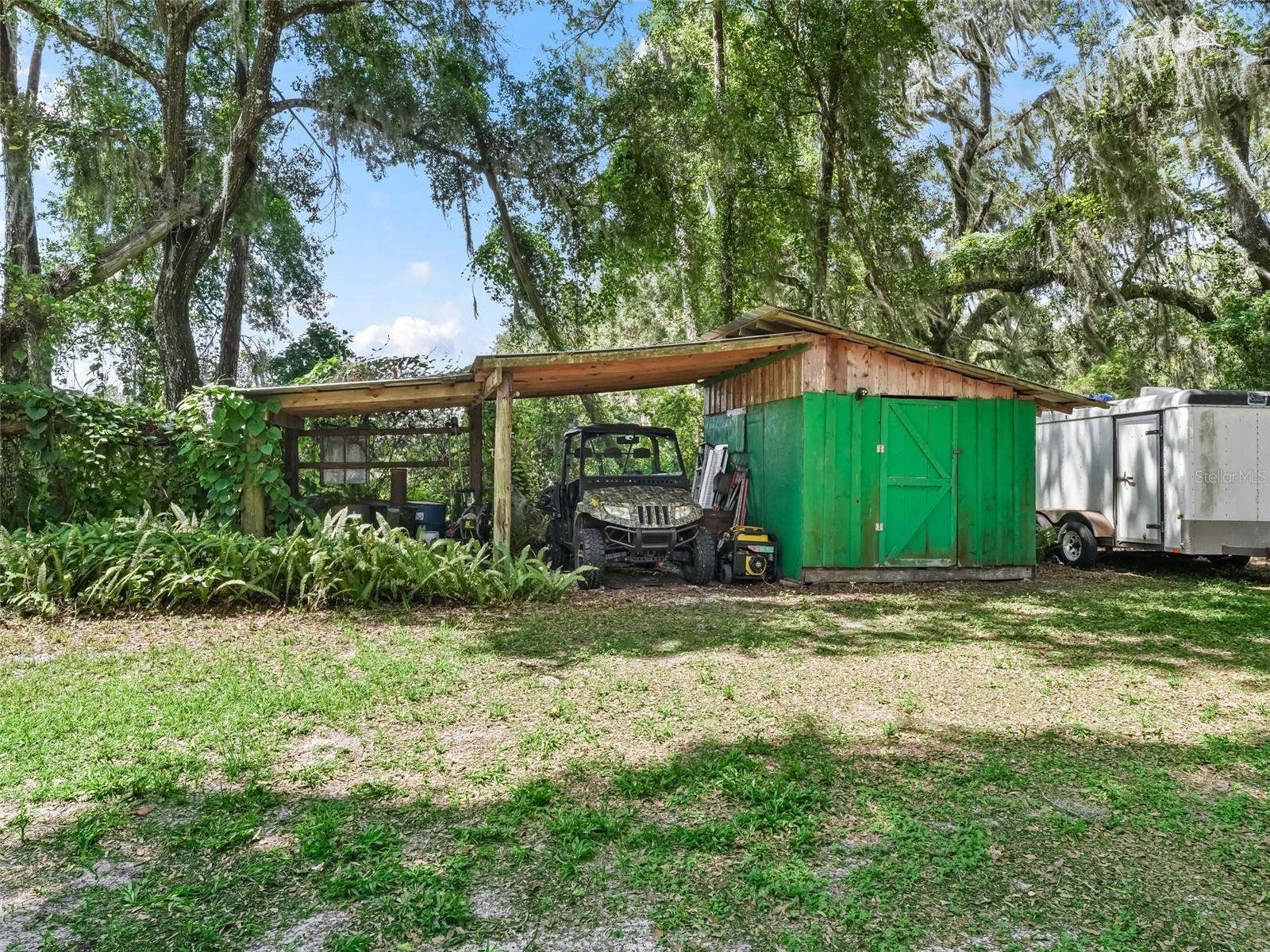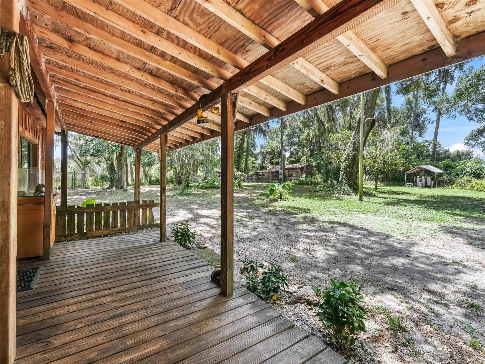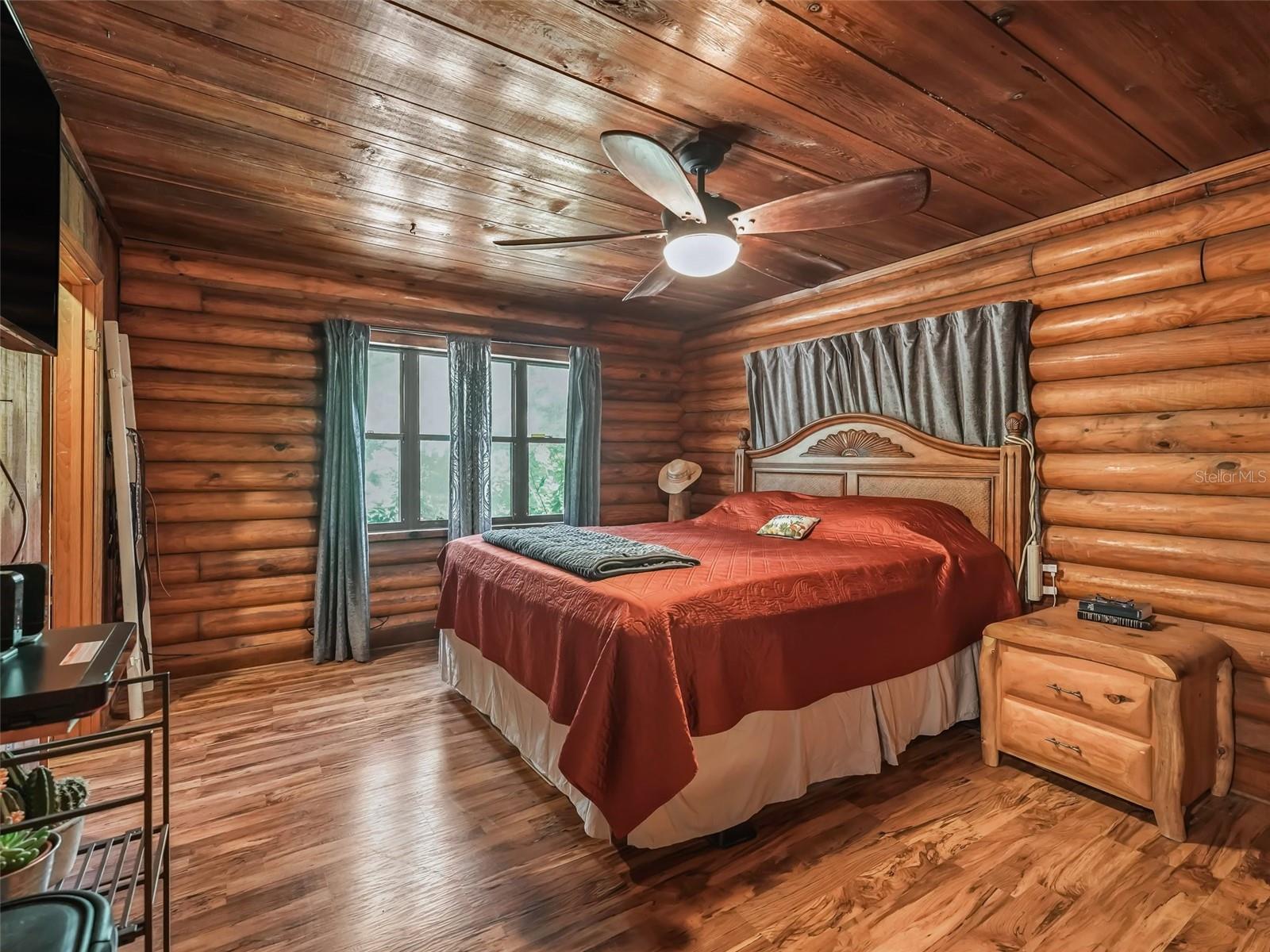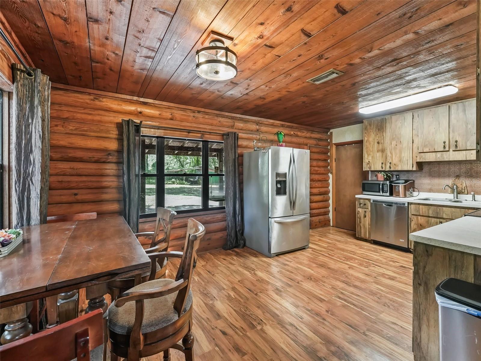 Discover tranquility and adventure! As you enter through the double gates and follow the pathway, anticipation builds, leading you to the charm of this delightful 22 +/- acre retreat. Upon arrival, you will notice the beautiful grandfather oaks thoughtfully placed throughout the property. Relax on your back porch while watching the wildlife. There is plenty of space for animals, as the property is fenced and cross-fenced—so feel free to bring your farm animals! The property features a six-stall barn ready for goats, pigs, or even miniature horses, along with several outbuildings for storage. Additionally, there are two pole barns for extra storage or to house your farm equipment and toys. Now, step into your very own log cabin! Upon entering, you will admire the pecky cypress wood beautifully integrated throughout the home, complementing the wood grain vinyl flooring. You'll instantly feel the charm of Southern living! The house offers two bedrooms and a bonus room that can serve as an office or family room. With spacious living areas, this home provides a warm and inviting atmosphere for you and your loved ones, creating an ideal space for entertaining or simply relaxing. Imagine waking up to the peaceful sounds of nature. Secluded yet conveniently located near The Villages, Tampa, Orlando, and Ocala, you will have access to all the amenities you desire. If you have a need for multiple home sites, the Sumter County Planning and Zoning Department indicates that the property has the potential to be split. Don’t miss the chance to make this your own piece of paradise!