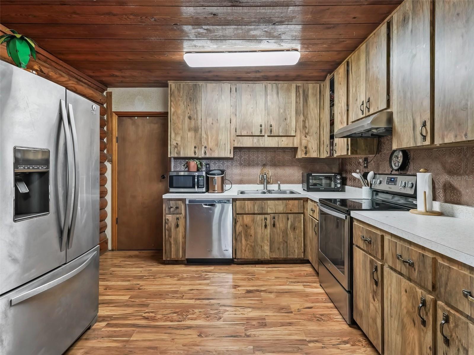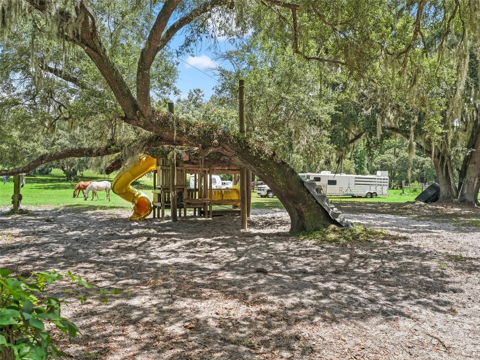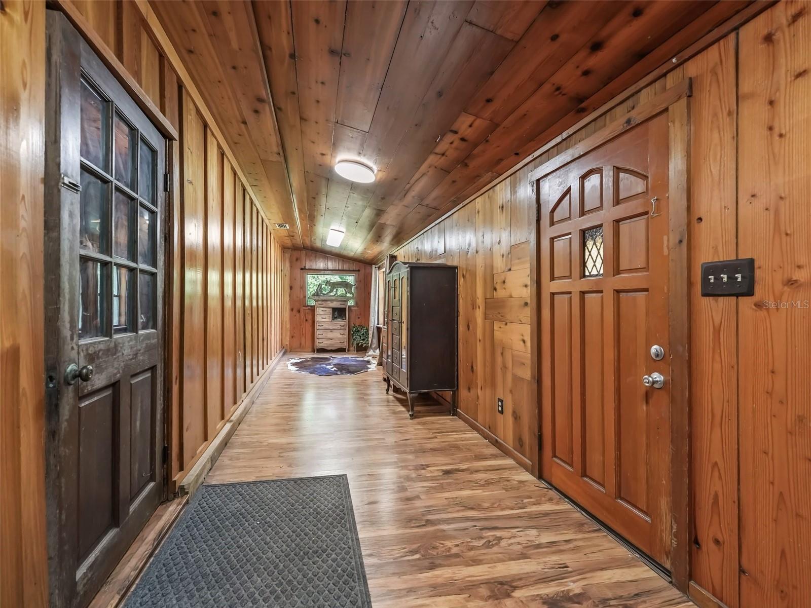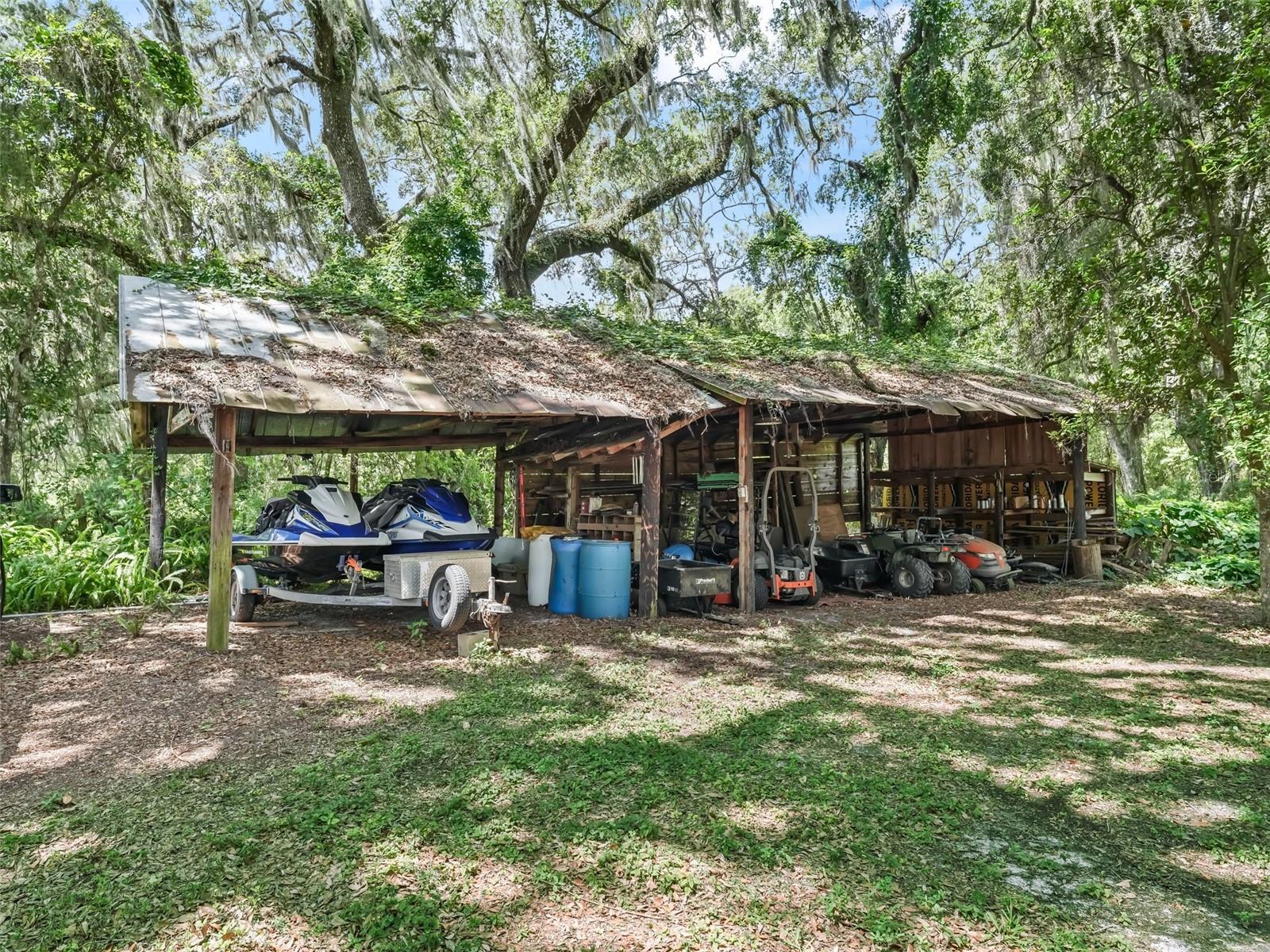 Discover tranquility and adventure! As you enter through the double gates and follow the pathway, anticipation builds, leading you to the charm of this delightful 22 +/- acre retreat. Upon arrival, you will notice the beautiful grandfather oaks thoughtfully placed throughout the property. Relax on your back porch while watching the wildlife. There is plenty of space for animals, as the property is fenced and cross-fenced—so feel free to bring your farm animals! The property features a six-stall barn ready for goats, pigs, or even miniature horses, along with several outbuildings for storage. Additionally, there are two pole barns for extra storage or to house your farm equipment and toys. Now, step into your very own log cabin! Upon entering, you will admire the pecky cypress wood beautifully integrated throughout the home, complementing the wood grain vinyl flooring. You'll instantly feel the charm of Southern living! The house offers two bedrooms and a bonus room that can serve as an office or family room. With spacious living areas, this home provides a warm and inviting atmosphere for you and your loved ones, creating an ideal space for entertaining or simply relaxing. Imagine waking up to the peaceful sounds of nature. Secluded yet conveniently located near The Villages, Tampa, Orlando, and Ocala, you will have access to all the amenities you desire. If you have a need for multiple home sites, the Sumter County Planning and Zoning Department indicates that the property has the potential to be split. Don’t miss the chance to make this your own piece of paradise!