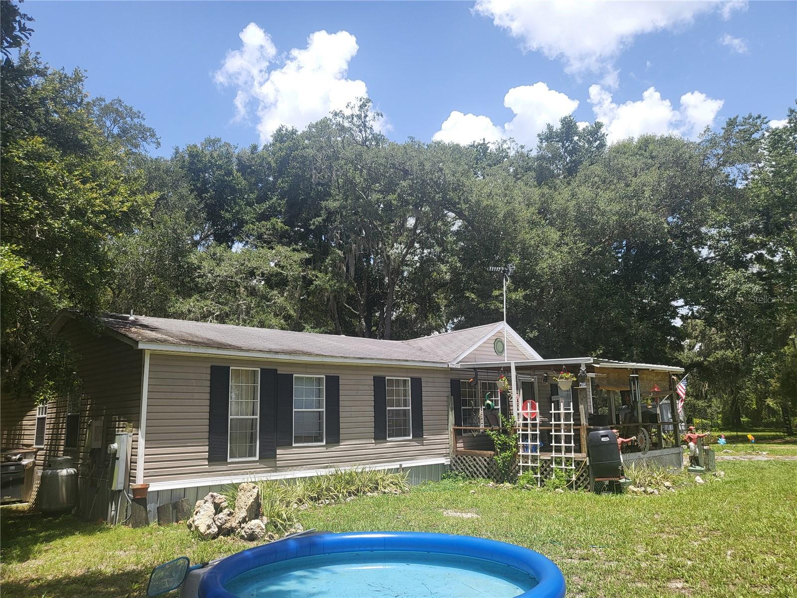 2.45 Acres on quiet paved road near the Villages of Fenny where there is shopping, restaurants, medical centers, Publix, and lots more. The property is totally fenced with lots of sheds and shelter for horses, and gorgeous Oak trees. There are 2 decks attached and an addition that was added but not totally finished. Lots of space for all your toys, tractors or other. There is also 2-car garage. There is no HOA, newer AC unit, wood floors in living and dining room.