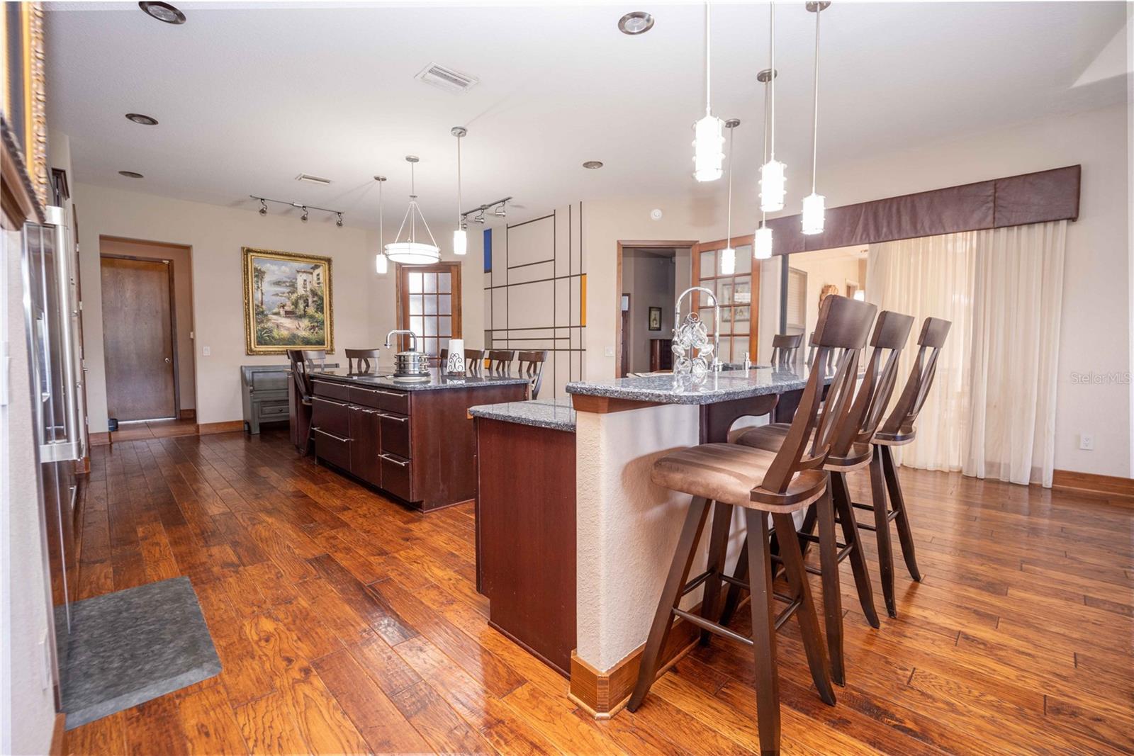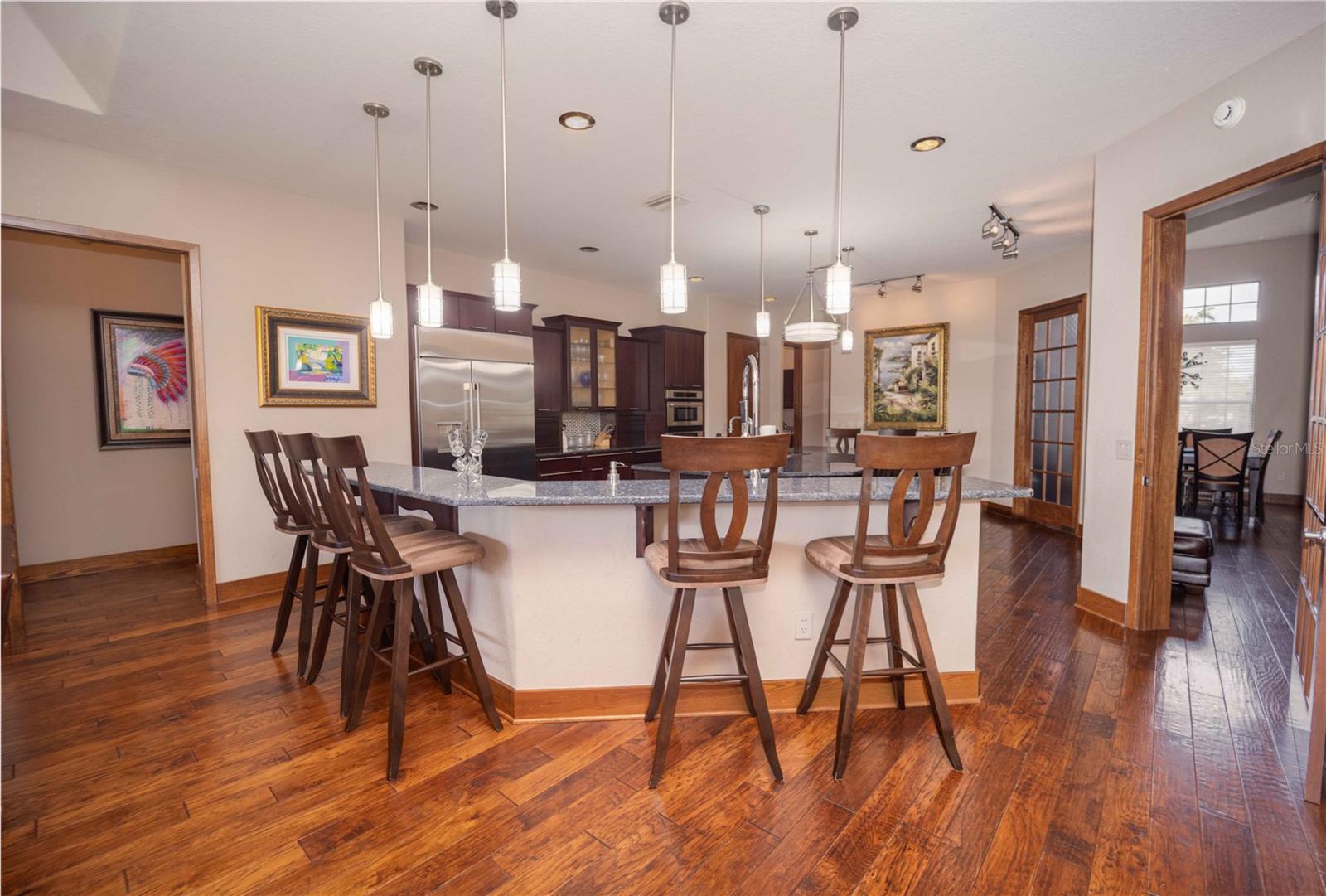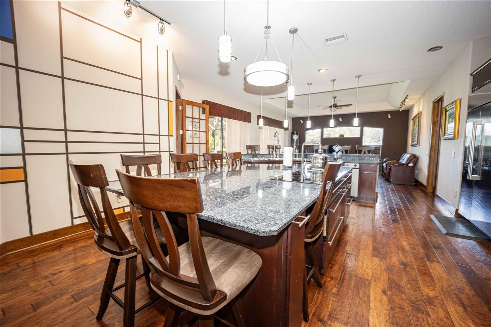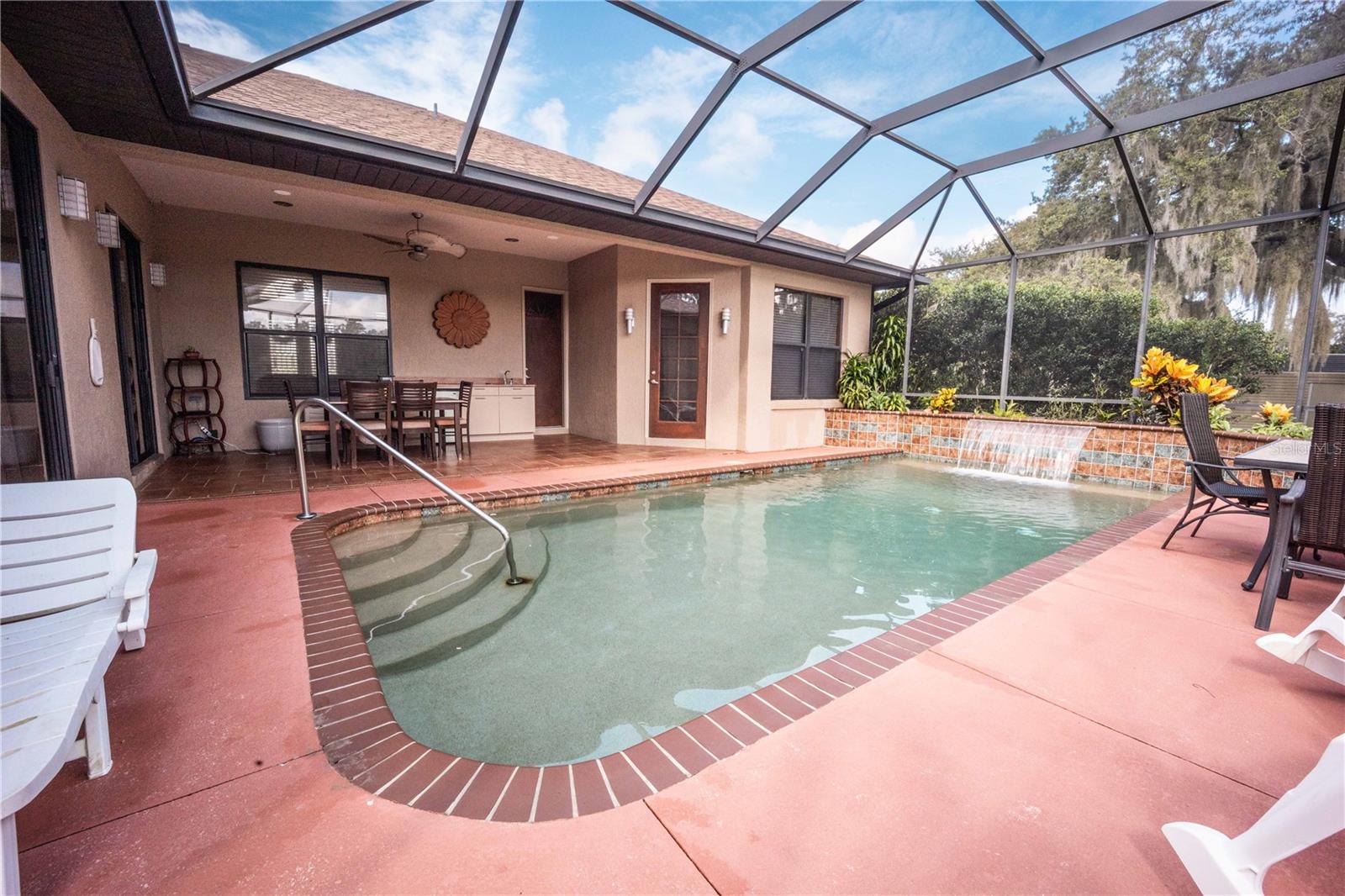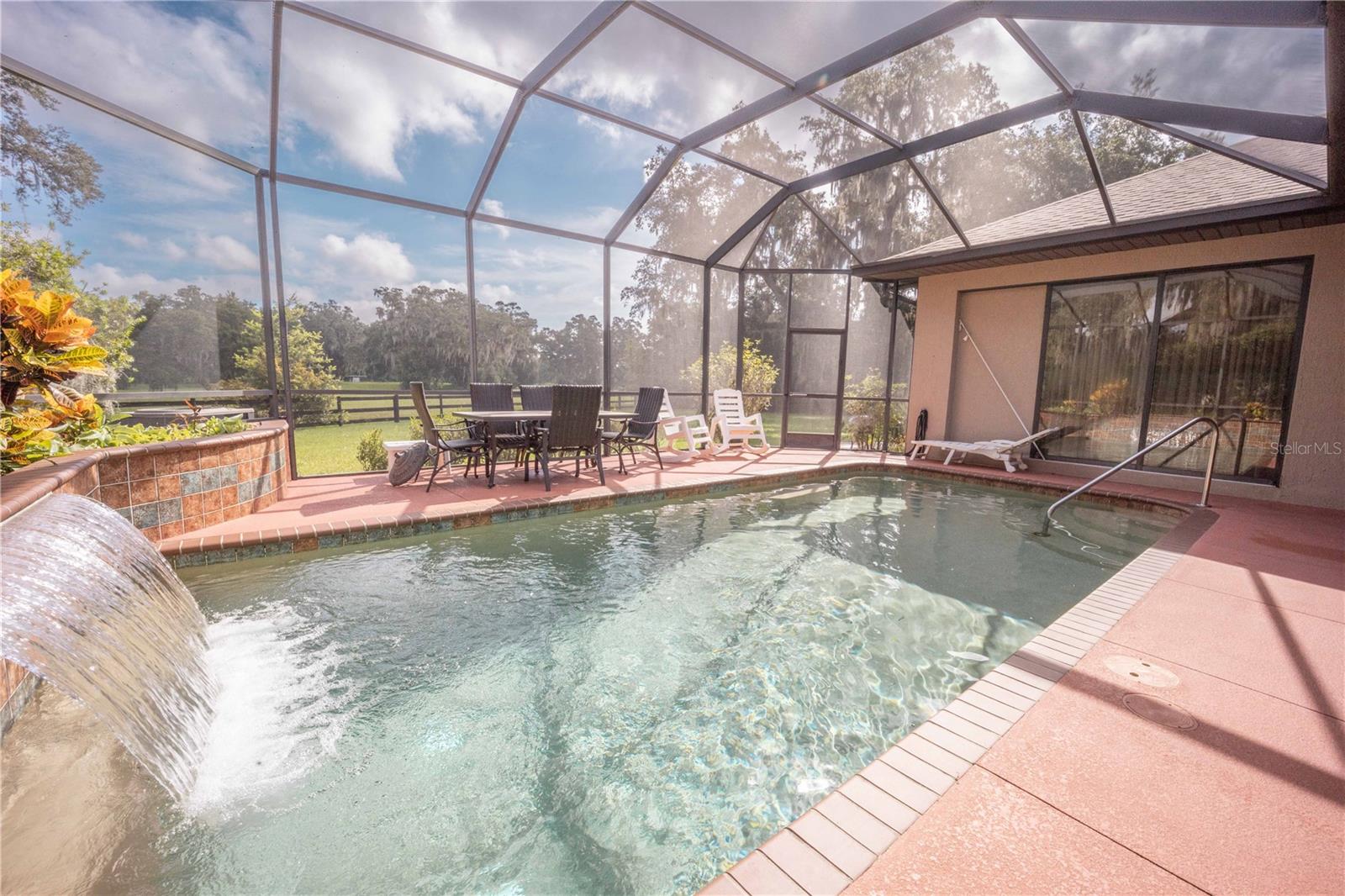 CUSTOM BUILT POOL HOME! NO HOA, NO DEED RESTRICTIONS! You won’t want to miss out on this rare opportunity! Welcome to this stunning custom-built 3 BR / 3 BA pool home situated on over an acre of land. As you enter the home you enter through 8-foot doors and 10+ foot ceilings that create an inviting and spacious atmosphere. Engineered hardwood floors flow seamlessly throughout the split floor plan. The master suite lives up to its name, with a tray ceiling and a luxurious bathroom with a private water closet, a bathtub, and a walk-in shower. The heart of the home is the gourmet kitchen, boasting hardwood cabinetry, granite countertops, stainless steel appliances, and an impressive oversized island. The sliding glass doors lead you to the screened-in pool area, an ideal spot for summertime relaxation and outdoor gatherings. The backyard is fenced in and provides plenty of room for many outdoor activities. The property also includes a new home generator and a shed in the backyard, providing additional storage space. The roof was also replaced in 2023. Located within The Fairways, this home is NOT part of the Homeowner’s Association, allowing you the benefits of the community without the fees of restrictions. This Home is truly one of a kind - call today to schedule your private showing!