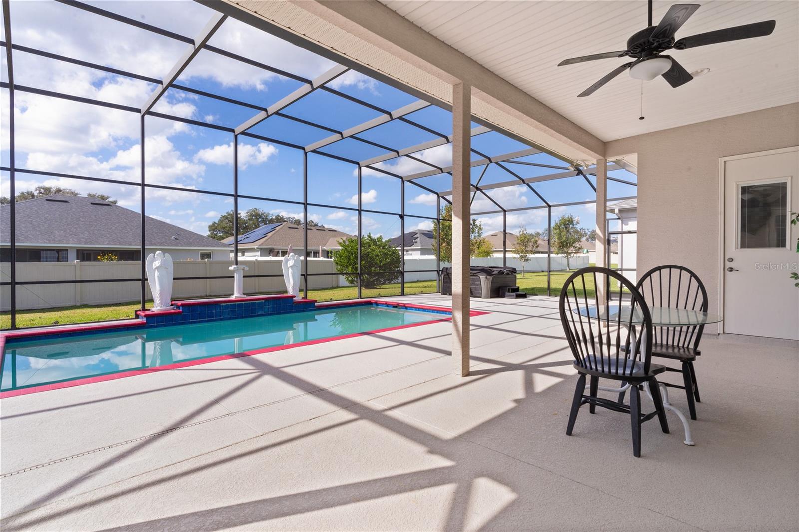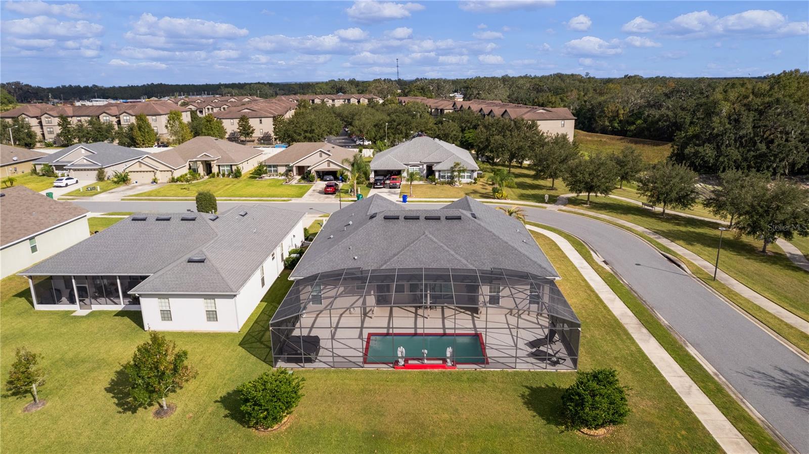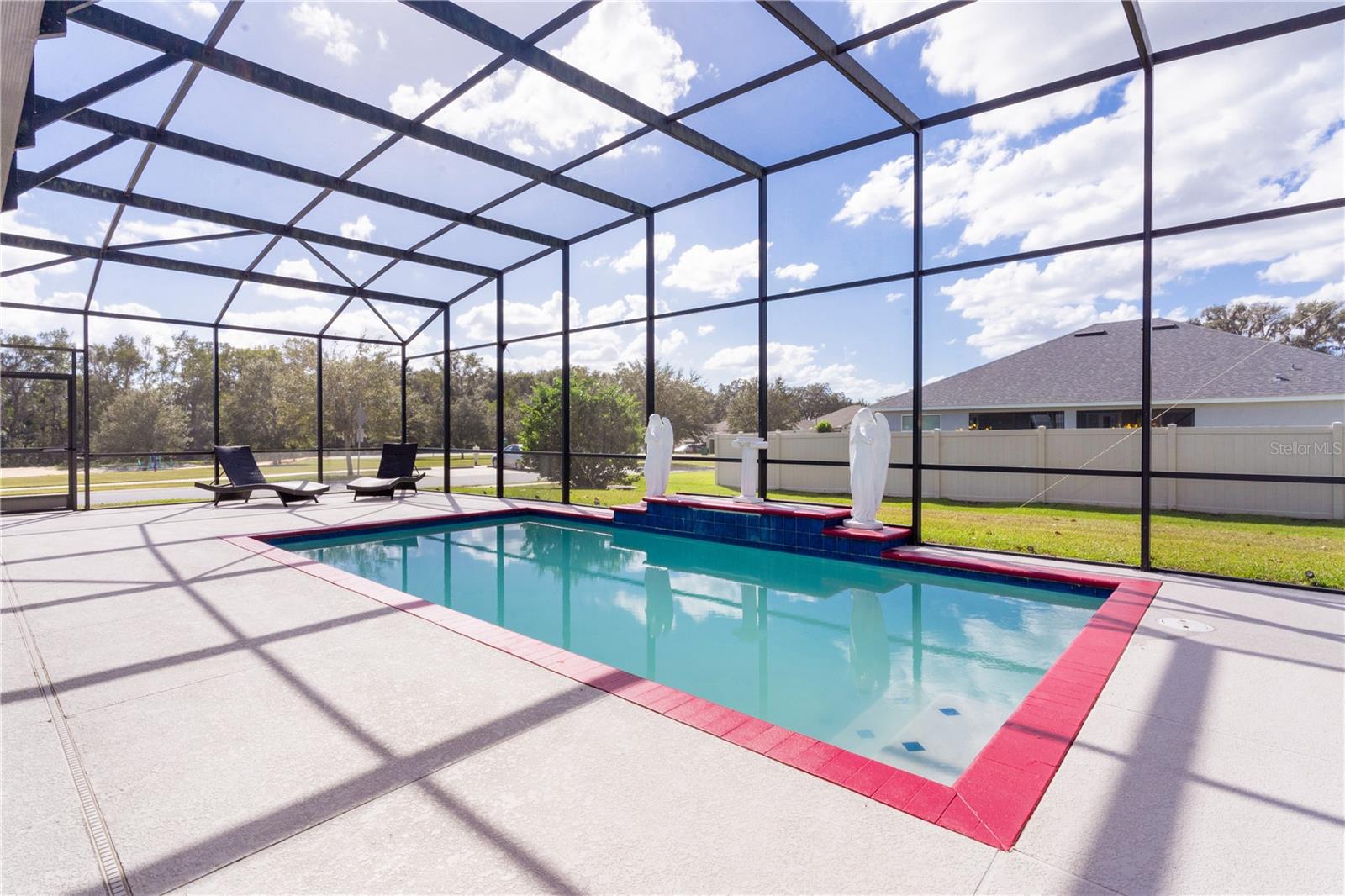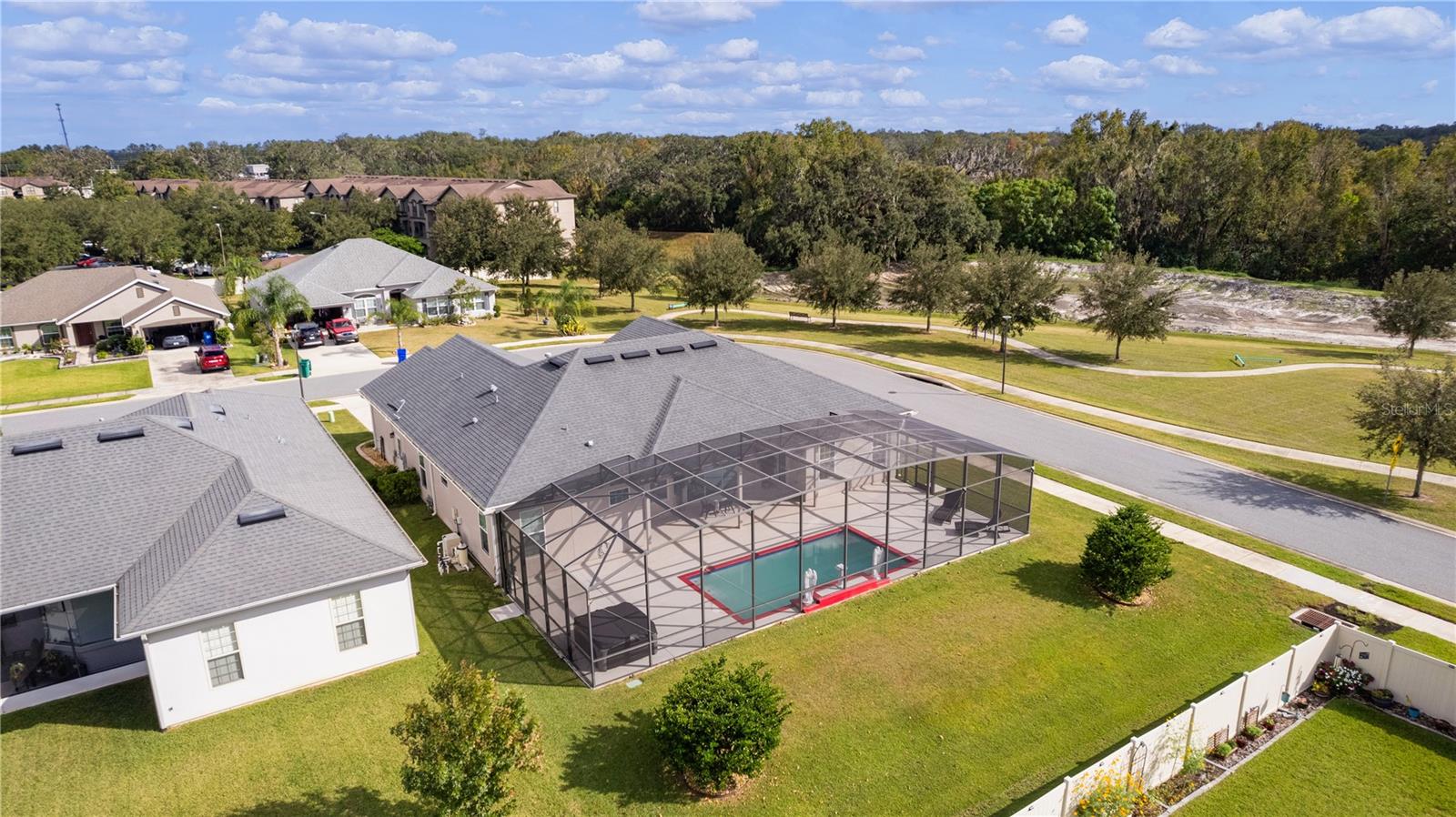Stunning Move-In Ready Saltwater Pool Home in Pepper Tree Village, just minutes from Brownwood Paddock Squares, schools, and much more! Discover your dream home in this beautifully maintained 4-bedroom, 3-bathroom residence in the desirable Wildwood community. Situated on a generous .26-acre corner lot, this property overlooks a lovely community park with exercise equipment and is just minutes away from The Villages, schools, dining, shopping, and entertainment. This home boasts an open floor plan with soaring ceilings and abundant natural light. The spacious kitchen features Samsung stainless steel appliances, a natural Gas stove, granite countertops, stylish shaker cabinetry with soft-close hinges, a kitchen island, and a pantry—perfect for culinary enthusiasts. The common areas have wood-like tile flooring, and the living area seamlessly connects to the expansive screened-in birdcage and sparkling saltwater pool, making it an ideal space for entertaining family and friends. Retreat to the luxurious master suite with private patio access and an ensuite featuring a walking closet, double sinks, a beautifully remodeled bathtub, and a walk-in shower. The additional bedrooms are spacious and inviting, with well-appointed bathrooms, one of which serves as a convenient pool bath. With an oversized 2-car garage, this home combines style and practicality. Don’t miss out on this exceptional property—call today to schedule your showing! Check out our video tour!!