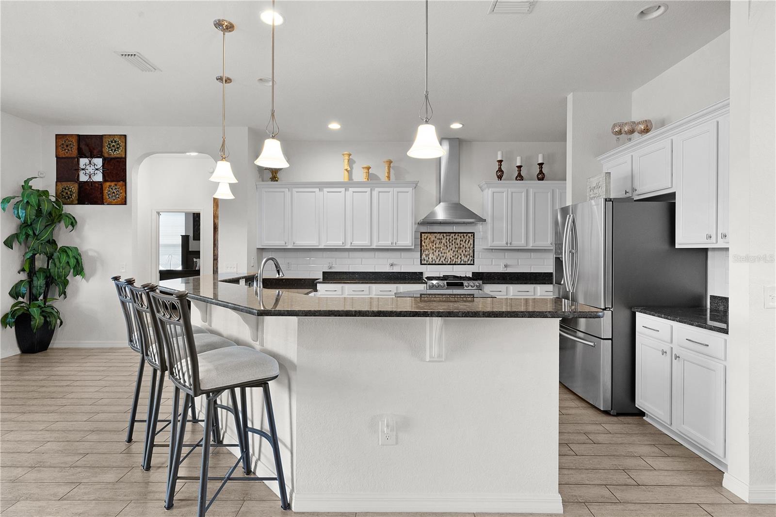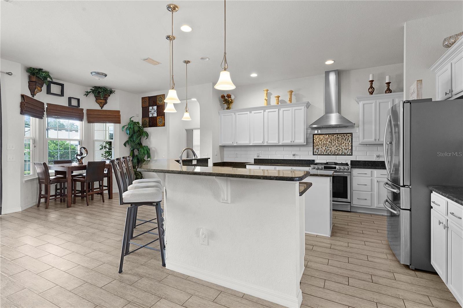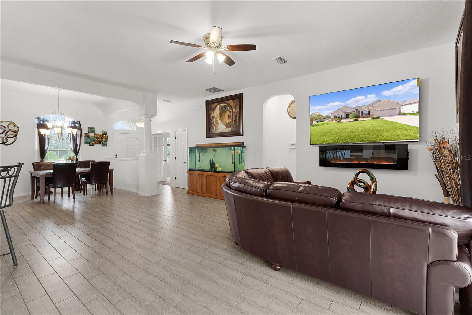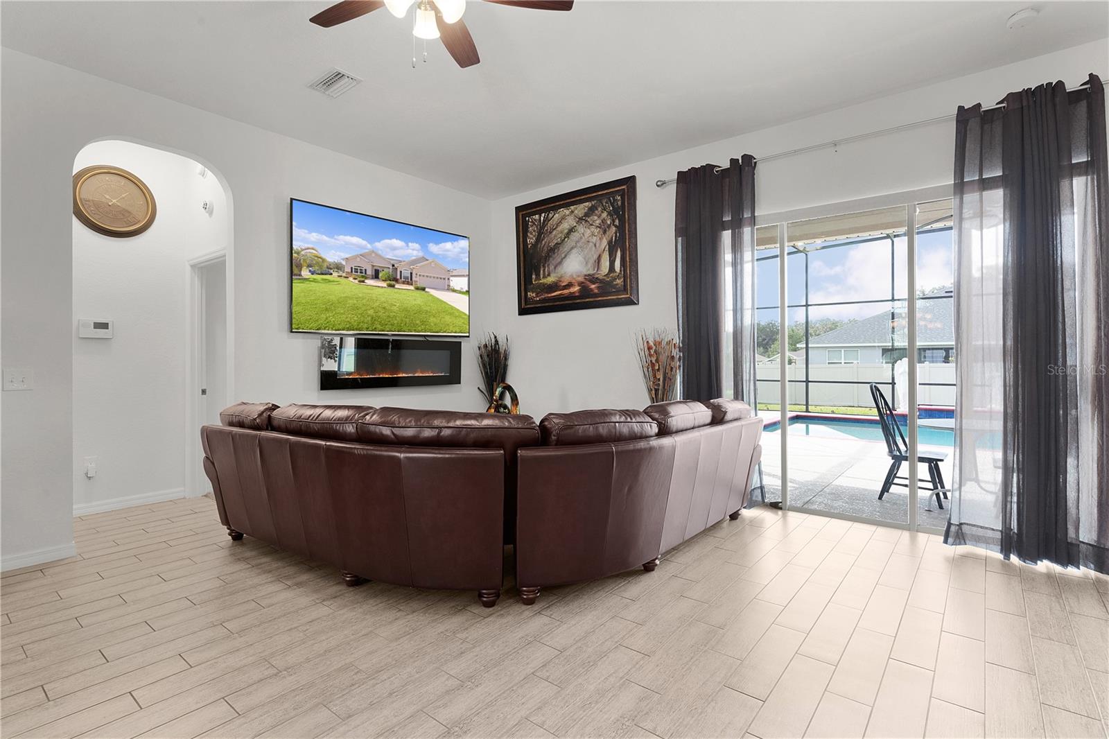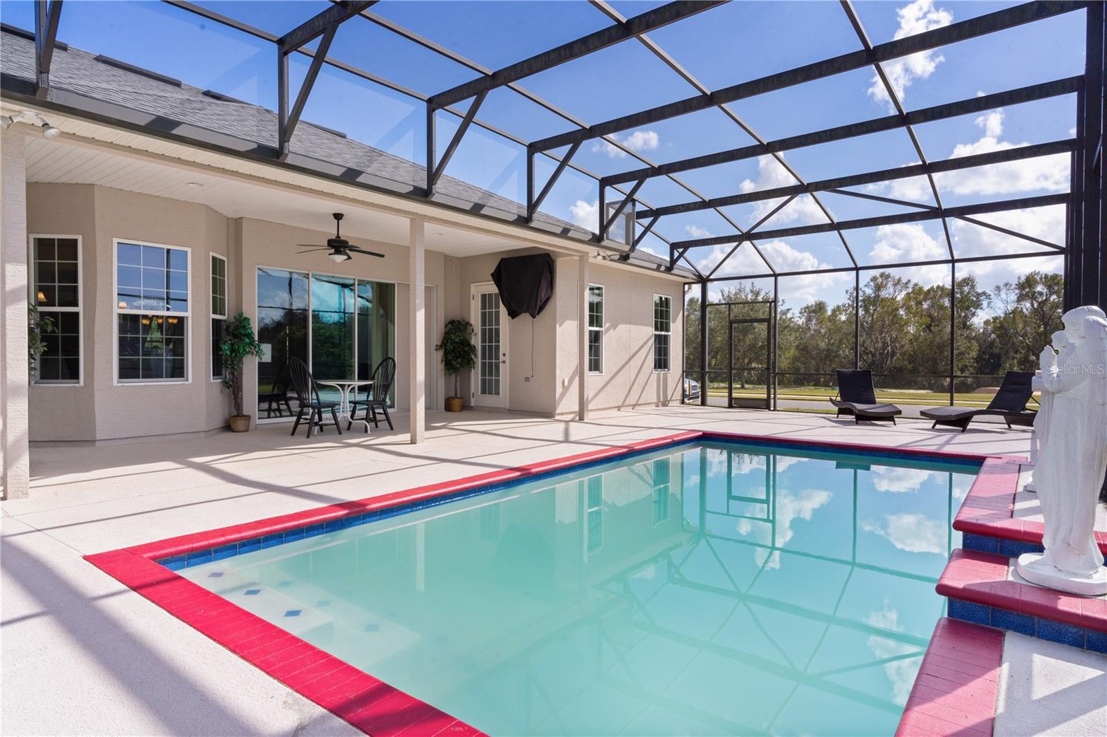 Stunning Move-In Ready Saltwater Pool Home in Pepper Tree Village, just minutes from Brownwood Paddock Squares, schools, and much more! Discover your dream home in this beautifully maintained 4-bedroom, 3-bathroom residence in the desirable Wildwood community. Situated on a generous .26-acre corner lot, this property overlooks a lovely community park with exercise equipment and is just minutes away from The Villages, schools, dining, shopping, and entertainment. This home boasts an open floor plan with soaring ceilings and abundant natural light. The spacious kitchen features Samsung stainless steel appliances, a natural Gas stove, granite countertops, stylish shaker cabinetry with soft-close hinges, a kitchen island, and a pantry—perfect for culinary enthusiasts. The common areas have wood-like tile flooring, and the living area seamlessly connects to the expansive screened-in birdcage and sparkling saltwater pool, making it an ideal space for entertaining family and friends. Retreat to the luxurious master suite with private patio access and an ensuite featuring a walking closet, double sinks, a beautifully remodeled bathtub, and a walk-in shower. The additional bedrooms are spacious and inviting, with well-appointed bathrooms, one of which serves as a convenient pool bath. With an oversized 2-car garage, this home combines style and practicality. Don’t miss out on this exceptional property—call today to schedule your showing! Check out our video tour!!