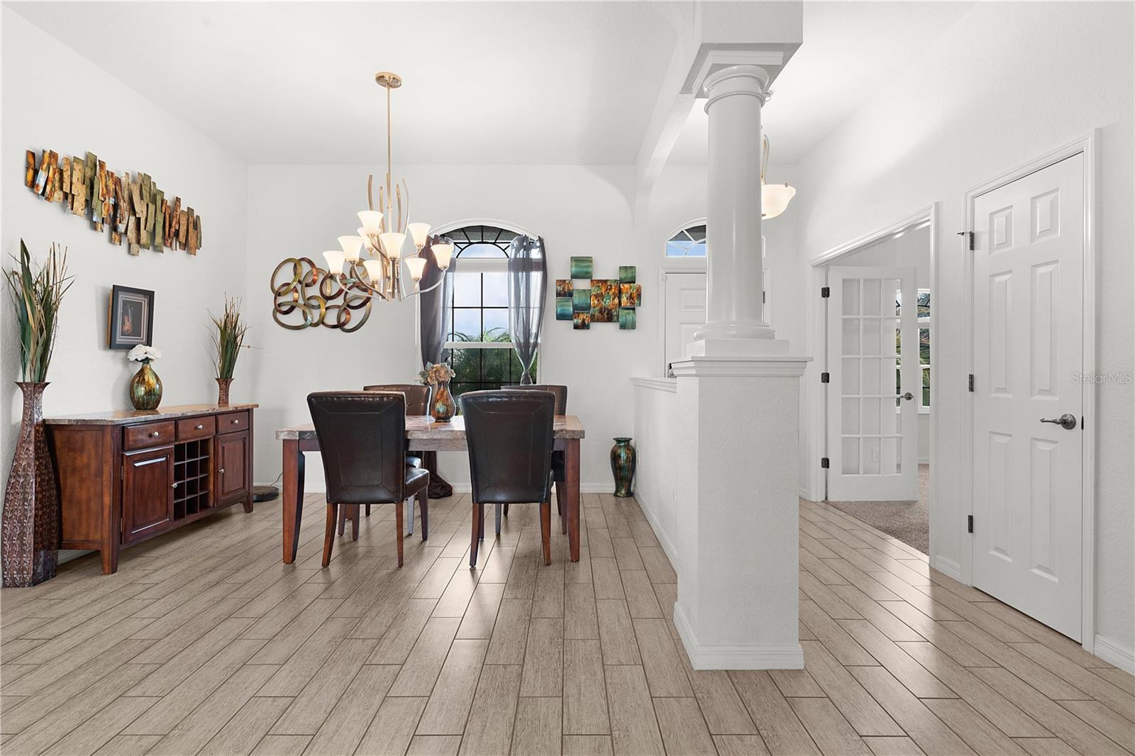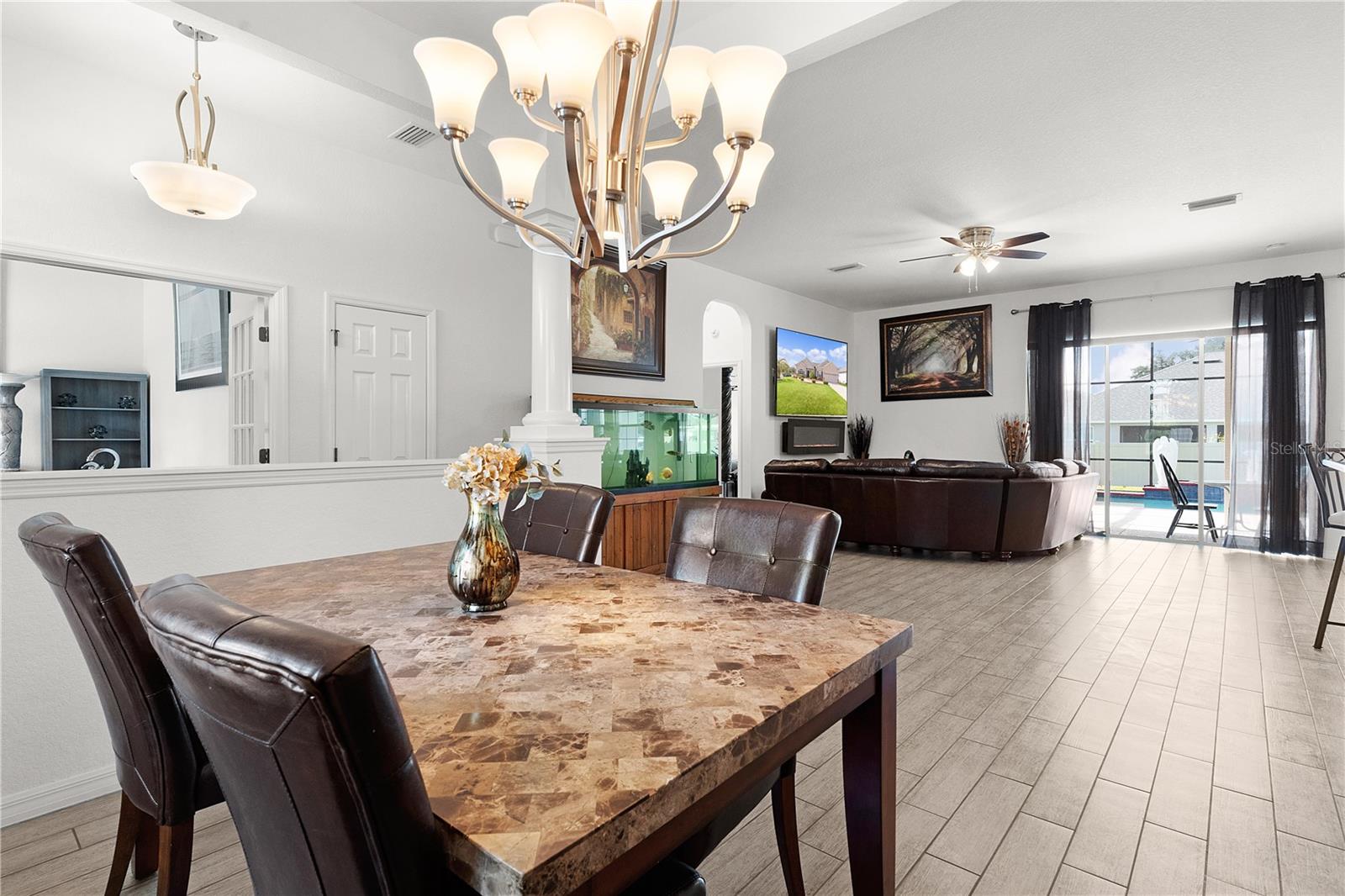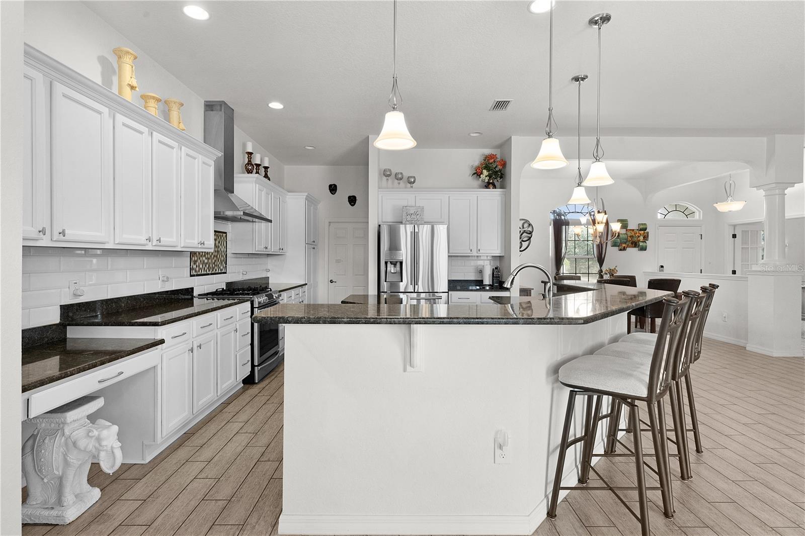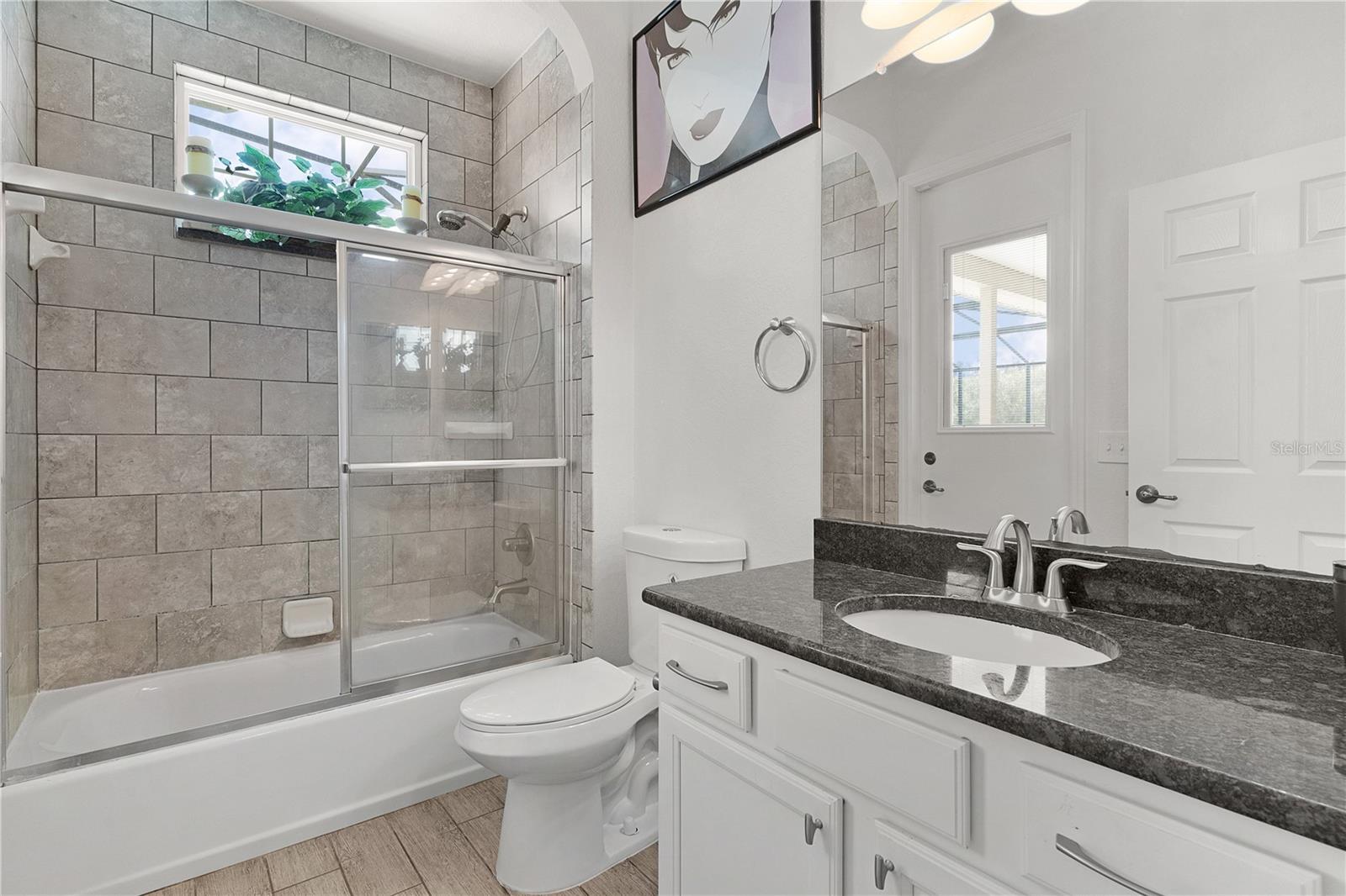 Stunning Move-In Ready Saltwater Pool Home in Pepper Tree Village, just minutes from Brownwood Paddock Squares, schools, and much more! Discover your dream home in this beautifully maintained 4-bedroom, 3-bathroom residence in the desirable Wildwood community. Situated on a generous .26-acre corner lot, this property overlooks a lovely community park with exercise equipment and is just minutes away from The Villages, schools, dining, shopping, and entertainment. This home boasts an open floor plan with soaring ceilings and abundant natural light. The spacious kitchen features Samsung stainless steel appliances, a natural Gas stove, granite countertops, stylish shaker cabinetry with soft-close hinges, a kitchen island, and a pantry—perfect for culinary enthusiasts. The common areas have wood-like tile flooring, and the living area seamlessly connects to the expansive screened-in birdcage and sparkling saltwater pool, making it an ideal space for entertaining family and friends. Retreat to the luxurious master suite with private patio access and an ensuite featuring a walking closet, double sinks, a beautifully remodeled bathtub, and a walk-in shower. The additional bedrooms are spacious and inviting, with well-appointed bathrooms, one of which serves as a convenient pool bath. With an oversized 2-car garage, this home combines style and practicality. Don’t miss out on this exceptional property—call today to schedule your showing! Check out our video tour!!