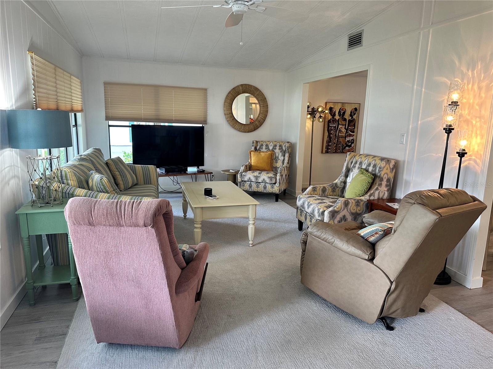 **Excellent, Move In Condition**This Property Looks and Feels FLORIDA. Airy, Beautiful, Spacious, Large Lot, Double Driveway, Double Carport, Screened Lanai and a Separate Laundry Room. A Golf Cart Garage with an Overhead Opening Electric Door Houses the Golf Cart, (Included). The Metal Roof and Rain Gutters are Cleaned Annually. The Air Conditioning Unit is 7 Yrs old and is Under a Service Contract. This is a Meticulously Maintained and Tastefully Furnished Property. You'll be treated to a Bauhaus Sofa, a 2d Trendy Striped Sofa and 2 Vibrant Accent Chairs. A Cool Dining Table with 8 Chairs, all Suited to the Florida Vibe. There are two New TVs. Also a Bar and Sink in the front Sunroom which opens into a Living/Dining Area Layout for Guests and Entertaining. New Gray Laminate Flooring throughout with 3/4 in Plywood Sub Flooring. Kitchen is Roomy with a Large Pass-Through to Adjacent room. Appliances have been seldom used. Spacious Master Bedroom with (again), Barely used King Sized Bed, Lovely En-Suite, Large Walk-In Plus 2 Closets. Second Bedroom is Tommy Bahama-style with a Roomy Walk-In Closet. Across the Hall is its Completely Redone Bathroom. Living in this Unique Space and Taking Advantage of Continental Country Club's Incredible Amenities could feel Like a New Lease on Life.