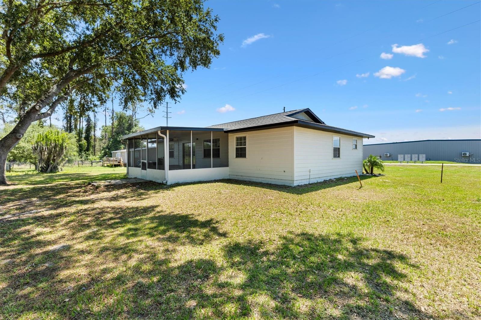 Welcome home to this charming 3BR/2BA situated on an oversized 0.56 ACRE lot with NO HOA nor DEED RESTRICTIONS! Situated in the heart of Wildwood this home is conveniently located to the Villages, schools, dining, shopping and so much more. With recent improvements such as paint, new roof(2021), water heater(2021), well(2021), and much more this home will give you ease of mind for years to come. Upon entering the home you are welcomed with tile flooring, a vaulted ceiling, an indoor laundry room, and an open floor plan. The kitchen features stainless steel appliances, plenty of cabinet space, and a kitchen island. The master suite is spacious with a walkin closet with built-ins and the master ensuite. The spare bedrooms are spacious with closets and a shared hall/guest bathroom. The exterior of the home features mature landscaping with a massive screened in lania and storage shed. Whether you are looking for your first home or wanting more space, this home checks out plenty of boxes so don't wait and call today for your private tour.