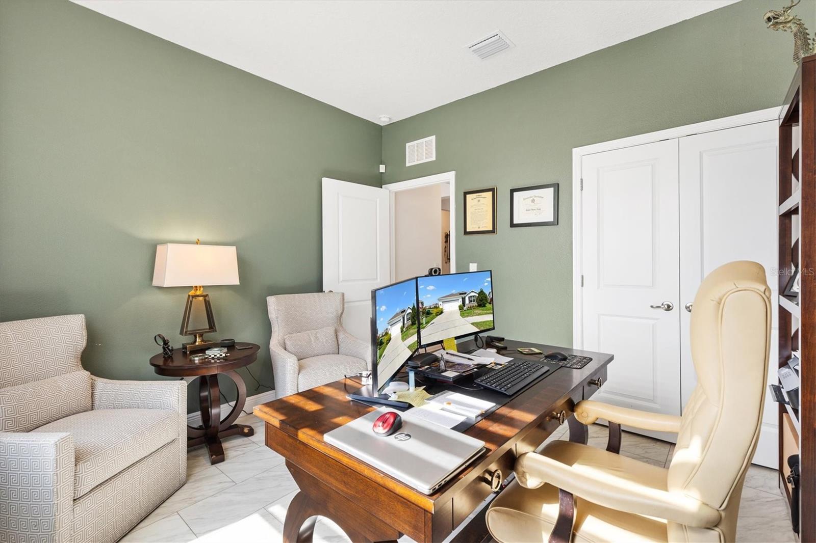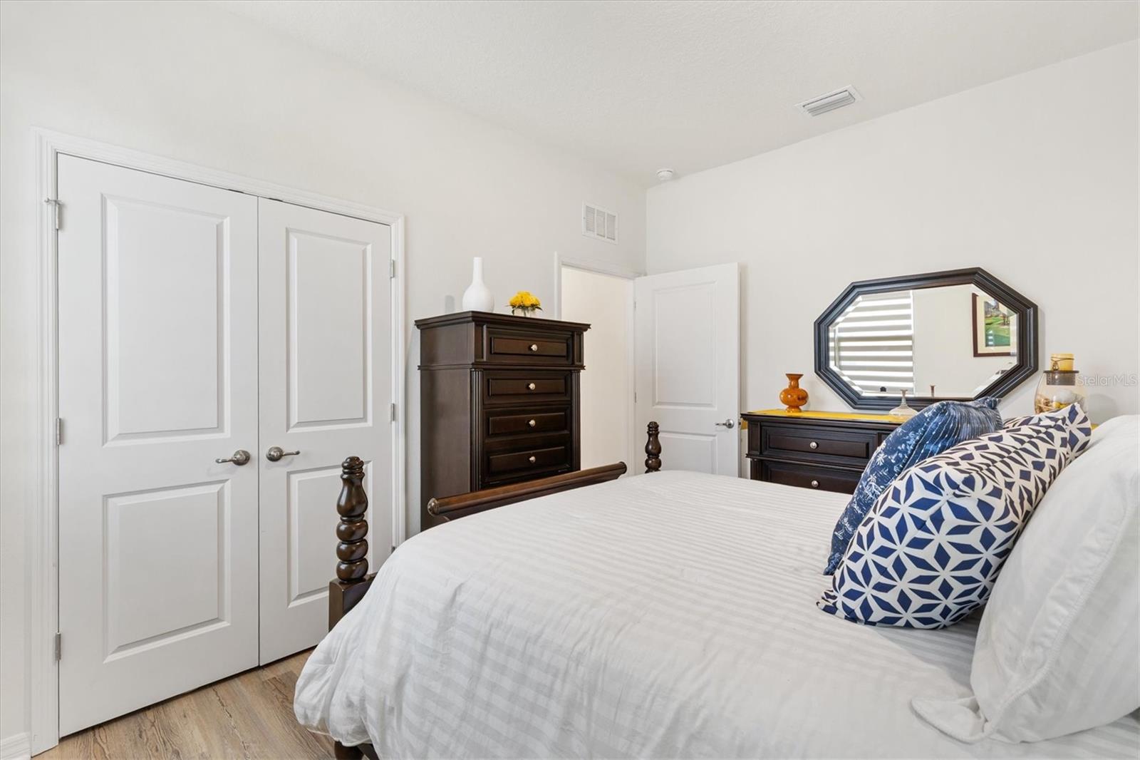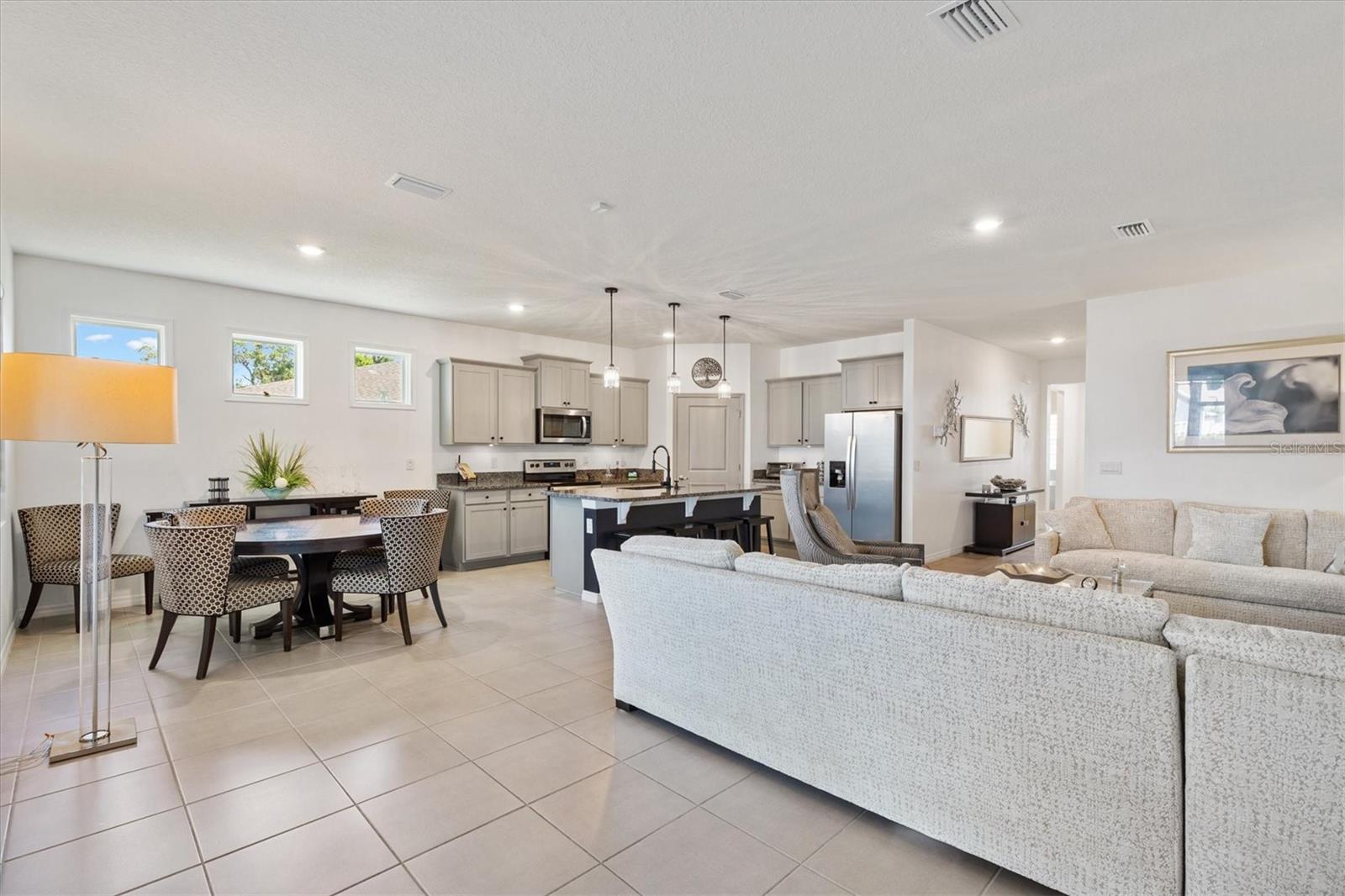 This 4-bedroom, 2-bath Delray model is the family home you’ve been waiting to find. It features a bright and inviting open floor plan perfect for both everyday living and entertaining. No contractor-grade finishes here! Custom upgrades in every room: from the screened-in lanai and entry-way, to the light-enhancing front door with leaded glass; from the fully-fenced yard with privacy screening, to the solar-powered whole home water filtration system providing you with limitless fresh, clean water; from the commercial gooseneck faucet in the kitchen and rainforest shower heads in the bathrooms, to the LVP flooring in the bedrooms; from the new stainless steel appliances, to the neutral-toned coordinated layered window shades; from the polyaspartic flake flooring on the lanai and garage floors, to the stucco interior of the garage that compliments home’s exterior finishes. This really is a must-see! You’ll love cooking in the spacious eat-in kitchen, complete with a temperature-controlled walk-in pantry. The oversized center island with 3 pendant lights, offers whopping 31 square feet of surface area for entertaining, meal prep or homework with kids. The primary suite is a serene retreat offering separate walk-in closets, dual vanities with individual pendant lights, and a modern barn door leading to a private water closet. Nestled at the end of a quiet cul-de-sac, this home is on a large pie-shaped lot that offers peace and privacy while still being part of a vibrant community. Location is everything, and all the shopping, dining, worship and entertainment needs you or family are looking for is just a five-minute car (or golf cart) ride away! Extra bonuses that are part of the package are the Beaumont community’s amenities—including a resort-style swimming pool, clubhouse with gym, bocce ball, and pickleball courts. Seller is motivated, so call now and make an appointment to see this very special home and make it your own.