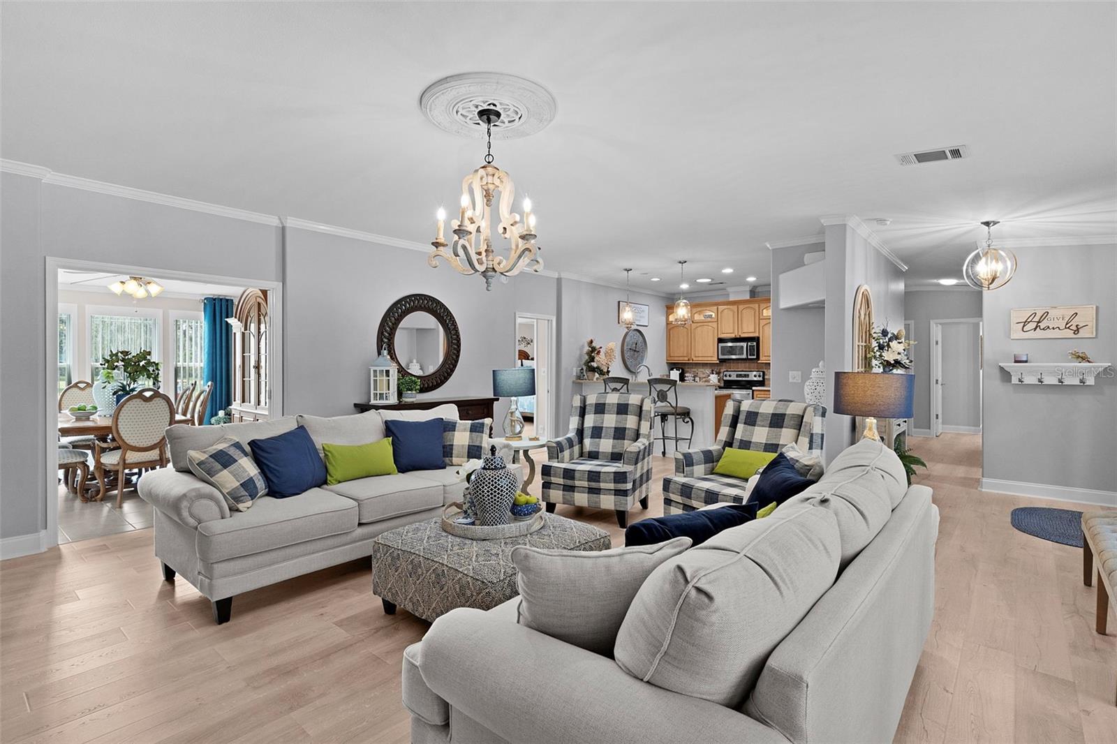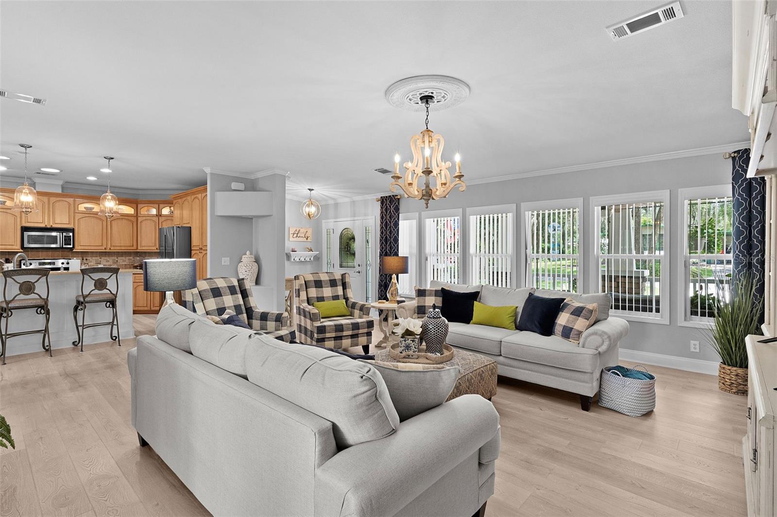Gorgeous Palm Harbor, Immaculate, move in ready home!! 3 bedrooms, 2 bath home with over 2,200 sq. ft. of living space, perfectly situated on the golf course in the desirable Continental Country Club community. This well-maintained property offers a thoughtfully designed split floor plan featuring a bright living room, formal dining room, den/TV room, and a versatile office/bonus/craft room. The kitchen is equipped with appliances and provides beautiful views of the golf course. Additional living spaces include a den that overlooks the golf course and leads directly into the garage, a side patio off the garage, and a welcoming front porch. The home also features an expansive paved driveway, with pavers wrapping around the house to create the perfect barbecue and entertaining area. Inside, both bathrooms have been fully remodeled with exceptional tiled showers and top-of-the-line fixtures. The inside laundry room comes complete with washer and dryer for added convenience. The oversized garage provides two work areas, a sink, and additional storage, making it ideal for hobbies or projects. Other upgrades include alarm system, window treatments, and sprinkler system with two meters. An RO certificate and golf share is also included with the home, making it a fantastic choice for those looking to enjoy an active lifestyle. Surrounded by professional landscaping, this home showcases pride of ownership throughout and offers comfort, convenience, and plenty of room to relax or entertain. Truly a gem in Continental Country Club, come enjoy all the activities, clubs, live entertainment, pool, softball, tennis, pickle ball, lounge, trails, fishing and more — don’t miss the opportunity to make this beautiful property yours!