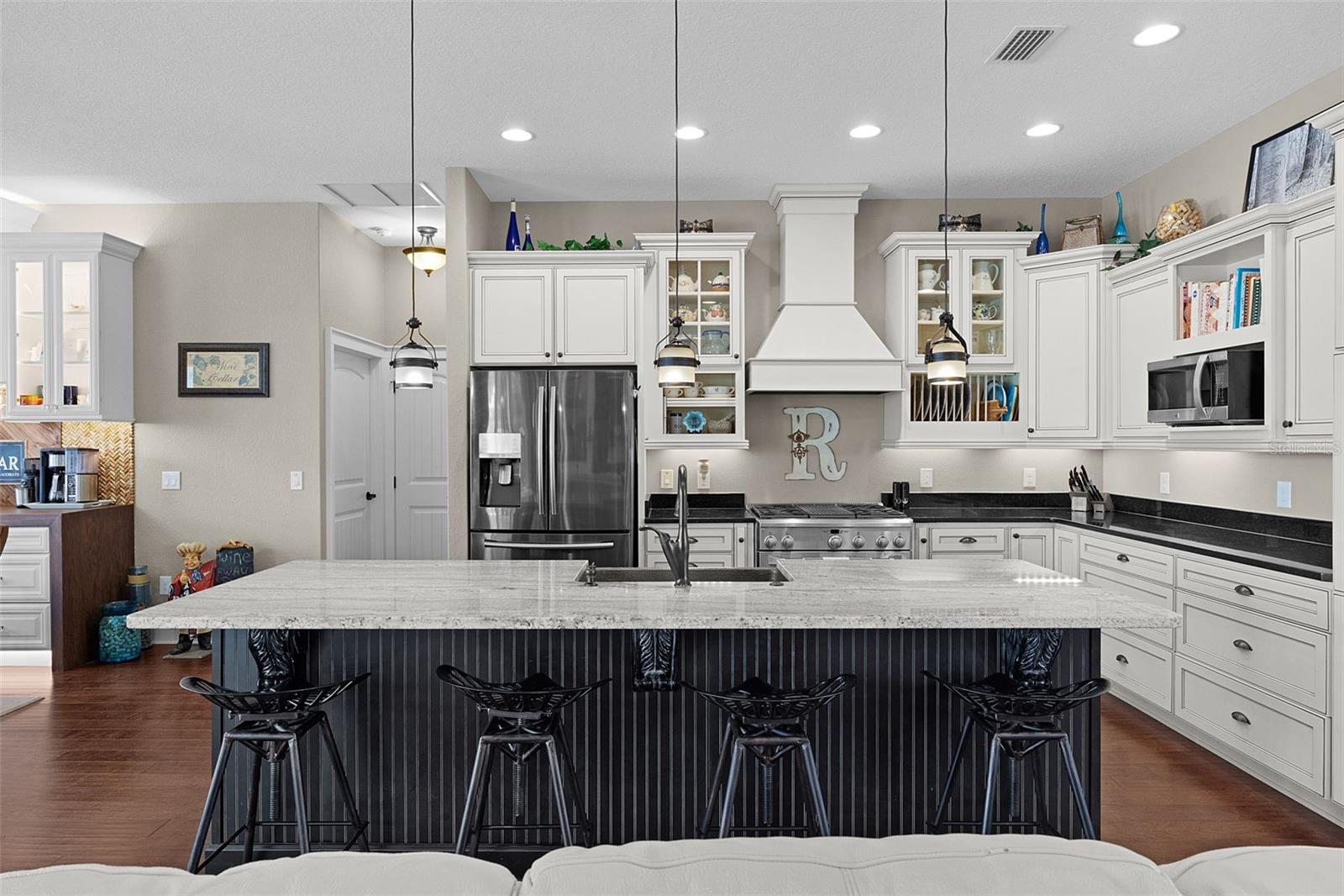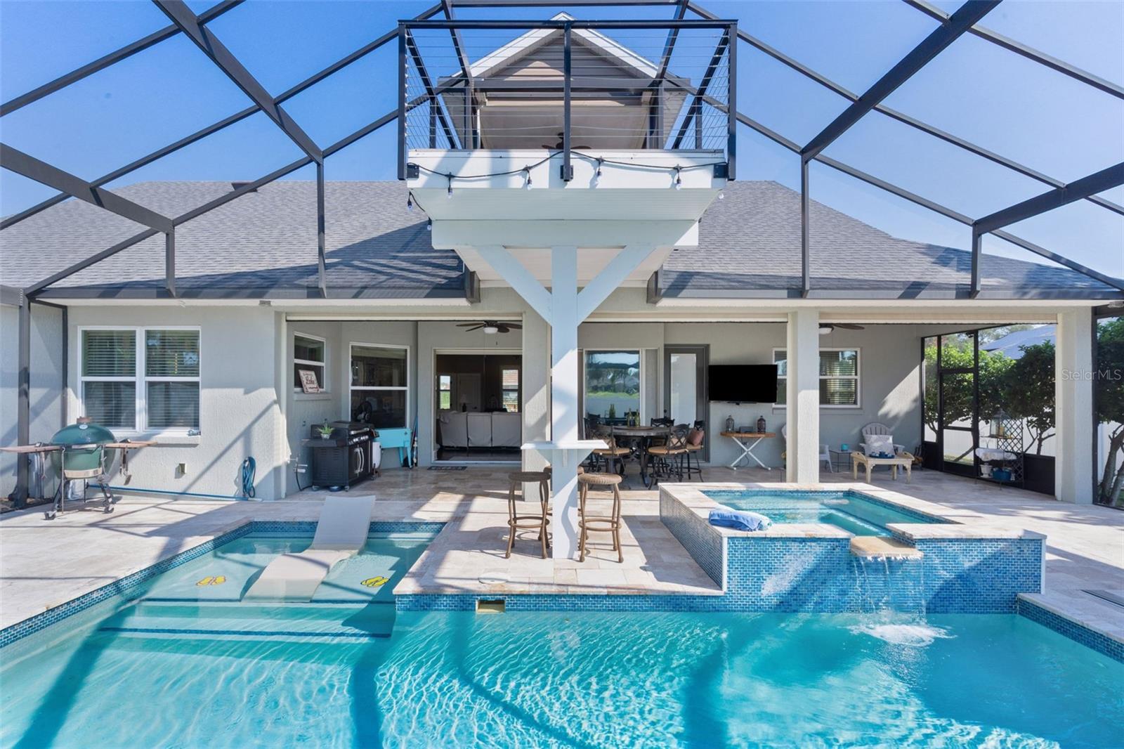 STUNNING GOLF FRONT OASIS WITH RESORT-STYLE OUTDOOR LIVING & UNFORGETTABLE VIEWS! Prepare to fall in love with this Custom “Michelle Boone” one-of-a-kind 4-br + 2 other bonus rooms, pool/spa home that brings the WOW factor from the moment you arrive. A spacious 2,710 sq ft of main living area plus an additional 640 sq ft of fully conditioned bonus space – offering a total of 3,350 sq ft of heated and cooled comfort to enjoy. Stunning golf front oasis with resort-style outdoor living and unforgettable views. Perfectly placed homesite with no rear neighbors, this home backs directly Redfish Run Golf Course in The Villages, offering long panoramic views of golf and water that feel straight out of a painting. If you’ve dreamed of resort-style living at home—this is it. The backyard is your private fenced paradise, featuring a sparkling custom-designed pool and spa with sun shelf, and tranquil waterfalls. Exquisite Travertine tile in this expansive lanai. Whether you're hosting a summer bash or enjoying a peaceful solo swim, you’ll feel like you're on vacation every day. Three remote controlled roll-down shades add comfort in the rain and extra privacy if needed. You’ll never want to leave. Step inside and find a home equally impressive in comfort and elegance. The owner’s suite is a showstopper with high ceilings, dual walk-in custom closets, rich tile flooring. The spa-inspired bathroom features dual vanities, a walk-in shower, creating the perfect retreat after a day of fun in the sun….and must -see hidden laundry slide. The spacious open floor plan with natural light that pours through oversized windows, makes every room feel bright and welcoming. The kitchen is designed with both style and function, the 36’” gourmet gas stove(dual-fuel) under custom hood and tall cabinets with under-cabinet lighting, modern appliances, a sunny dining area overlooking the pool. You’ll find even more additions like built-in desk area—ideal for recipes, work-from-home tasks, or organizing the day. In addition to the four spacious bedrooms, there’s a 2 versatile den/home office/flex room/guest room on 2nd floor all in conditioned space (split system control). This thoughtful layout offers plenty of flexibility to grow with your needs. Got toys? The 960 sq ft car garage with room for 4 vehicles is a dream come true with plenty of space for vehicles, golf carts, storage, or a workshop. An oversized driveway offers even more parking for guests or gatherings. Notable Upgrades & Features Include: New 2025 HVAC System, Tankless Gas Water Heater • Power Roll-Down Shades (perfect for year-round outdoor living) 2nd floor outdoor (polymer) deck overlooks pool/spa golf and water. Spray foam insulation for home & garage helps immensely with efficiencies. Family Room Fireplace (insert in stone floor to ceiling white stone) for cozy indoor ambiance. Jack & Jill bathroom located in the guest bedroom wing has walk-in shower, 2 sinks all private access directly off bedrooms. Located just minutes from The Villages Charter School, major shopping, dining, entertainment, and medical services, this home gives you the rare balance of peaceful privacy and urban convenience. Whether you're lounging poolside, watching golfers from your lanai, or entertaining under the stars, this home brings together luxury, function, and fun in a way that’s hard to find—If storage and space is your need, this home is a MUST SEE.