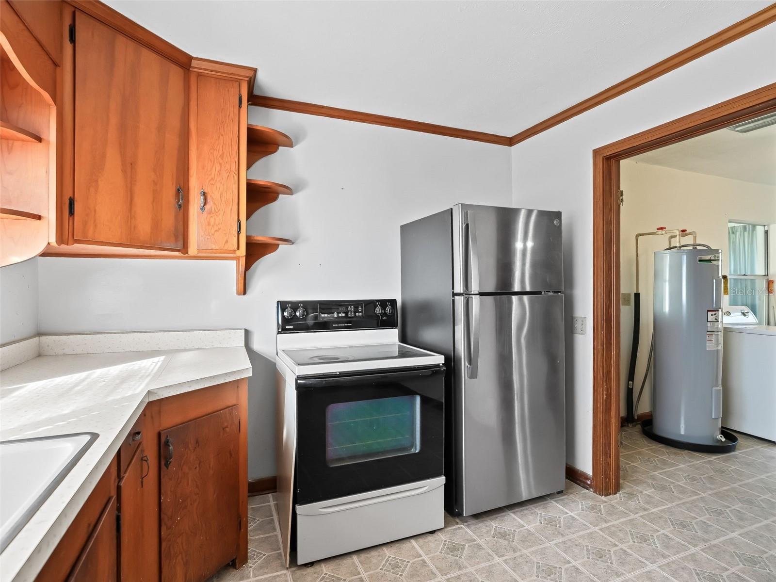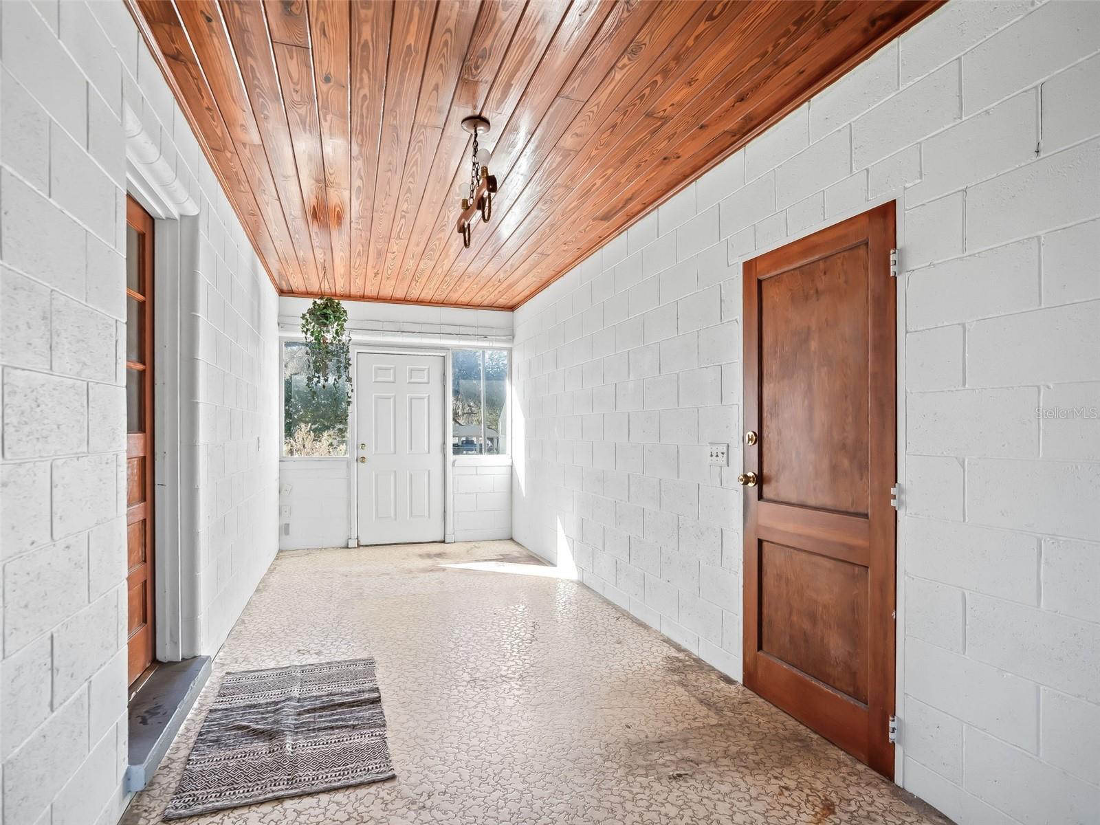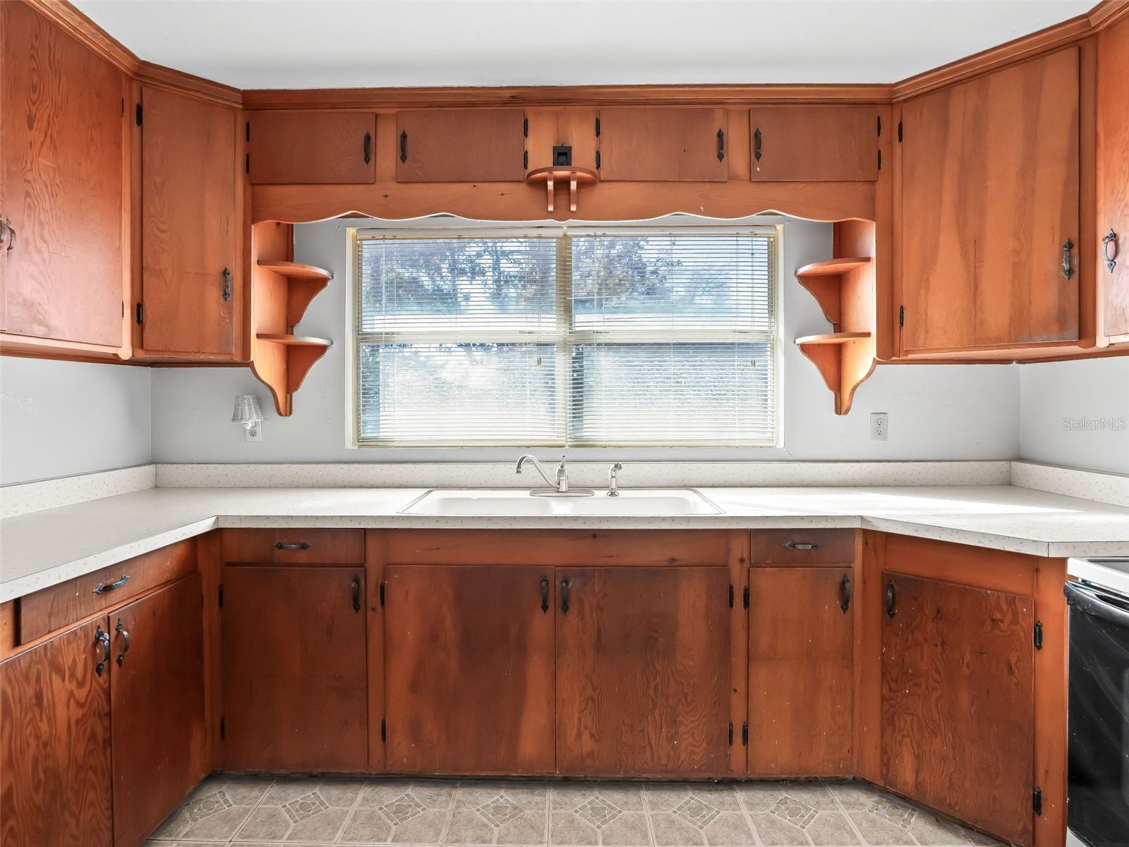 One or more photo(s) has been virtually staged. This attractive 2-bedroom, 1-bathroom home, built in 1955, offers 1,264 sq ft of living space on a spacious 0.56-acre lot. This home has been well maintained throughout the years. Featuring original hardwood floors, this home exudes character and timeless appeal. The quaint interior includes carpeted bedrooms and hallway, with linoleum flooring in the kitchen, complemented by original wood kitchen cabinets that add a touch of vintage charm. A breezeway connects the main house to a vast 2-car garage, complete with additional storage above—perfect for keeping everything organized and within reach. Outside, the large backyard is an entertainer’s dream, offering plenty of space for families to play, BBQ gatherings, or even gardening projects. Located within the city limits, this home is conveniently positioned across from a school, making it ideal for school-aged families who can walk to class. Shopping and dining are just around the corner, with favorites like Publix, Target, Lowe’s, Outback Steakhouse, and Home Depot all within minutes. Explore more entertainment and amenities to the east in The Villages, or head over to Downtown Wildwood for a taste of local charm with its delightful shops and restaurants. With easy access to major highways like US 301, the Florida Turnpike, I-75, and SR 44, getting around town is seamless. Whether you're starting fresh or searching for a forever home, this property is the perfect blend of comfort, convenience, and captivating charm. Don’t miss out—call for a showing today!