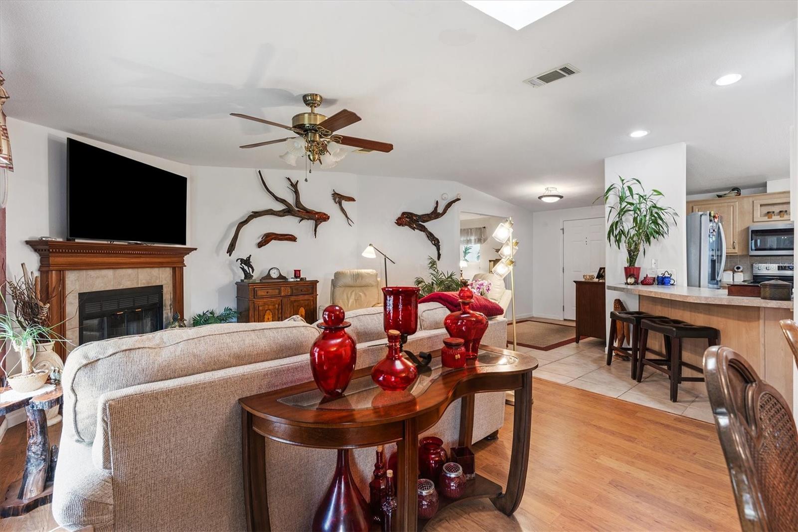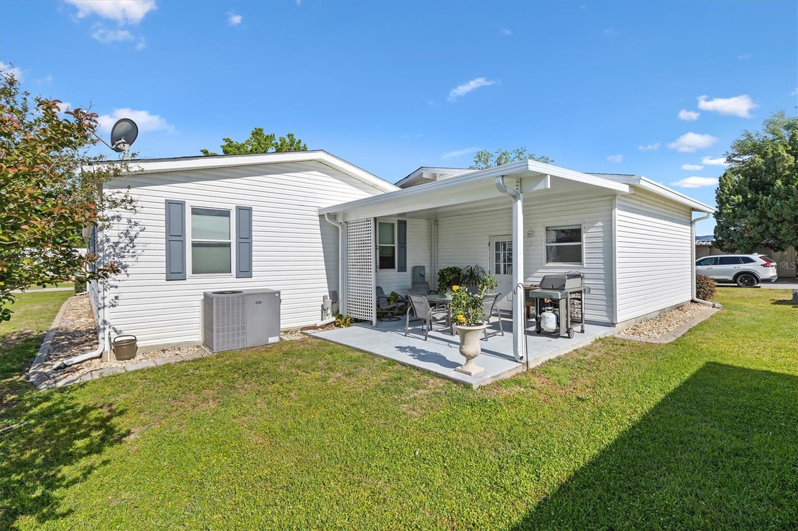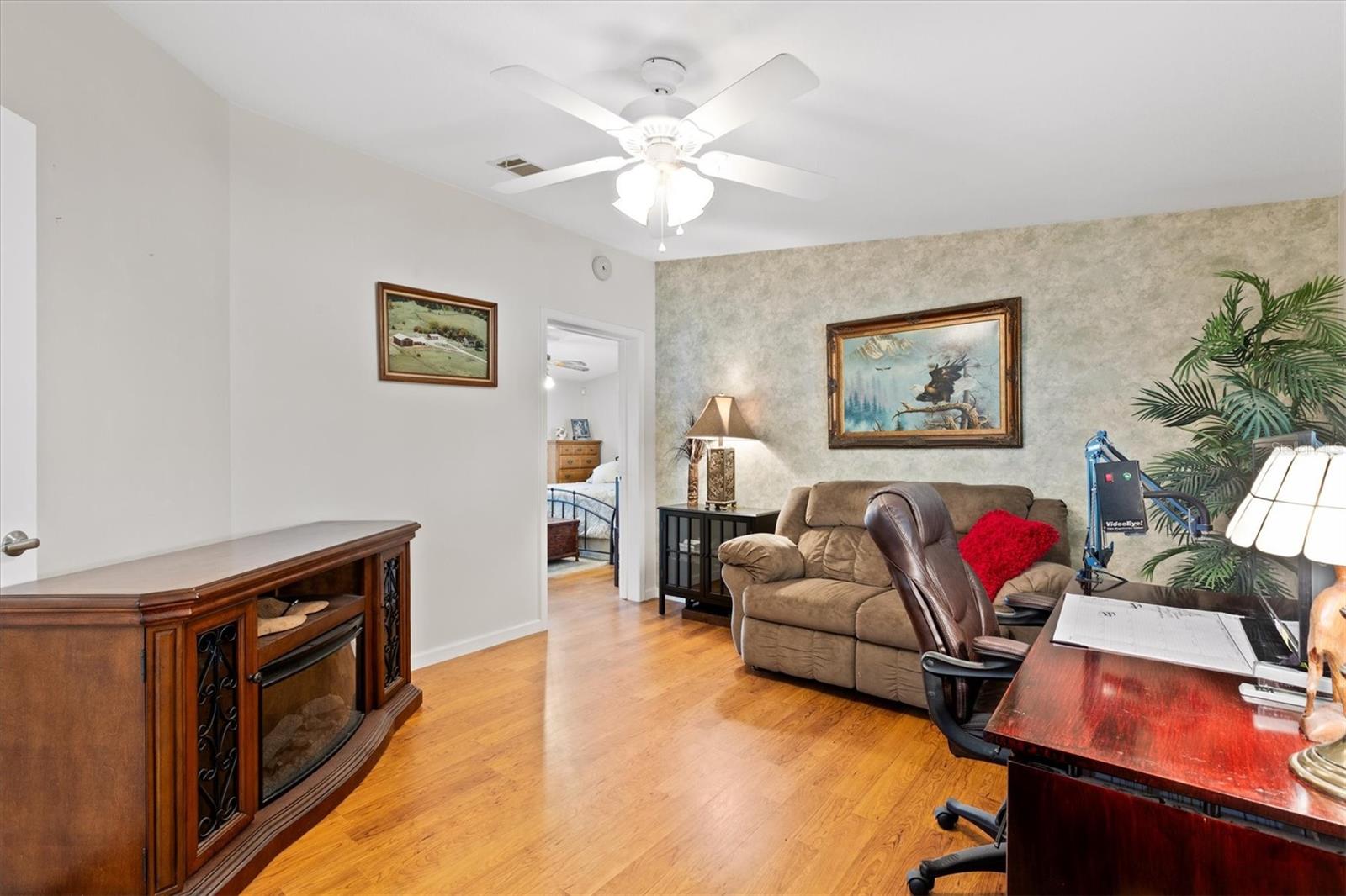 WOW One of a kind like new- Beautiful and spacious 1,848 sq ft, 3 bedrooms, 2 baths plus Den/Office an additional enclosed Glass 20 x 12 Florida room. And for the man of the house a 22 x 36 Huge Garage Man Cave! Yes, you can have it all! The Living room features a wood burning fireplace, open to dining room and large kitchen with island and breakfast bar. Off the kitchen is a large laundry room and door that leads to the huge garage. Out back is a quaint covered patio for entertaining and barbeque. And you can relax or entertain in the 20x12 enclosed Florida room. Enter the large Primary suite though the Den, the large ensuite bath features a whirlpool tub, double shower and dual sinks. the 2 guest bedrooms and large guest bath are at the other end of the home offering privacy. This Jacobson Manufactured home features 2"x 6" exterior walls with extra insulation, the interior walls are 2" x 4". Great location is just across the street from The Villages Brownwood square and entertainment, dining, Gym and shopping etc. You own the home and the land. Call today for an appointment.