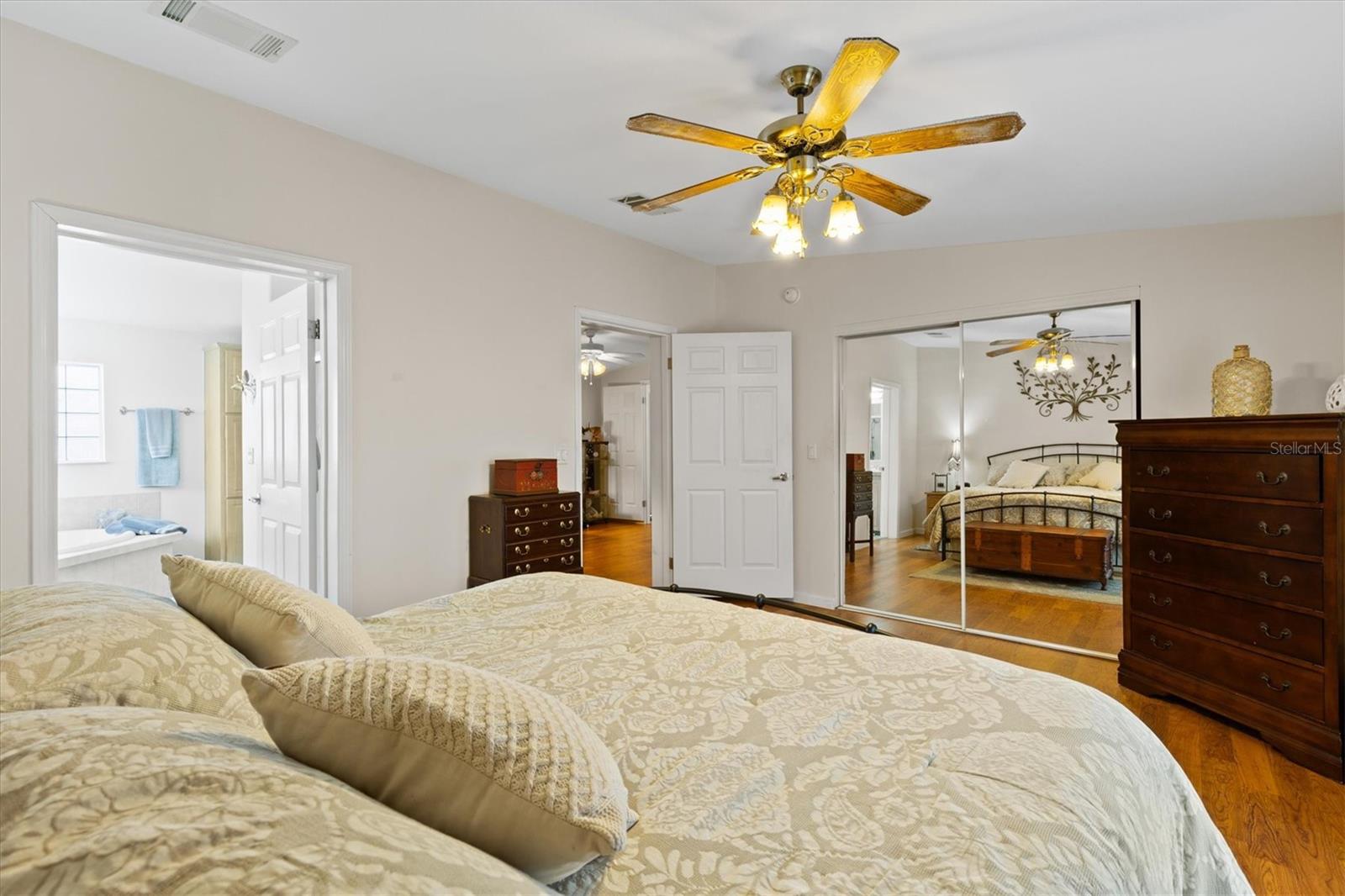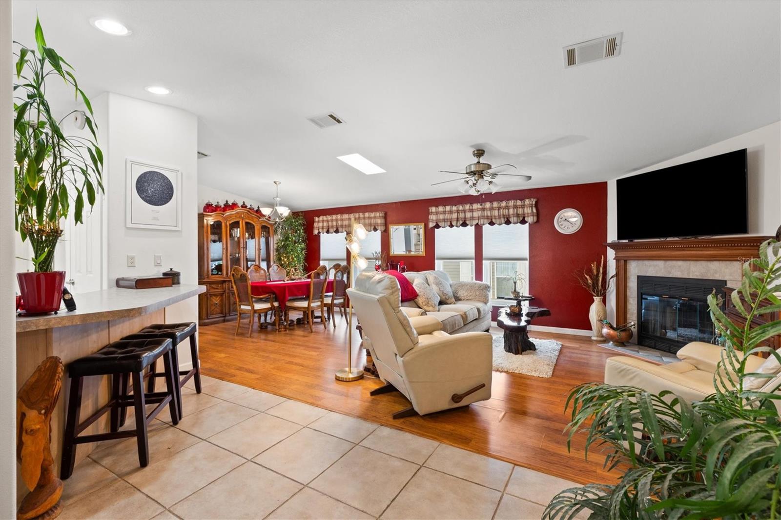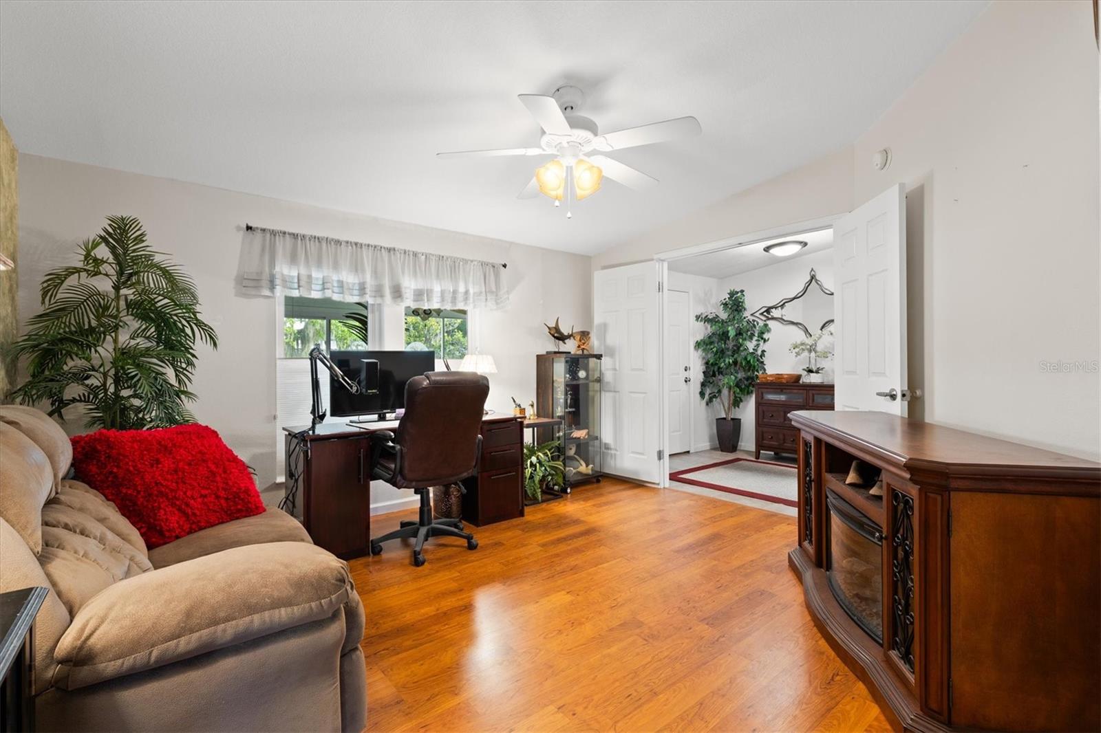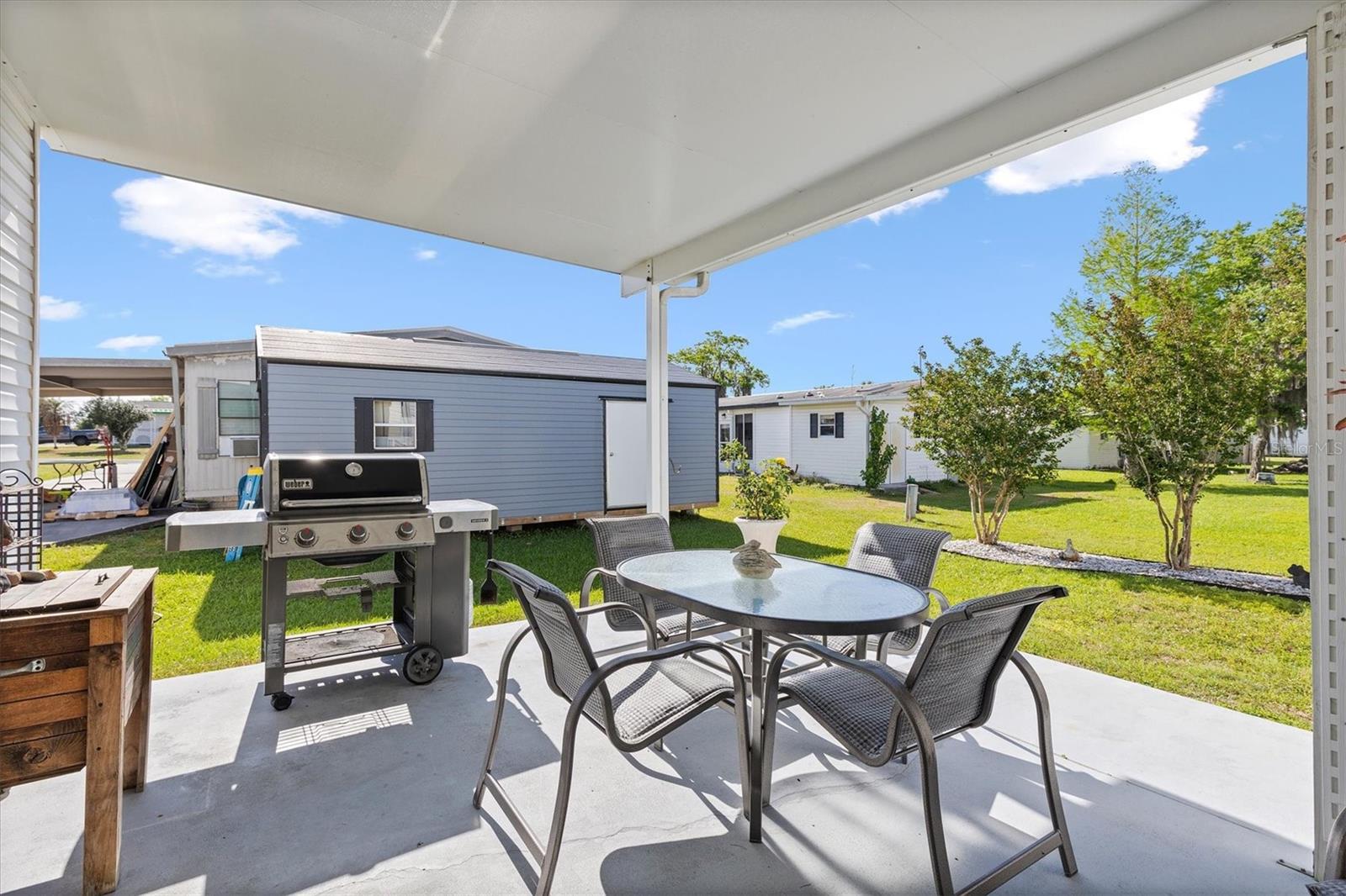 WOW One of a kind like new- Beautiful and spacious 1,848 sq ft, 3 bedrooms, 2 baths plus Den/Office an additional enclosed Glass 20 x 12 Florida room. And for the man of the house a 22 x 36 Huge Garage Man Cave! Yes, you can have it all! The Living room features a wood burning fireplace, open to dining room and large kitchen with island and breakfast bar. Off the kitchen is a large laundry room and door that leads to the huge garage. Out back is a quaint covered patio for entertaining and barbeque. And you can relax or entertain in the 20x12 enclosed Florida room. Enter the large Primary suite though the Den, the large ensuite bath features a whirlpool tub, double shower and dual sinks. the 2 guest bedrooms and large guest bath are at the other end of the home offering privacy. This Jacobson Manufactured home features 2"x 6" exterior walls with extra insulation, the interior walls are 2" x 4". Great location is just across the street from The Villages Brownwood square and entertainment, dining, Gym and shopping etc. You own the home and the land. Call today for an appointment.