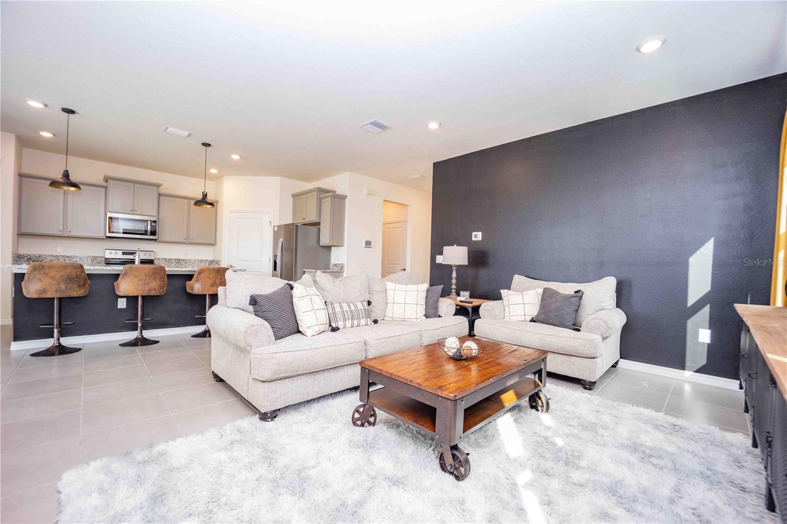 This stunning waterfront 3-bedroom, 2-bath home with a split floor plan offers serene pond views right from your backyard. The open layout seamlessly connects to the outdoors with sliding glass doors leading to a covered lanai, perfect for relaxing by the water. Inside, the modern Smart Haven system lets you remotely control the doorbell, garage, and thermostat for added convenience. Enjoy resort-style living with lawn care, cable and internet included and amazing amenities such as pickleball courts, a gym, bocce ball and a pool! The kitchen, with granite countertops, stainless steel appliances, a large pantry, and ample cabinetry for storage, is a chef’s dream. The spacious island, ideal for casual dining or entertaining, overlooks the great room. The primary suite offers tranquil pond views, a walk-in closet, dual sinks with granite countertops, and a large shower. Two guest bedrooms and a second bathroom are located on the opposite side of the home for added privacy. Additional features include a two-car garage, a laundry room, ample kitchen storage, and a dedicated desk workspace perfect for working from home. Located minutes from I-75 and the Florida Turnpike, this home offers easy access to Ocala, Lake Harris Chain of Lakes, and Lake Panasoffkee, blending comfort, style, and smart technology for easy living!