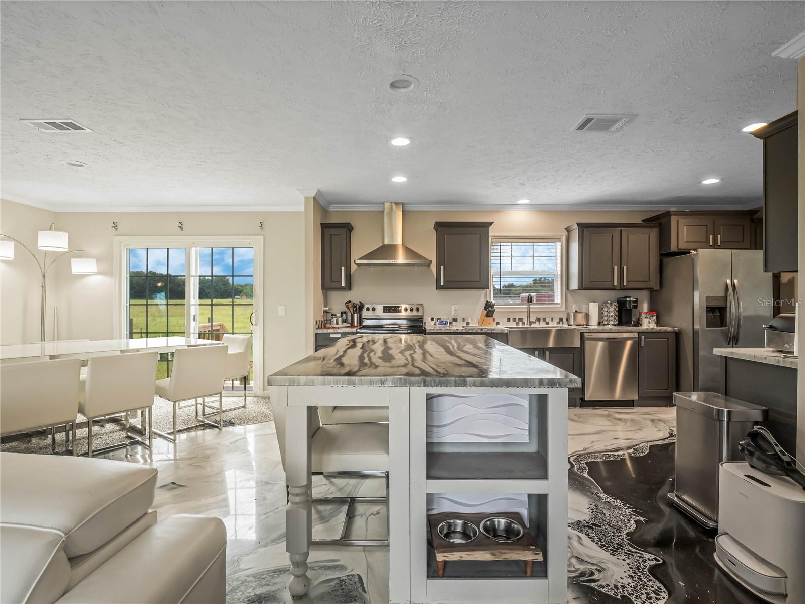 Welcome to this modern Red Star Luxury Homes designed, 2021 Clayton (Prestige Edition - includes real finished drywall, 6 panel wood doors, real wood crown molding) build located in Wildwood, Florida. This sprawling property offers 4.71 acres, is fully-fenced and provides ample space for any exterior scape or design you desire. The driveway is lined with newly-planted Italian Cypress, creating a Grand Entrance that sets the tone for the contemporary design. As you enter the residence you will be welcomed with an open floorplan, plenty of natural light and custom industrial epoxy floor system. The kitchen boasts NEW stainless steel appliances, beautiful range hood and large island. The flexible floorplan currently offers 4 bedrooms and 2 bathrooms, though the bonus room could easily transition to a 5th bedroom or private office. This home is conveniently located only 15 minutes from The Villages and its corresponding conveniences. Whether you're looking for a break from the hustle and bustle of city living or long to develop an innovative project, this property is ready to accommodate. **BRAND new utilities to include septic/drainfield system, two water wells and underground utility for electricity.