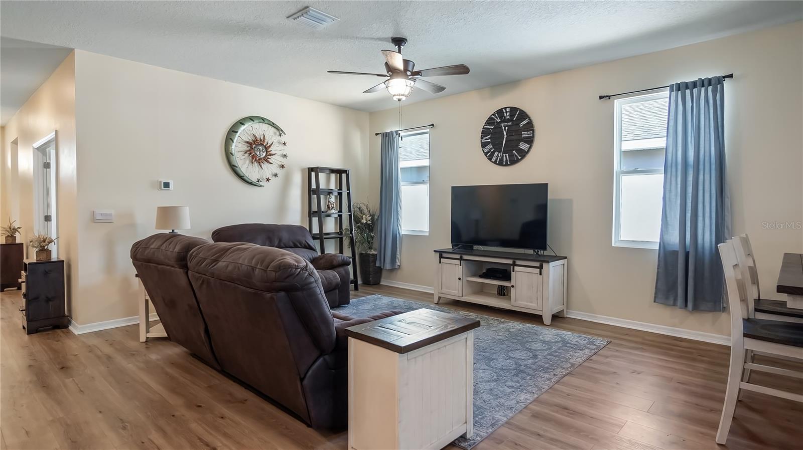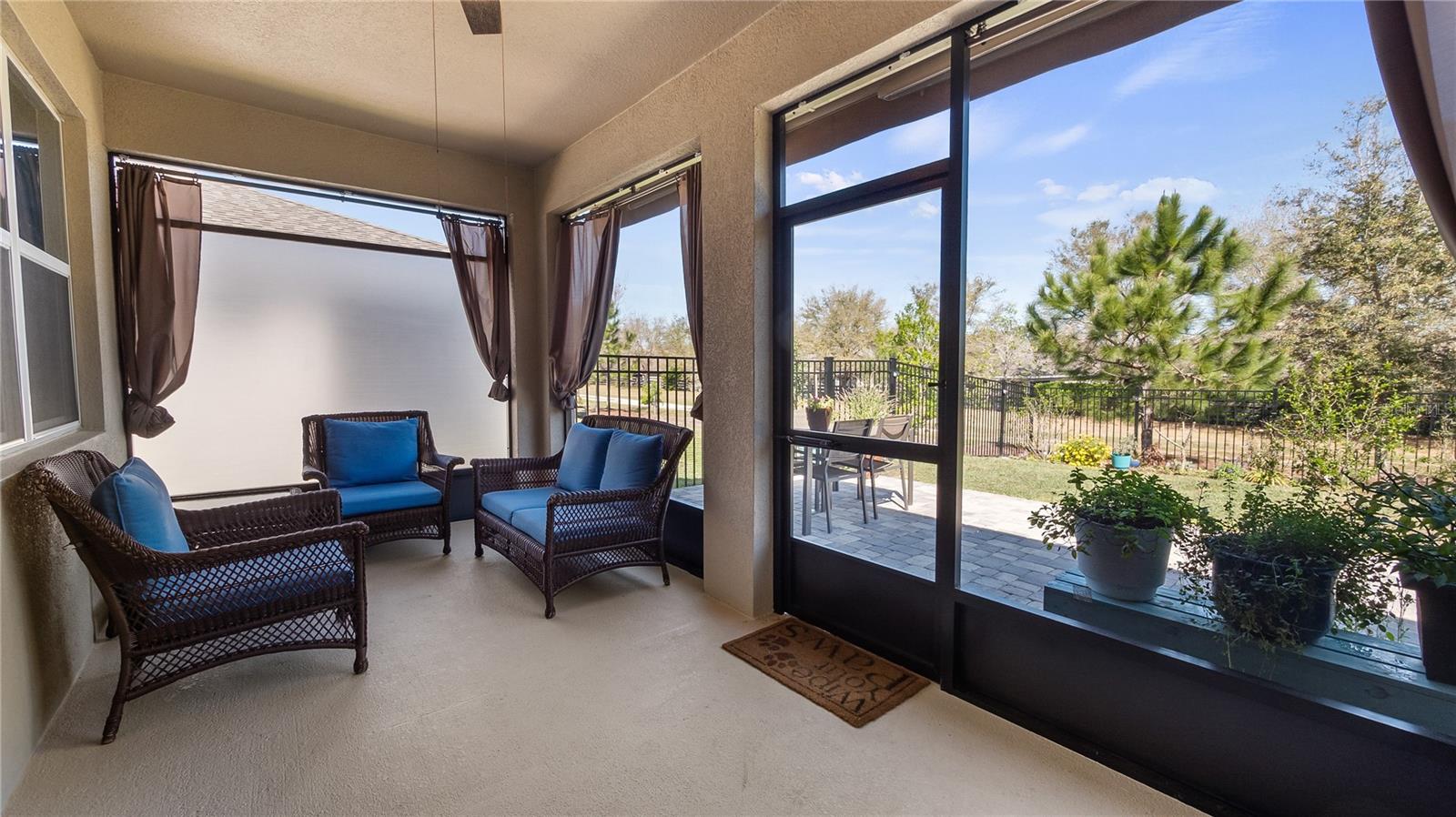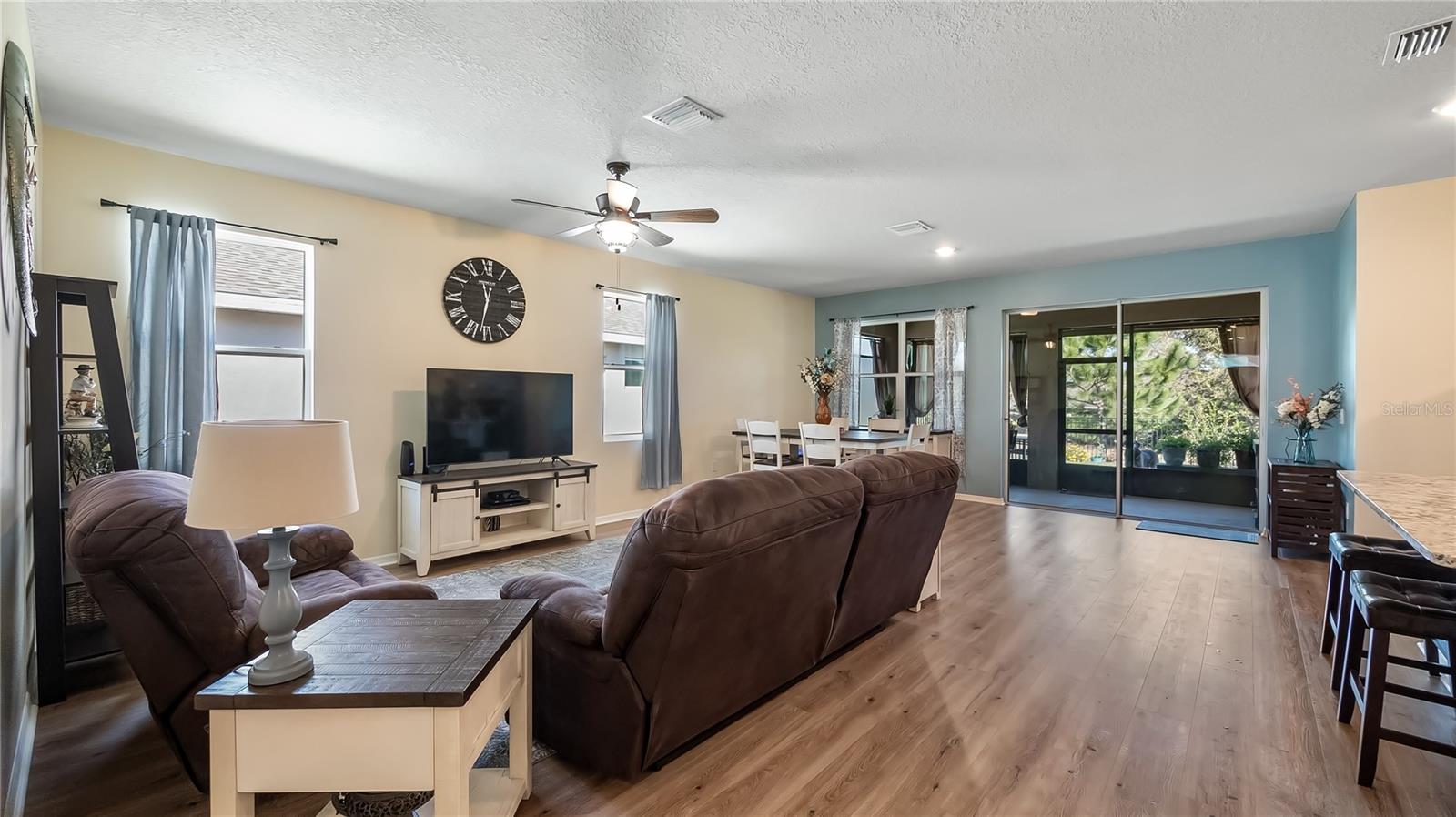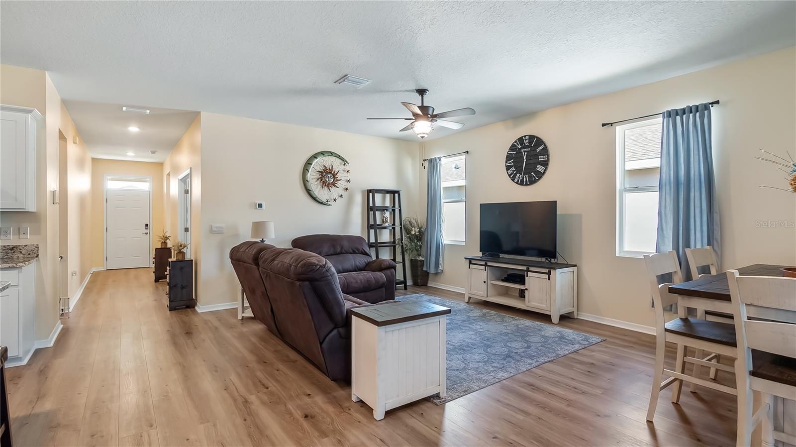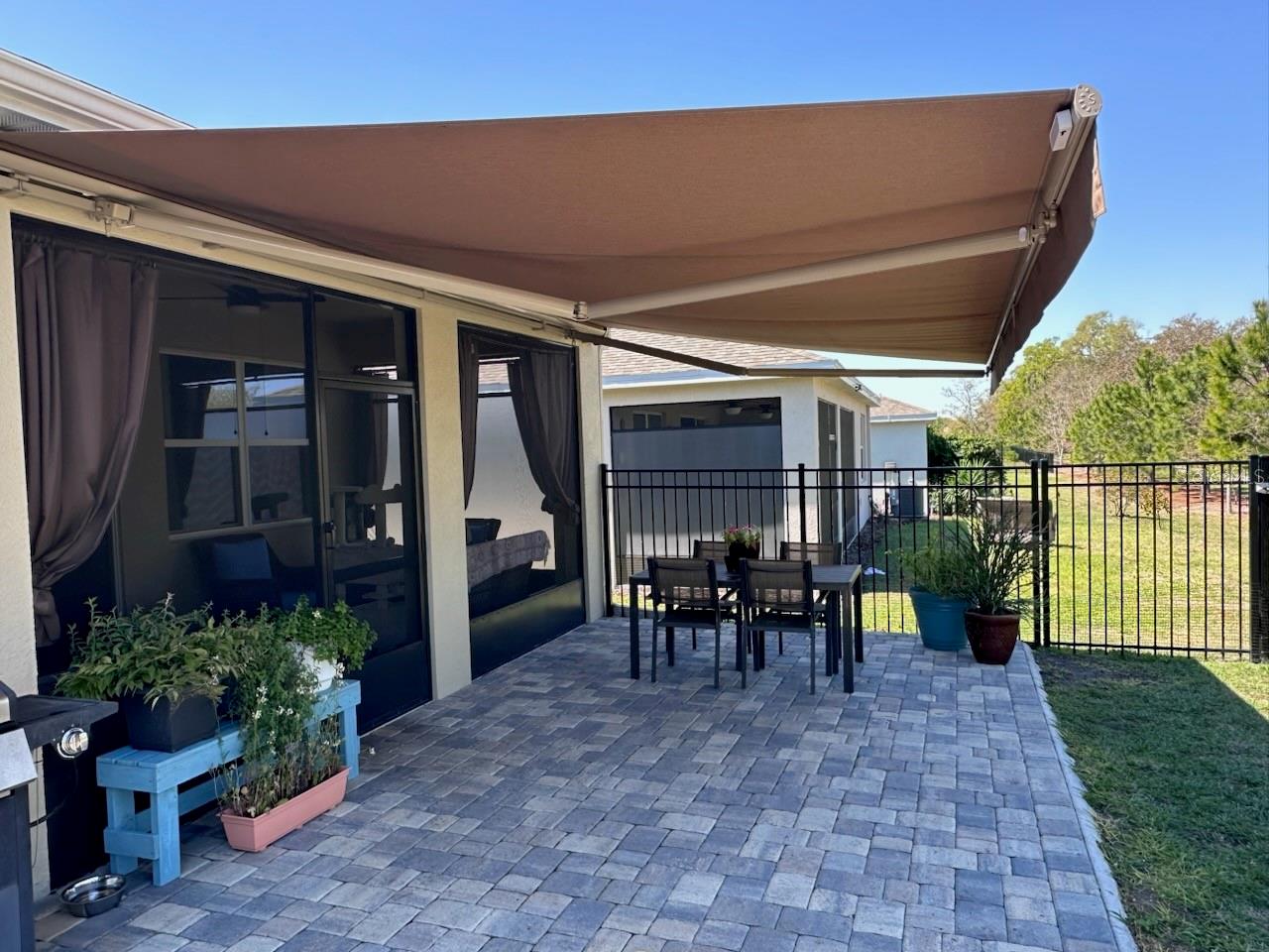 **The seller has invested $34,100 in upgrades** Charming, upgraded home in Wildwood’s premier community! Welcome to 8033 Penrose Place, a beautifully upgraded Clifton model offering an open-concept layout designed for modern living. This thoughtfully crafted home features a seamless flow between kitchen, great room and dining area, creating space for entertaining. Sliding glass doors fill the home with natural light and open to a newly extended 12-by-30-foot paver patio, complete with a retractable awning with LED lighting, providing a shaded retreat. The well-appointed kitchen boasts ample cabinet and counter space, a walk-in pantry with custom wood shelving, and stainless steel appliances, including an electric range, microwave and built-in dishwasher. Luxury vinyl plank flooring has been installed throughout, adding style and durability. The spacious primary suite, tucked away for privacy, features a spa-like en-suite bath with a double vanity and two large walk-in closets. Two additional guest bedrooms share a full-size bath at the front of the home. The seller has invested $34,100 in upgrades, including a storage shelf in the garage, a storm door with a screen, screened lanai, gutters, a fully fenced backyard, new ceiling fans in every room, and an irrigation valve/meter with hose bibs. In a vibrant, amenity-rich community, residents enjoy a resort-style pool, clubhouse, fitness center, bocce ball and pickleball courts. HOA dues include basic lawn maintenance, pest service, tree and shrub care, annual mulching, and cable/internet. With all-concrete block construction and smart home technology, this home offers comfort and peace of mind. Prime location near shopping, dining and recreation. Near The Villages, this home offers easy access to Brownwood Paddock Square and Lake Sumter Landing, where you’ll find shopping, dining and live entertainment. Nearby retail centers like Colony Plaza and Trailwinds Village provide everyday conveniences, while outdoor enthusiasts will love Lake Okahumpka Park and Fenney Springs Nature Trail. Golfers can enjoy multiple championship and executive courses, and residents have access to top-tier healthcare at UF Health The Villages Hospital. With quick access to Interstate 75 and the Florida Turnpike, this home is ideal for those seeking comfort and convenience.