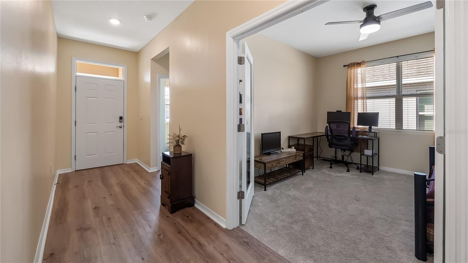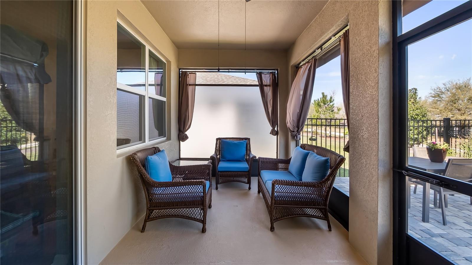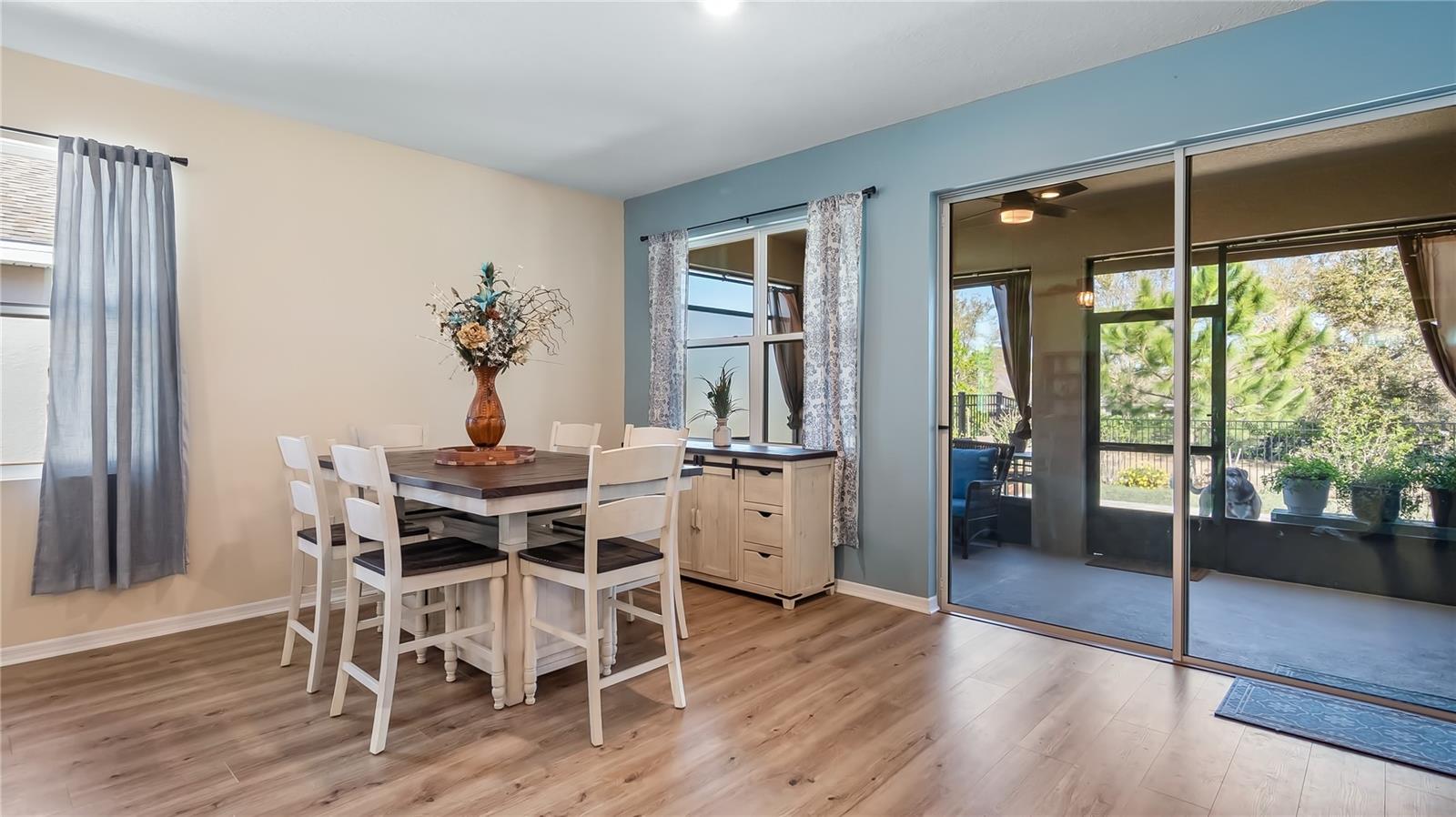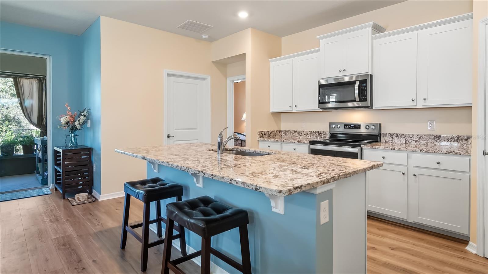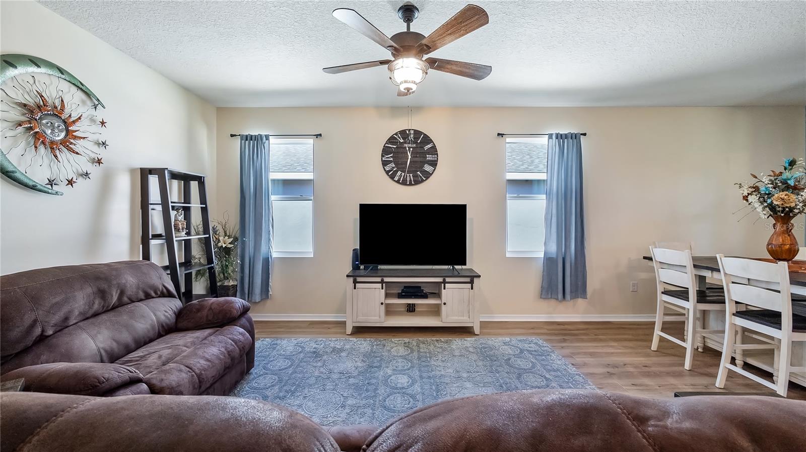 **The seller has invested $34,100 in upgrades** Charming, upgraded home in Wildwood’s premier community! Welcome to 8033 Penrose Place, a beautifully upgraded Clifton model offering an open-concept layout designed for modern living. This thoughtfully crafted home features a seamless flow between kitchen, great room and dining area, creating space for entertaining. Sliding glass doors fill the home with natural light and open to a newly extended 12-by-30-foot paver patio, complete with a retractable awning with LED lighting, providing a shaded retreat. The well-appointed kitchen boasts ample cabinet and counter space, a walk-in pantry with custom wood shelving, and stainless steel appliances, including an electric range, microwave and built-in dishwasher. Luxury vinyl plank flooring has been installed throughout, adding style and durability. The spacious primary suite, tucked away for privacy, features a spa-like en-suite bath with a double vanity and two large walk-in closets. Two additional guest bedrooms share a full-size bath at the front of the home. The seller has invested $34,100 in upgrades, including a storage shelf in the garage, a storm door with a screen, screened lanai, gutters, a fully fenced backyard, new ceiling fans in every room, and an irrigation valve/meter with hose bibs. In a vibrant, amenity-rich community, residents enjoy a resort-style pool, clubhouse, fitness center, bocce ball and pickleball courts. HOA dues include basic lawn maintenance, pest service, tree and shrub care, annual mulching, and cable/internet. With all-concrete block construction and smart home technology, this home offers comfort and peace of mind. Prime location near shopping, dining and recreation. Near The Villages, this home offers easy access to Brownwood Paddock Square and Lake Sumter Landing, where you’ll find shopping, dining and live entertainment. Nearby retail centers like Colony Plaza and Trailwinds Village provide everyday conveniences, while outdoor enthusiasts will love Lake Okahumpka Park and Fenney Springs Nature Trail. Golfers can enjoy multiple championship and executive courses, and residents have access to top-tier healthcare at UF Health The Villages Hospital. With quick access to Interstate 75 and the Florida Turnpike, this home is ideal for those seeking comfort and convenience.