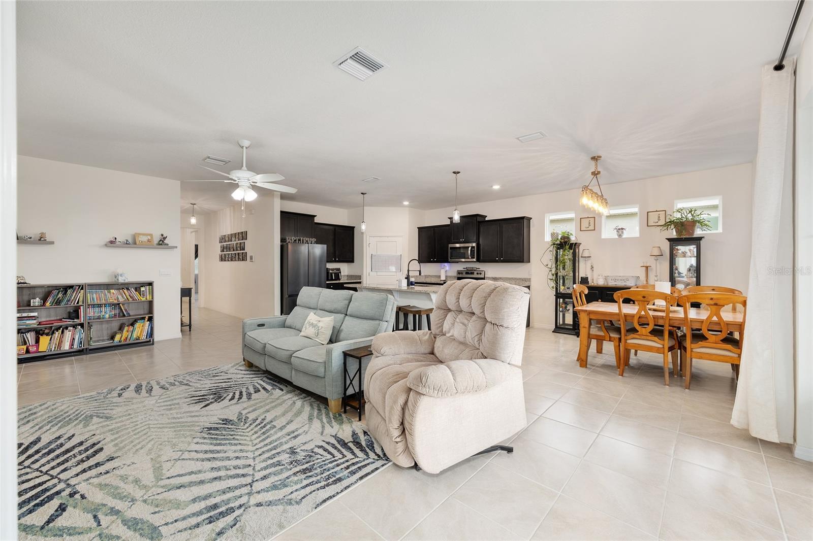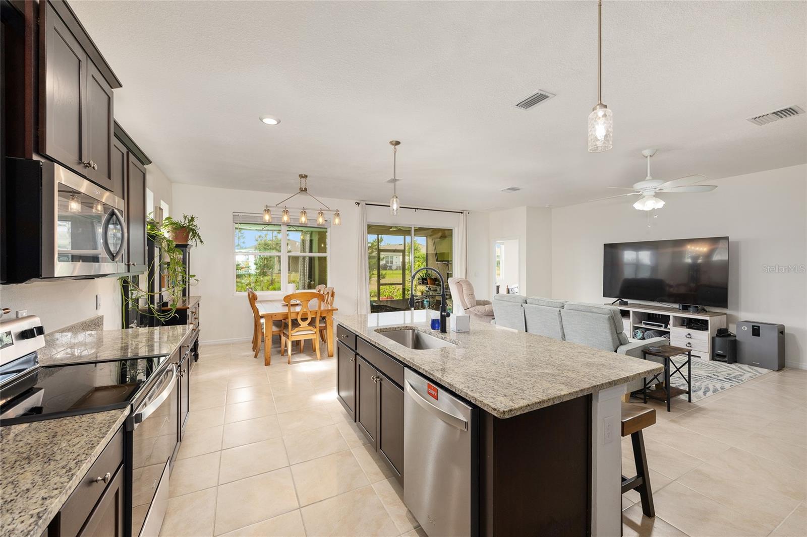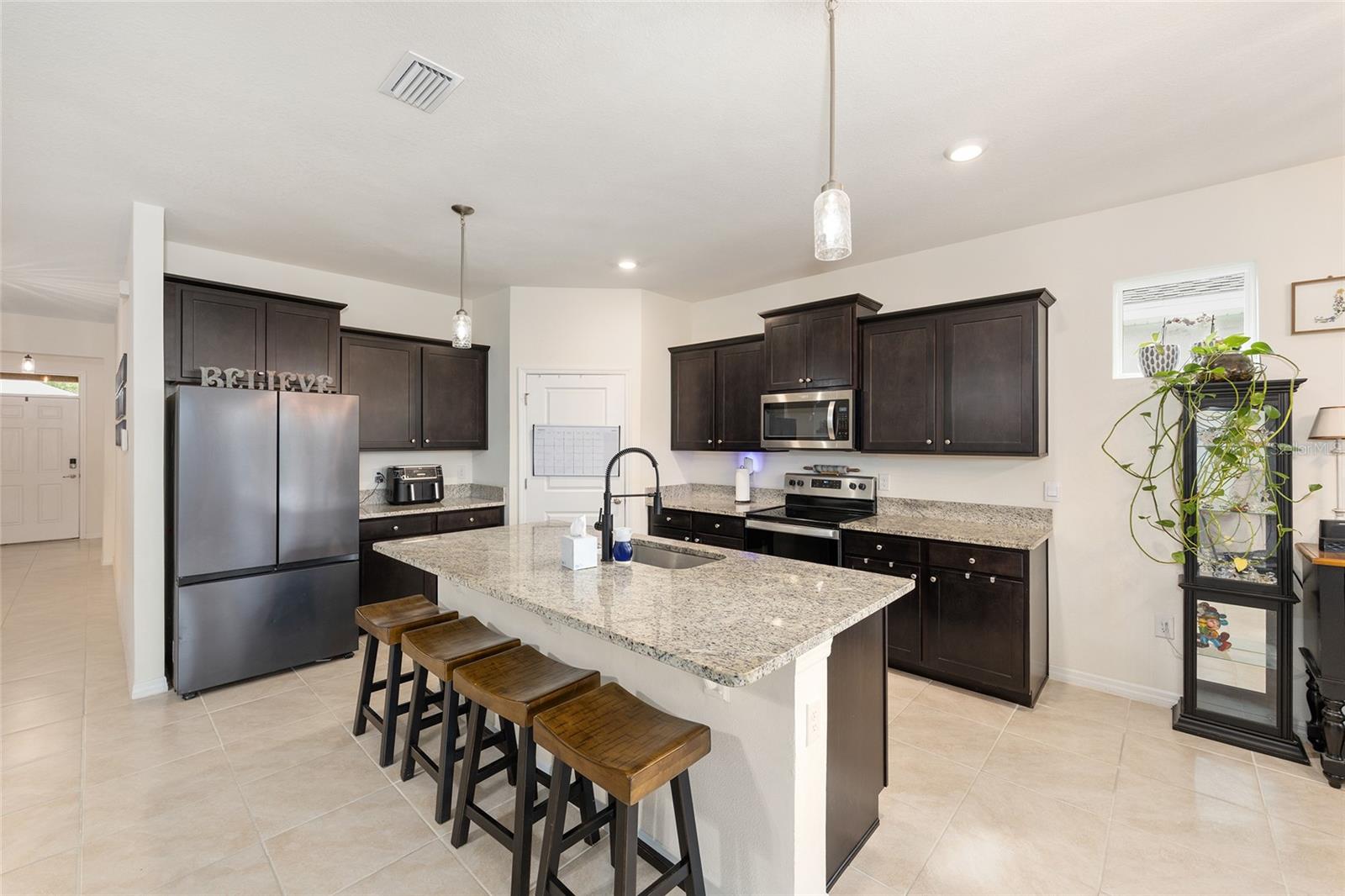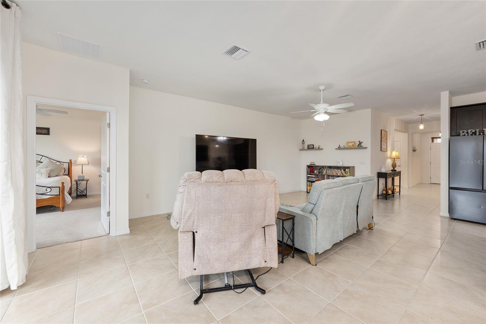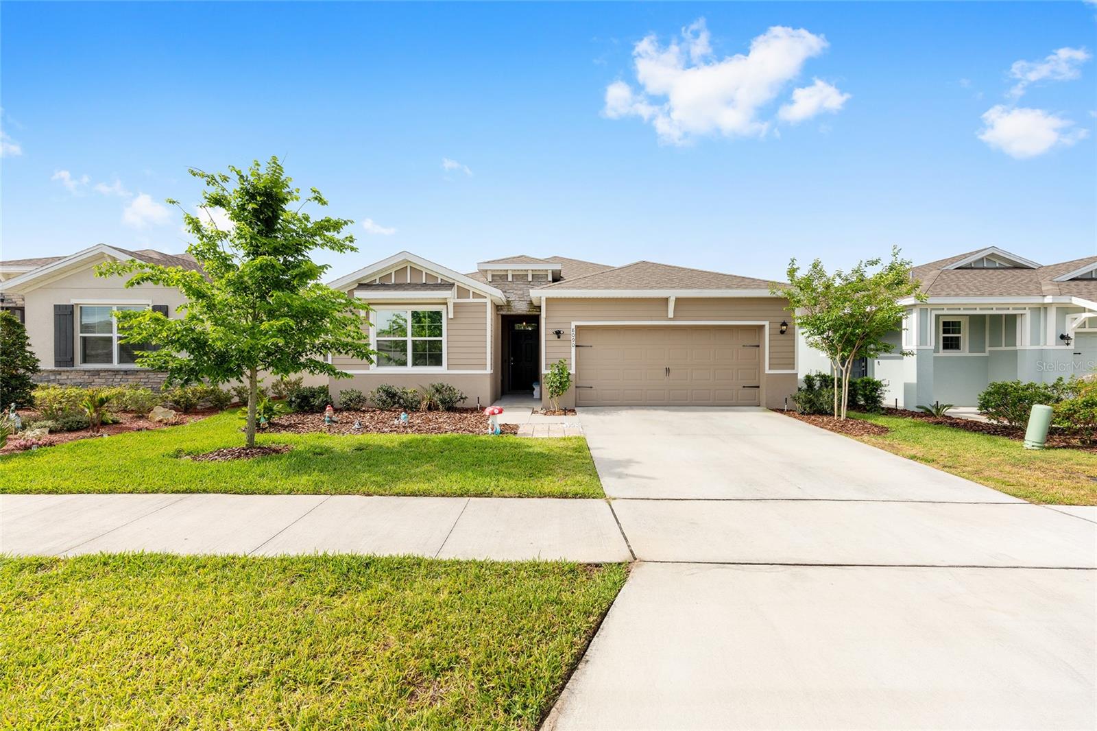 Welcome to the family-friendly neighborhood of beautiful Beaumont! This stunning 4-bedroom, 2-bath Smart-home is a rare find, ideally located just next to The Villages in charming Wildwood. The Beaumont community offers a resort-style living with a gorgeous clubhouse, fully equipped fitness center, and a fabulous walk-in entry pool perfect for relaxing or socializing. Scenic walking paths wind throughout the community, connecting the homes to the amenities. HOA includes basic Lawn care, Basic Cable, & Internet making it for easy low maintenance living. As you enter the home, you’re welcomed by a wide entry hallway and soaring ceilings that lead you into the spacious great room, where the living, kitchen, and dining areas come together in one open, airy space. The oversized breakfast bar features stunning stone countertops, which continue throughout the kitchen for a sleek, cohesive look. A large pantry provides plenty of storage. At the front of the home, two guest bedrooms are situated on the left and share a guest bathroom. Across the hall is a flex space or third guest bedroom, conveniently located near the laundry room. On the opposite side of the great room, you’ll find the private primary suite, featuring dual walk-in closets and a spa-like en-suite bathroom with dual vanities and more beautiful stone countertops. Step out to the screened-in back lanai, perfect for morning coffee or evening relaxation. The backyard backs up to a beautifully landscaped common area, offering both privacy and peaceful views—all maintained by the HOA! This is truly a must-see home in a resort-style community—ready for you to make it your own. Schedule your showing today! ***Sellers are offering a 1 year home warranty!! Sellers are offering $5,000 in concessions to buyer to help with closing costs with full price offer!!***