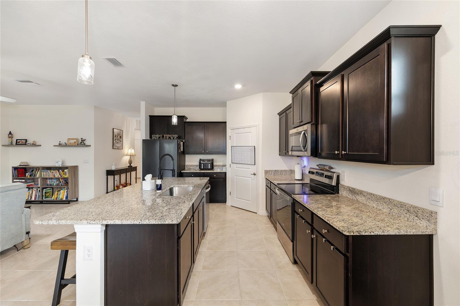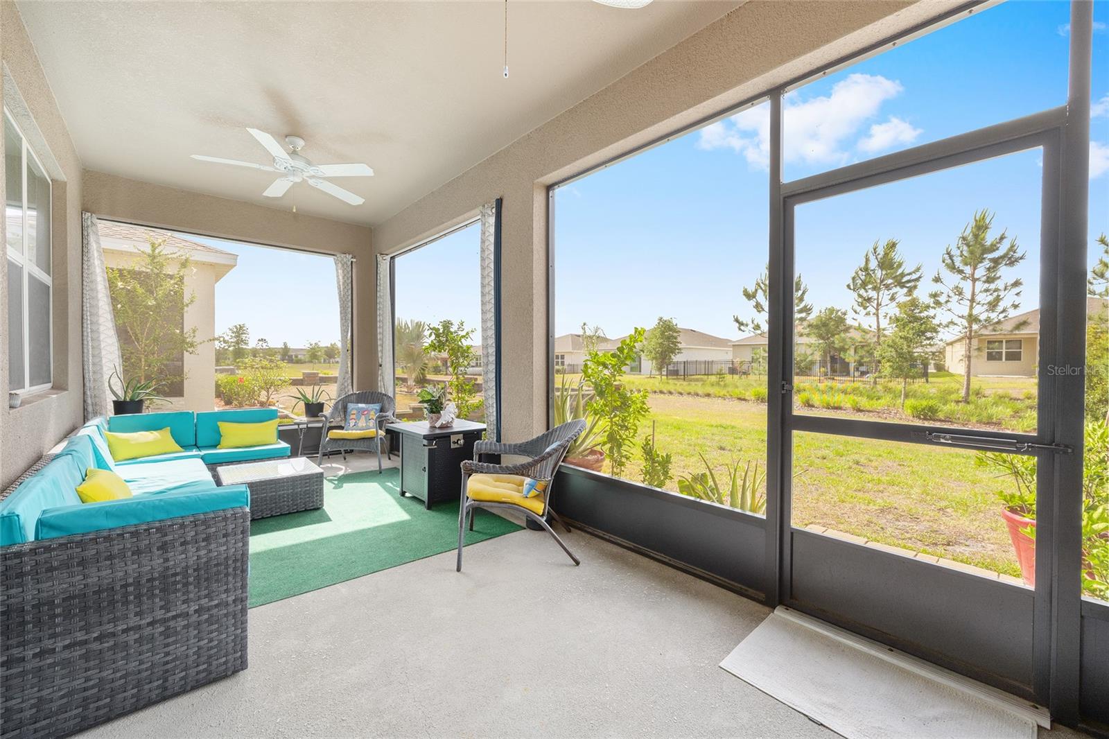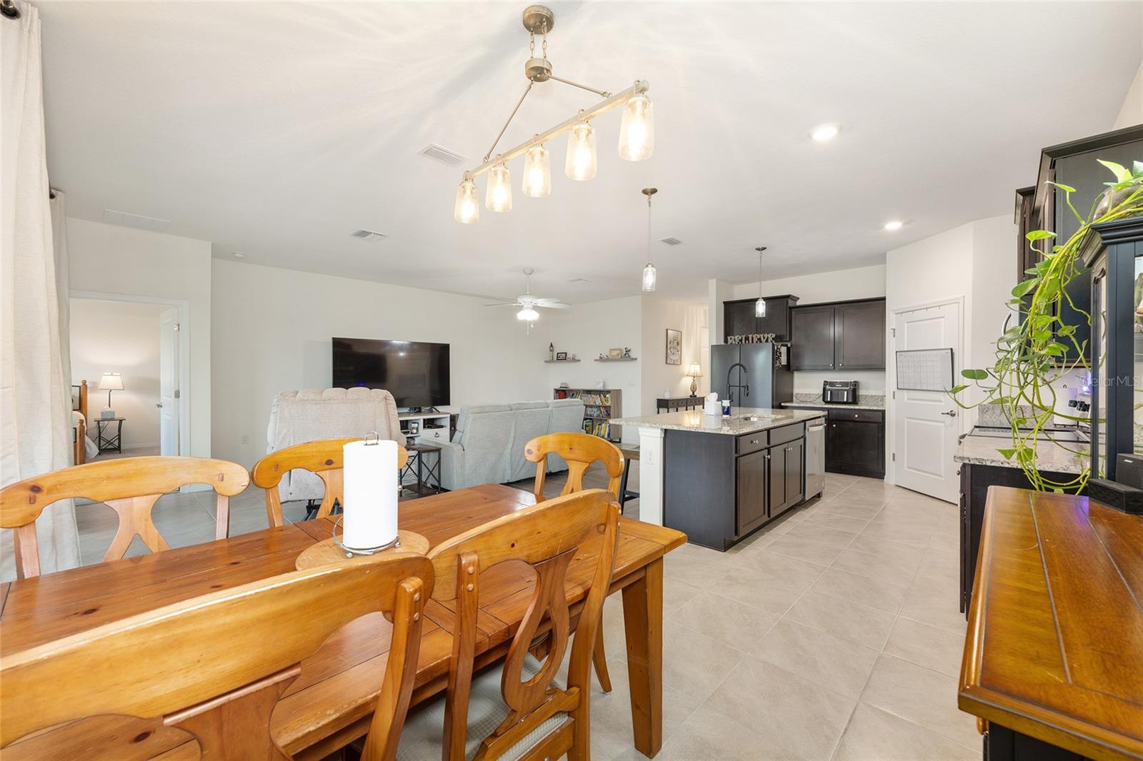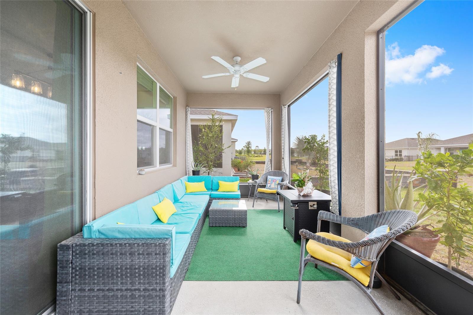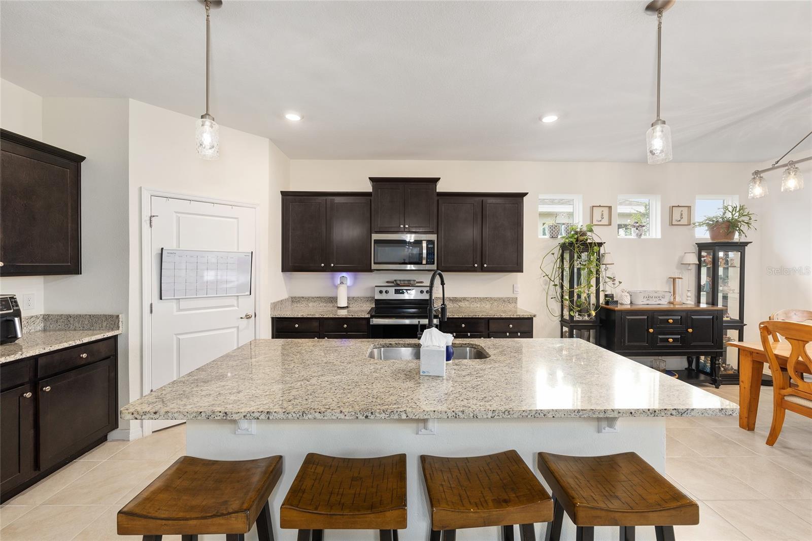 Welcome to the family-friendly neighborhood of beautiful Beaumont! This stunning 4-bedroom, 2-bath Smart-home is a rare find, ideally located just next to The Villages in charming Wildwood. The Beaumont community offers a resort-style living with a gorgeous clubhouse, fully equipped fitness center, and a fabulous walk-in entry pool perfect for relaxing or socializing. Scenic walking paths wind throughout the community, connecting the homes to the amenities. HOA includes basic Lawn care, Basic Cable, & Internet making it for easy low maintenance living. As you enter the home, you’re welcomed by a wide entry hallway and soaring ceilings that lead you into the spacious great room, where the living, kitchen, and dining areas come together in one open, airy space. The oversized breakfast bar features stunning stone countertops, which continue throughout the kitchen for a sleek, cohesive look. A large pantry provides plenty of storage. At the front of the home, two guest bedrooms are situated on the left and share a guest bathroom. Across the hall is a flex space or third guest bedroom, conveniently located near the laundry room. On the opposite side of the great room, you’ll find the private primary suite, featuring dual walk-in closets and a spa-like en-suite bathroom with dual vanities and more beautiful stone countertops. Step out to the screened-in back lanai, perfect for morning coffee or evening relaxation. The backyard backs up to a beautifully landscaped common area, offering both privacy and peaceful views—all maintained by the HOA! This is truly a must-see home in a resort-style community—ready for you to make it your own. Schedule your showing today! ***Sellers are offering a 1 year home warranty!! Sellers are offering $5,000 in concessions to buyer to help with closing costs with full price offer!!***