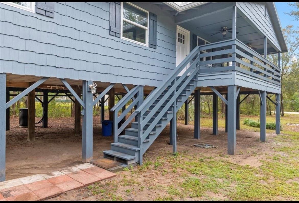 One or more photo(s) has been virtually staged. Fully renovated (Nov 2023) 3-bedroom, 2-bathroom home nestled on a 1-acre lot in the charming town of Williston, FL. This move-in-ready home blends modern updates with comfortable rural living. Set back on a quiet dirt road, the elevated home sits proudly on stilts, offering a unique architectural style along with a spacious covered parking area and generous storage underneath. The entire property has been thoughtfully updated, including a newer roof, gutters with leaf guards, and energy-efficient low-e tilt-in vinyl windows. Inside, the open layout features new luxury vinyl plank flooring throughout and a light, airy ambiance enhanced by natural light. The kitchen has been completely reimagined with granite countertops, appliances, and a large sink that overlooks the lush backyard—perfect for everyday living and entertaining. The private primary suite includes a walk-in closet and a fully updated bathroom with stylish finishes. Both bathrooms have been modernized to provide a clean, spa-like feel. Enjoy the outdoors from your covered deck, relax around the firepit, or take advantage of the oversized shed for extra storage or workspace. This beautifully upgraded home offers the best of peaceful country living with all the benefits of a modern renovation. Don’t miss your chance to own this one-of-a-kind property in Williston—ready for you to move in and enjoy.