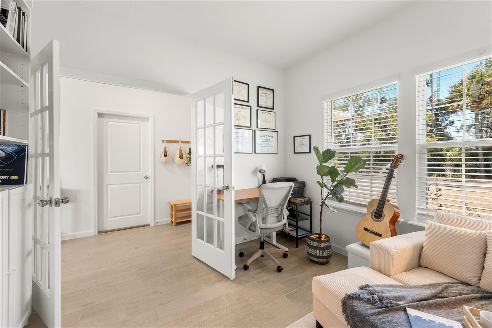 Better than new, this 2024 gem in Country Lane Estates—tucked into the lower-tax haven of Williston—is your opportunity for stylish living. Offering almost 1,800 square feet of heated and cooled space, this beloved home boasts 3 bedrooms, 2 baths, and a chic office with built-ins and French doors. Step inside to a welcoming open layout. The cozy office greets you at the entrance, while the right wing hosts two spacious guest rooms, a large guest bath, and a laundry area with washer and dryer included. To your left, the stunning kitchen features a large island as hub for gathering family & friends, quartz counters, beautiful cabinetry, stainless steel appliances—including a gas range—and opens seamlessly to the dining and great room. The great room is spacious, has built in shelves and sliding doors that lead to a spacious screened porch, perfect for relaxing while overlooking your vinyl-fenced yard. At the back, the primary suite impresses with space, walk-in closet, and an en-suite bath featuring double vanities and a glass-enclosed walk-in shower. The screened porch, with shade curtains, extends your living space outdoors. With a whole-house water softener, kitchen filtration, tankless water heater, window treatments/blinds, ceiling fans and love poured into every corner, this home is ready to welcome you! Situated on the outside perimeter of the neighborhood for easy access to the highway and the nearby park. A quick and nice drive to the University of Florida, UF Health, the VA and Gainesville shopping! Call today!