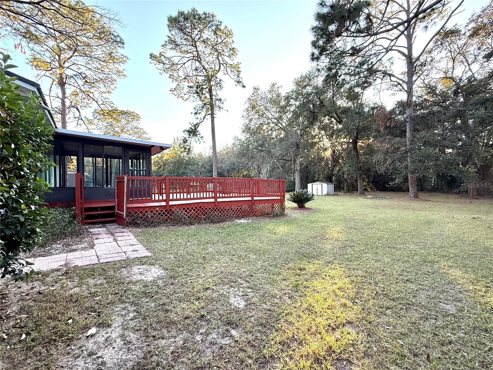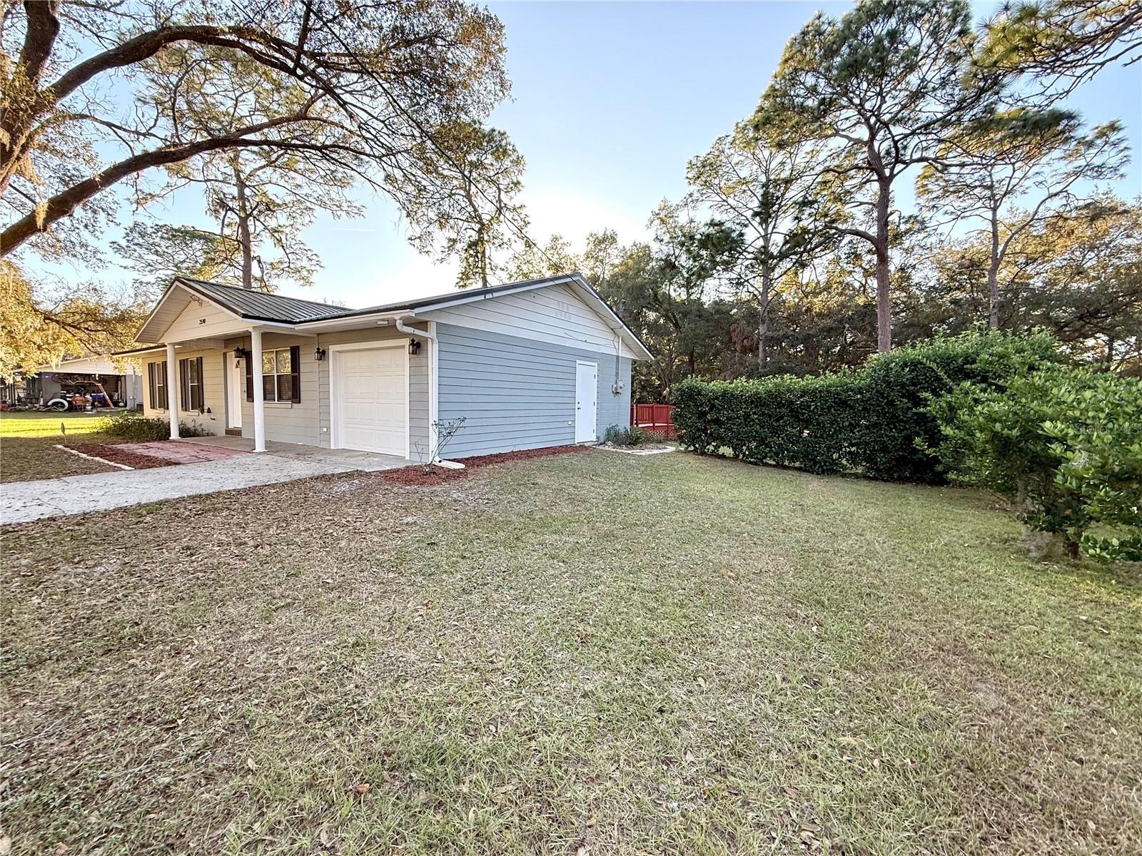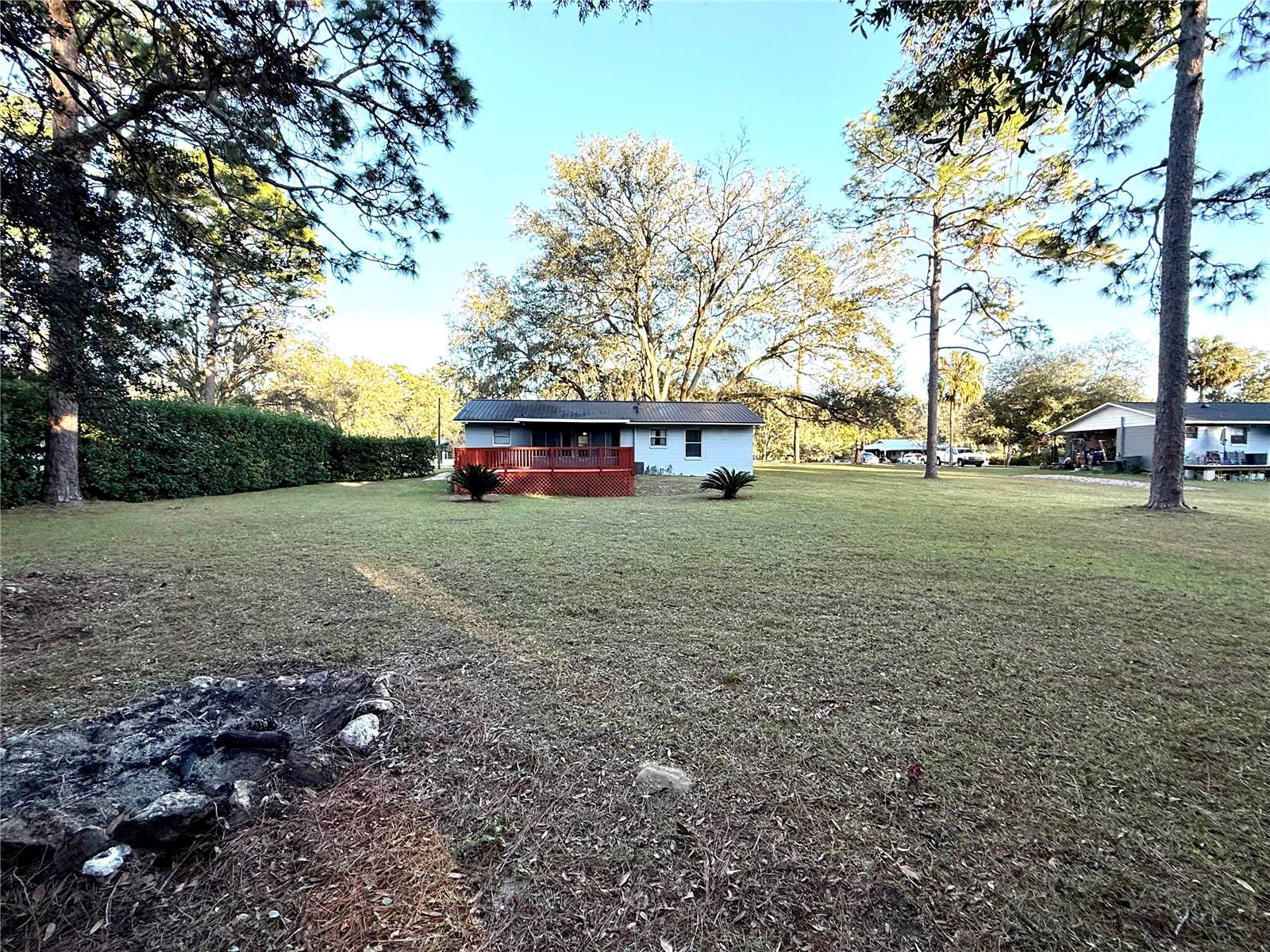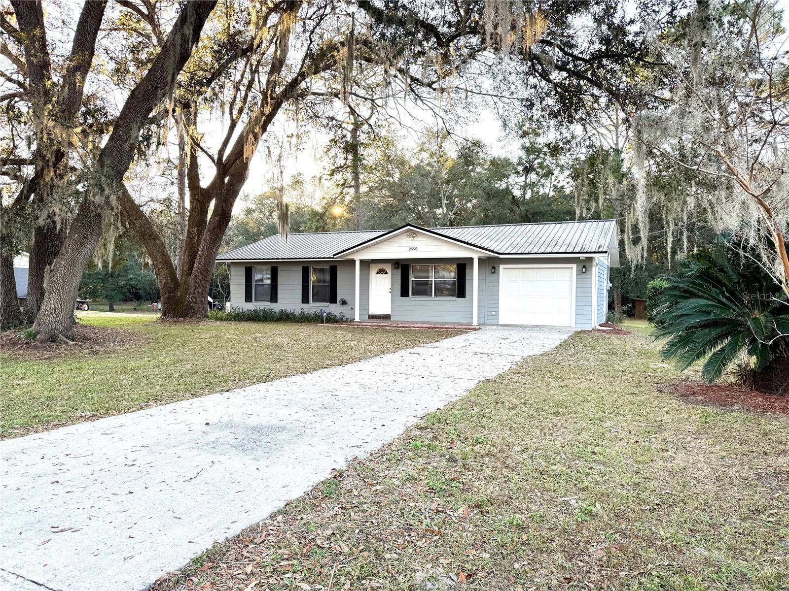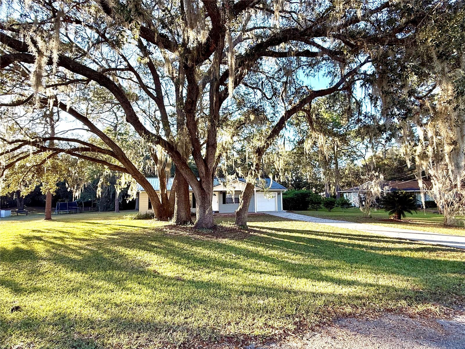 This charming 3-bedroom, 1.5-bath home sits on a spacious and gorgeous 1-acre lot and offers a perfect blend of comfort and practicality. This well-maintained home offers modern touches with luxury vinyl plank flooring and tile throughout, combining durability with style, finished garage w/ automatic garage door, newer roof and HWH, large laundry/utility room and amazing oak trees and privacy hedge. Step inside to find a very efficient use of space in the cozy living area with well sized bedrooms and spacious closets. The eat-in kitchen offers side counter space and storage and good space for meal prep. The dining area has an open view to the living room... perfect for entertaining and family time. Step through the french doors into the screened room for a serene view of the expansive back yard. Walk on outside to relax or entertian on the spacious deck. Ideal for gardening, outdoor activities, adding a pool or simply enjoying the peacful surroundings. Located in a friendly and tranquil neighborhood, this home combines rural charm with convenient access to local amenities and services. Conveniently located for quick access to Gainesville, Ocala, Crystal River, Dunnellon or Chiefland, as well as the entire Gulf Coast. Perfect for the first-time home buyer! Don't miss the chance to make this wonderful home yours!