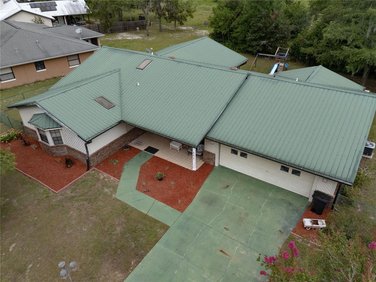 Welcome to this lovely, well-maintained 3-bedroom, 2-bath home situated just outside the charming town of Williston, Florida. Enjoy peaceful living with easy access to Gainesville, Ocala, Crystal River, Chiefland, and the entire Nature Coast—making this the perfect balance between convenience and quiet countryside charm. Inside, the open-concept layout creates a bright, airy flow from the expansive living area to the large, fully updated kitchen. The kitchen features brand-new stainless steel appliances, plentiful soft-close cabinets and drawers, and ample counter space—perfect for both everyday meals and entertaining. The primary suite is a true retreat, featuring beautiful herringbone-patterned flooring, a spacious walk-in closet, and a luxurious en suite bathroom with a huge walk-in shower. This thoughtfully designed home also includes: A separate office and flex space for remote work or study that could even be converted to a 4th bedroom, A large laundry/mudroom, A spacious garage with built-in storage closet, Metal roof for long-term durability and low maintenance, several bay windows that allow lots of natural light to fill the space. Recent upgrades include HVAC in 2022, new appliances 2023, new well pump and pipes 2018 and new drain field 2019. A wall of French doors and windows that open to a large fenced backyard and views of a golf course currently under renovation. Outdoors, you’ll find a generous patio, playground equipment, and plenty of space for kids and pets to play safely in the secure backyard. This move-in-ready home offers everything you need for comfort, style, and functionality—all in a peaceful, family-friendly setting.