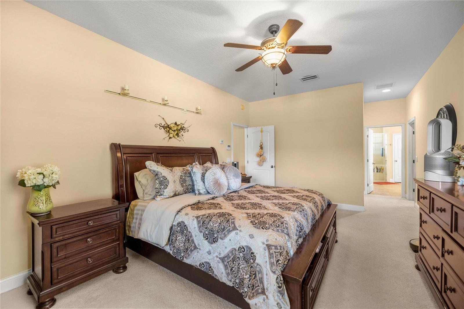 Exceptionally maintained by its current owners, this 3-bedroom, 2-bath home is located in the desirable Village at Hidden Lakes, a gated and deed-restricted equine community. Situated on a corner lot, the property offers added privacy and curb appeal, featuring stone accent upgrades on the front elevation and PVC 4-board fencing. The interior is well laid out and filled with natural light, offering comfortable living and dining spaces that flow seamlessly for everyday living or entertaining. Sliding glass doors open to a large, tiled screened lanai, providing the perfect space to relax and enjoy the peaceful surroundings. The primary suite is spacious and functional, complete with a walk-in closet and ensuite bath, while the additional bedrooms offer flexibility for guests or a home office. Additional features include an indoor laundry room, ample storage, and a 2-car garage. Conveniently located near Williston, Ocala, and major equestrian venues, this home offers a balance of space, privacy, and location.