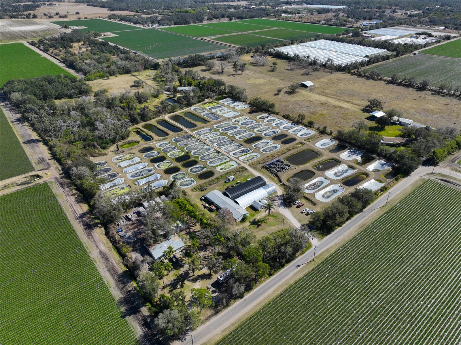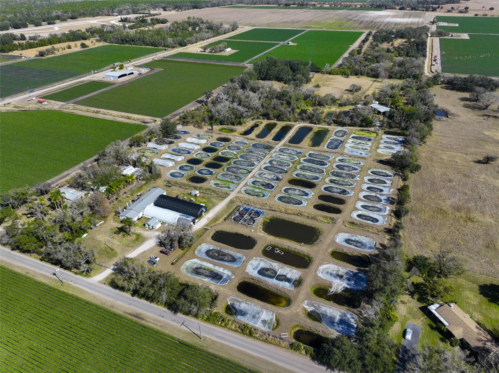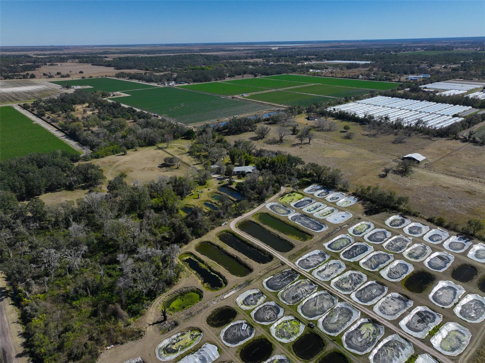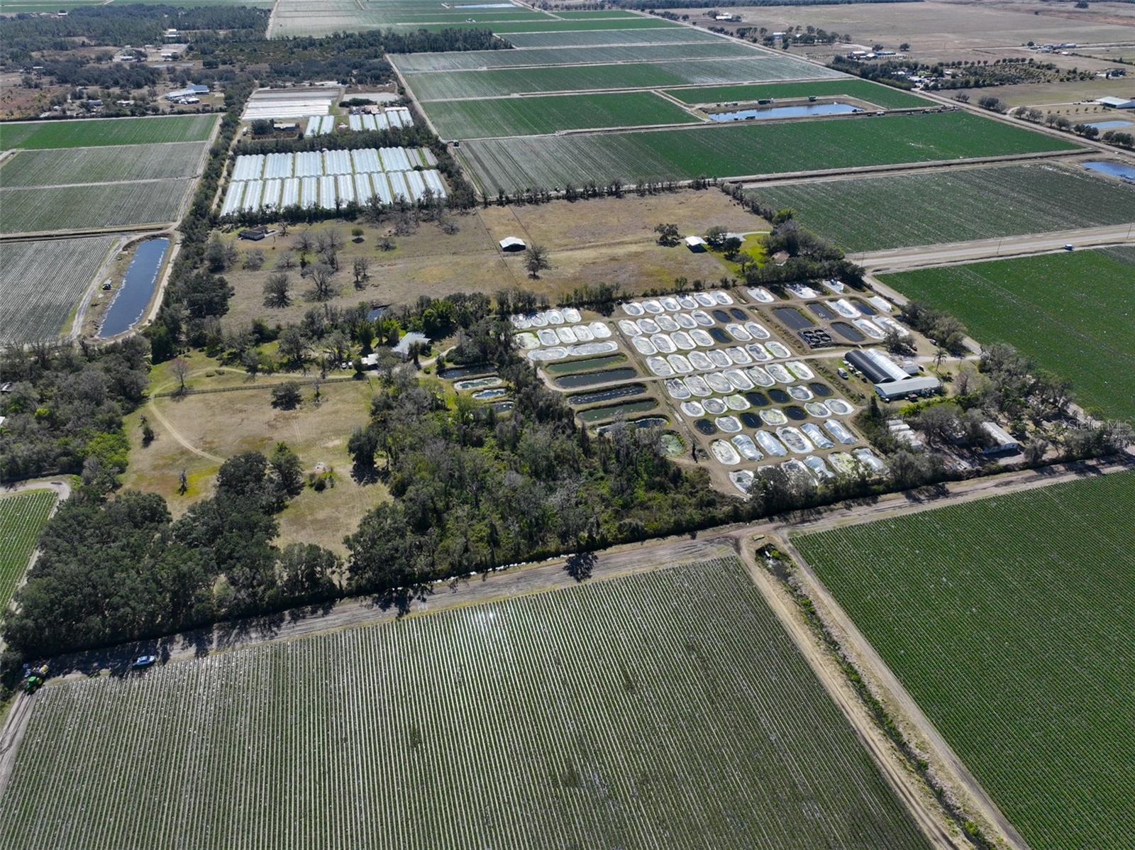 Rare chance to purchase an established, turnkey income-producing aquaculture operation situated on 19.58 fenced acres, Zoned A/A Agriculture, 1 Unit per 10 Acres, and in Flood Zone X (No Flood Insurance Required)! This property is ideally suited for owner-operators or investors seeking an established agricultural business with expansion potential and on-site infrastructure already in place. Current agriculture and homestead exemptions add the benefit of low property taxes. The fully established and reputable aquaculture farm occupies the front portion of the property and is currently in full production with contracted employees. The "fish farm" includes 97 outdoor breeding ponds, three greenhouses, a large concrete block building with metal roof, two 4" wells and one 6" well, air compressors, a feed shed, workshop, above-ground propane storage tank and a 50kW diesel-powered backup generator. The 6" well and a large compressor supply air and supplemental water to all the outdoor ponds with a volume ranging from 19,000 gallons to 100,000 gallons with a medium volume of 39,000 gallons. The greenhouses and utility buildings feature a state-of-the-art water purification and flow-through recirculation system to the various sized vats and aquariums supporting production of over 50 varieties of tropical fish. All of the water is degassed and oxygenated before entering the buildings. Aeration to all vats and aquariums is also supplied to the buildings. All drainage systems in place for aquaculture farm exceed Best Management Practices. The remaining acreage provides additional value and flexibility, with cleared open pastures, wooded areas, ponds and creek, allowing for future expansion, alternative agricultural use or diversification of operations. A fenced 4 acre paddock currently home to a Kentucky Mountain Horse offers space for additional occupants as FARM ANIMALS AND HORSES ARE ALLOWED! Also located on the property is a 2002 Palm Harbor 2280 sq. ft. home with 3 bedrooms, 2 baths, multiple living and dining areas, a separate office/den, wood-burning fireplace & wrap around porch/deck which provides on-site housing for an owner-operator or manager. Recent updates include a new kitchen with quartz counters (2024), new roof & gutters (2023) and a high efficiency HVAC still under warranty. Residence has a 4" well with full water purification system & water softener, two septics, paver garden patio area, a double carport & utility buildings. Surrounding the home are peaceful views of oak & mango trees, tropical landscaping, clumping bamboo, a fire pit, outdoor swing and additional expansive green space. Additional information regarding the aquaculture business, fish stock, equipment & supplies is available upon request. Please see attached video on Tour 2 and additional related MLS listings. (TB8474506, TB8474524, TB8474537)