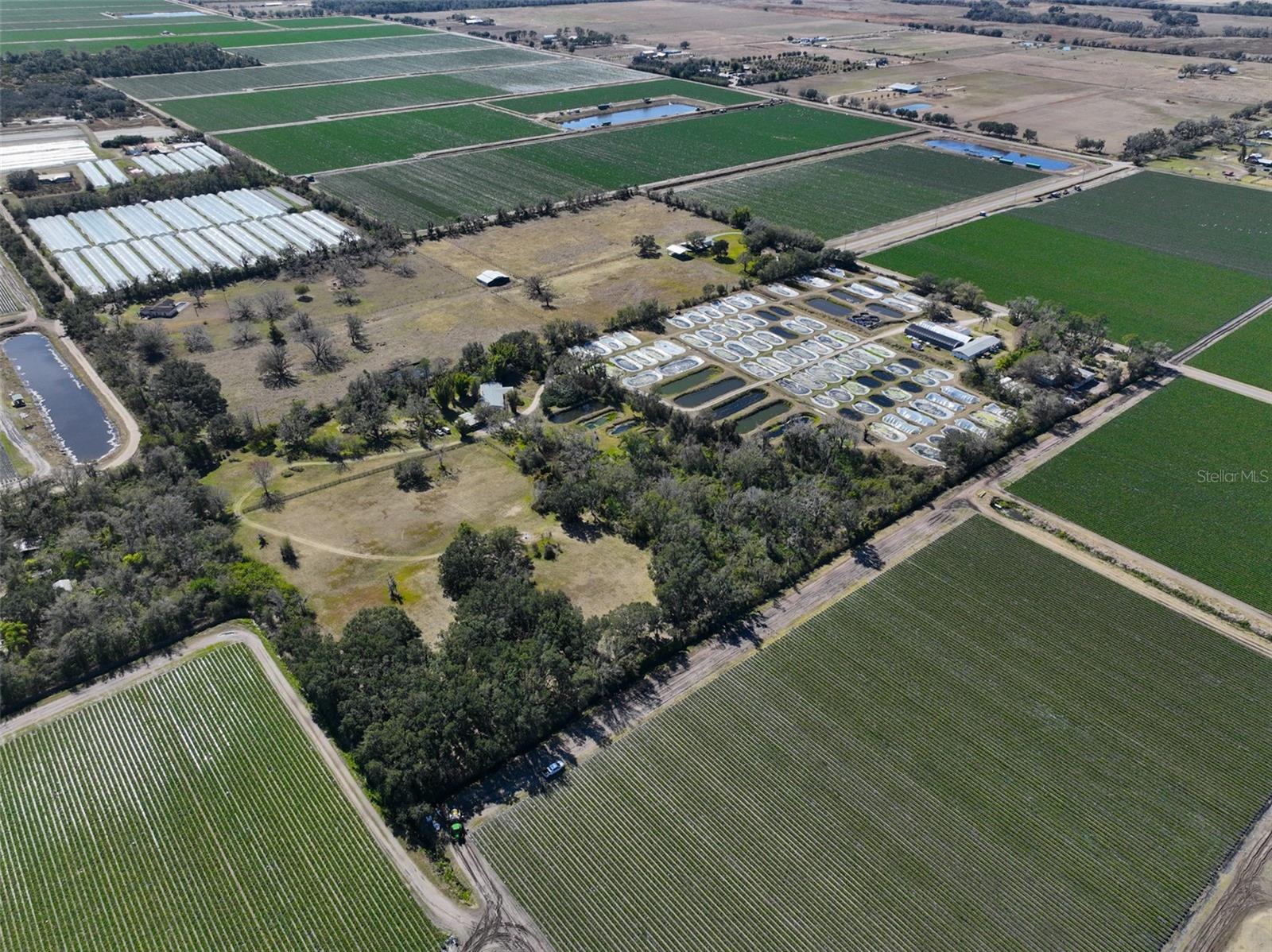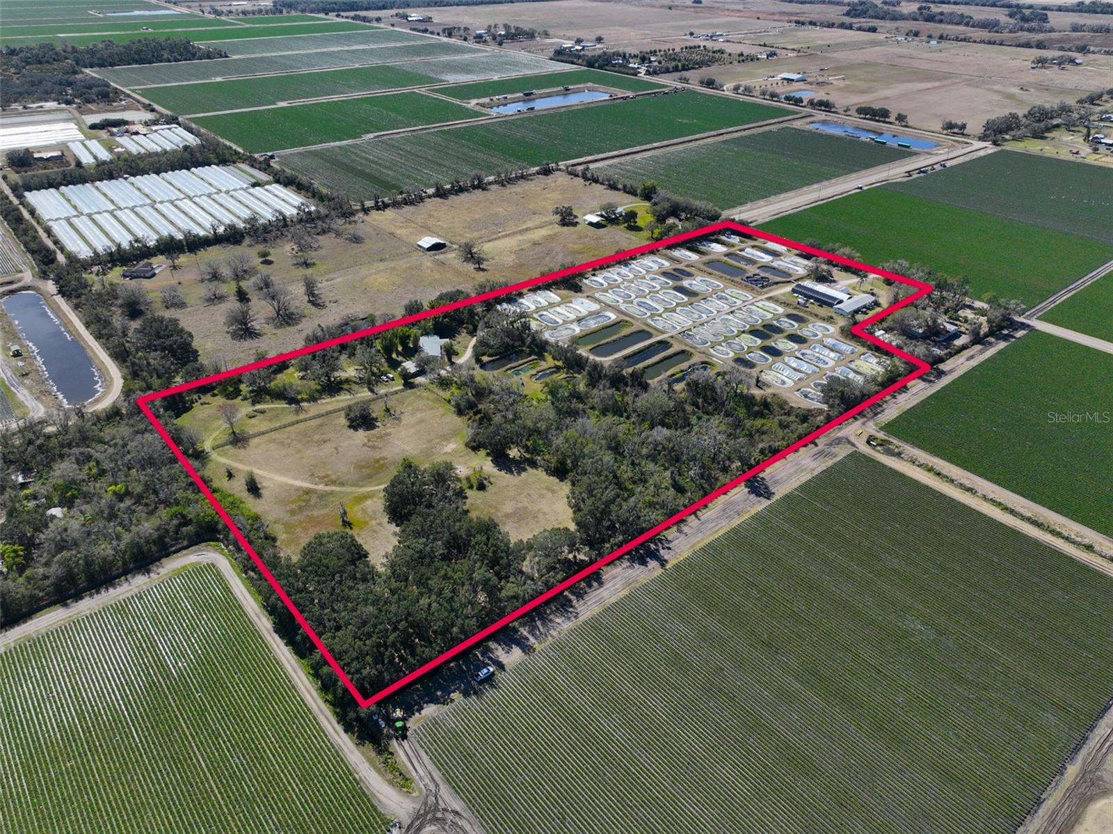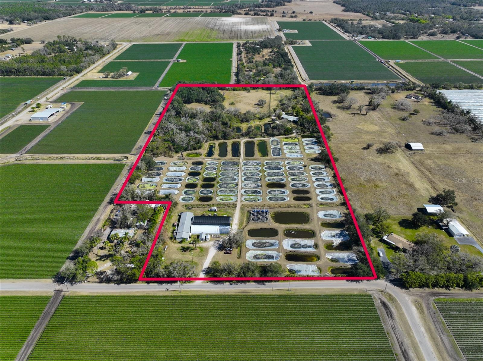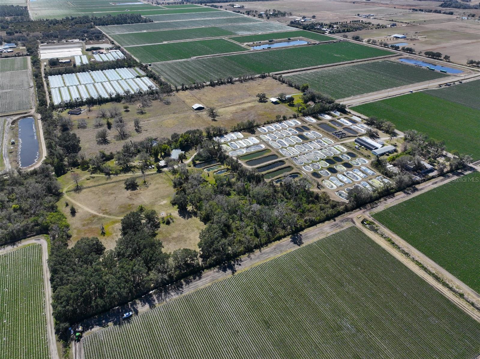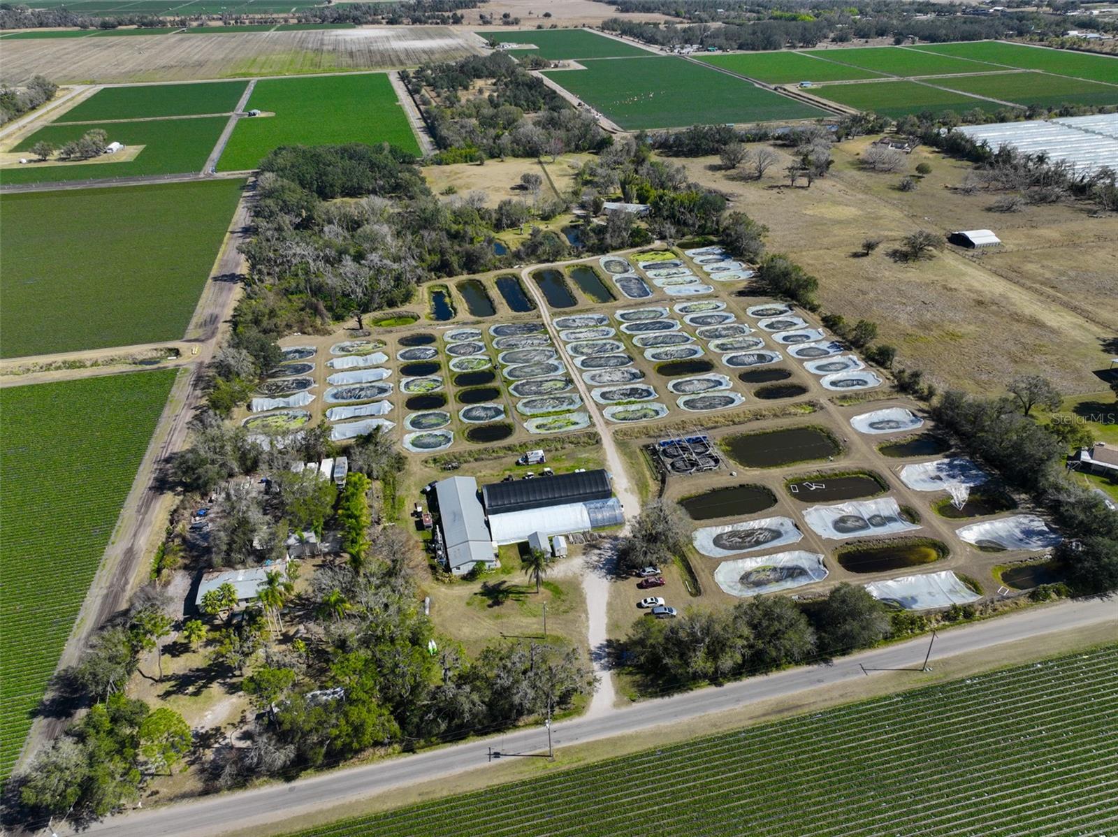 Rare chance to purchase an established, turnkey income-producing aquaculture operation situated on 19.58 fenced acres, Zoned A/A Agriculture, 1 Unit per 10 Acres, and in Flood Zone X (No Flood Insurance Required)! This property is ideally suited for owner-operators or investors seeking an established agricultural business with expansion potential and on-site infrastructure already in place. Current agriculture and homestead exemptions add the benefit of low property taxes. The fully established and reputable aquaculture farm occupies the front portion of the property and is currently in full production with contracted employees. The "fish farm" includes 97 outdoor breeding ponds, three greenhouses, a large concrete block building with metal roof, two 4" wells and one 6" well, air compressors, a feed shed, workshop, above-ground propane storage tank and a 50kW diesel-powered backup generator. The 6" well and a large compressor supply air and supplemental water to all the outdoor ponds with a volume ranging from 19,000 gallons to 100,000 gallons with a medium volume of 39,000 gallons. The greenhouses and utility buildings feature a state-of-the-art water purification and flow-through recirculation system to the various sized vats and aquariums supporting production of over 50 varieties of tropical fish. All of the water is degassed and oxygenated before entering the buildings. Aeration to all vats and aquariums is also supplied to the buildings. All drainage systems in place for aquaculture farm exceed Best Management Practices. The remaining acreage provides additional value and flexibility, with cleared open pastures, wooded areas, ponds and creek, allowing for future expansion, alternative agricultural use or diversification of operations. A fenced 4 acre paddock currently home to a Kentucky Mountain Horse offers space for additional occupants as FARM ANIMALS AND HORSES ARE ALLOWED! Also located on the property is a 2002 Palm Harbor 2280 sq. ft. home with 3 bedrooms, 2 baths, multiple living and dining areas, a separate office/den, wood-burning fireplace & wrap around porch/deck which provides on-site housing for an owner-operator or manager. Recent updates include a new kitchen with quartz counters (2024), new roof & gutters (2023) and a high efficiency HVAC still under warranty. Residence has a 4" well with full water purification system & water softener, two septics, paver garden patio area, a double carport & utility buildings. Surrounding the home are peaceful views of oak & mango trees, tropical landscaping, clumping bamboo, a fire pit, outdoor swing and additional expansive green space. Additional information regarding the aquaculture business, fish stock, equipment & supplies is available upon request. Please see attached video on Tour 2 and additional related MLS listings. (TB8474506, TB8474524, TB8474537)