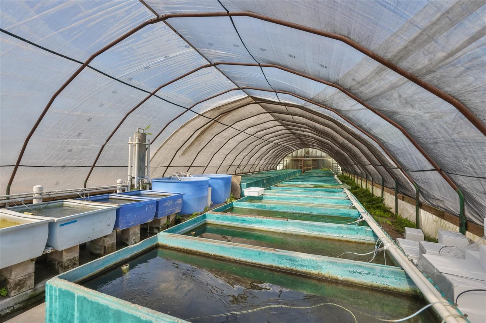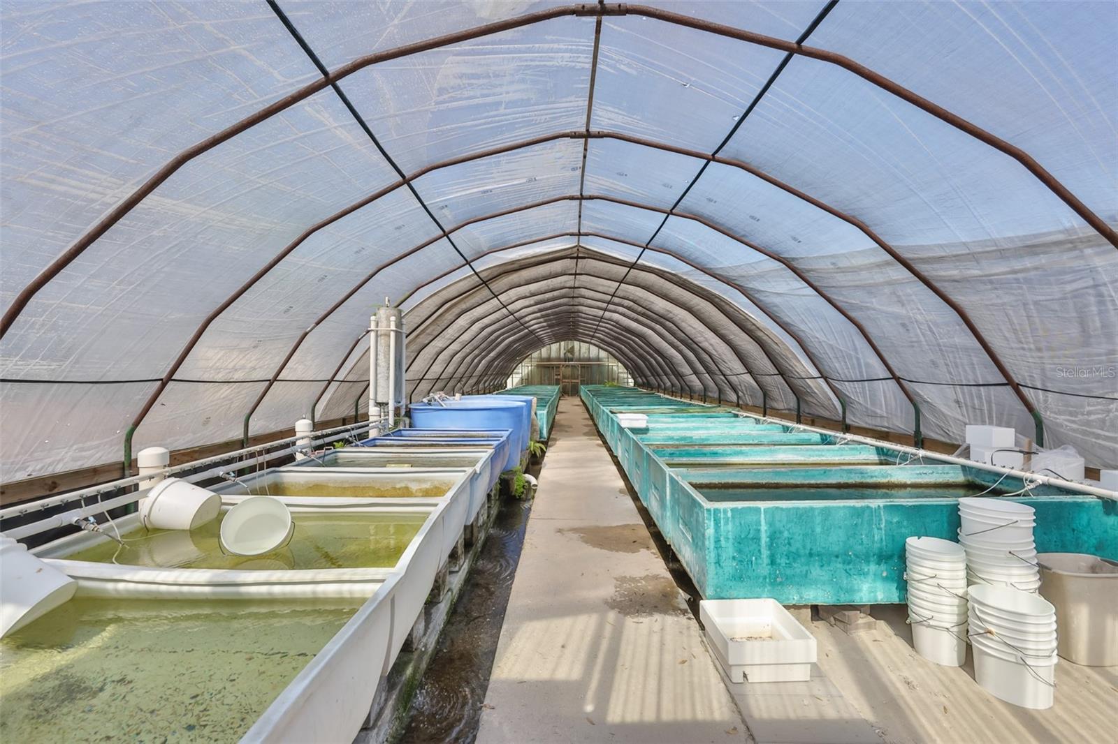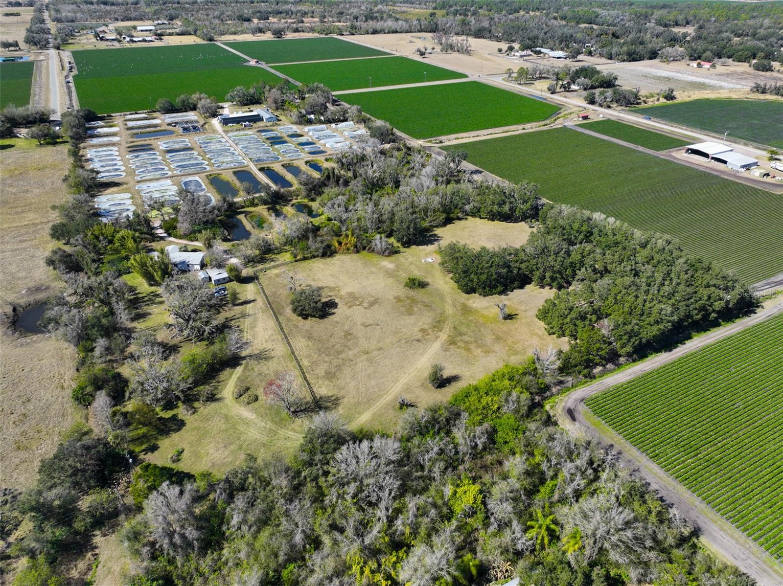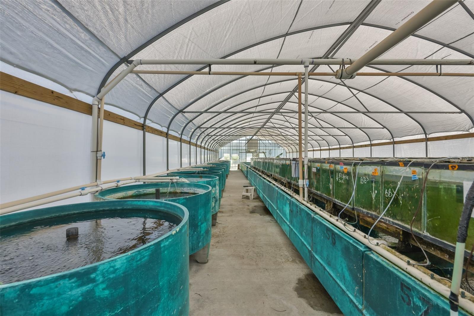 Rare chance to purchase an established, turnkey income-producing aquaculture operation situated on 19.58 fenced acres, Zoned A/A Agriculture, 1 Unit per 10 Acres, and in Flood Zone X (No Flood Insurance Required)! This property is ideally suited for owner-operators or investors seeking an established agricultural business with expansion potential and on-site infrastructure already in place. Current agriculture and homestead exemptions add the benefit of low property taxes. The fully established and reputable aquaculture farm occupies the front portion of the property and is currently in full production with contracted employees. The "fish farm" includes 97 outdoor breeding ponds, three greenhouses, a large concrete block building with metal roof, two 4" wells and one 6" well, air compressors, a feed shed, workshop, above-ground propane storage tank and a 50kW diesel-powered backup generator. The 6" well and a large compressor supply air and supplemental water to all the outdoor ponds with a volume ranging from 19,000 gallons to 100,000 gallons with a medium volume of 39,000 gallons. The greenhouses and utility buildings feature a state-of-the-art water purification and flow-through recirculation system to the various sized vats and aquariums supporting production of over 50 varieties of tropical fish. All of the water is degassed and oxygenated before entering the buildings. Aeration to all vats and aquariums is also supplied to the buildings. All drainage systems in place for aquaculture farm exceed Best Management Practices. The remaining acreage provides additional value and flexibility, with cleared open pastures, wooded areas, ponds and creek, allowing for future expansion, alternative agricultural use or diversification of operations. A fenced 4 acre paddock currently home to a Kentucky Mountain Horse offers space for additional occupants as FARM ANIMALS AND HORSES ARE ALLOWED! Also located on the property is a 2002 Palm Harbor 2280 sq. ft. home with 3 bedrooms, 2 baths, multiple living and dining areas, a separate office/den, wood-burning fireplace & wrap around porch/deck which provides on-site housing for an owner-operator or manager. Recent updates include a new kitchen with quartz counters (2024), new roof & gutters (2023) and a high efficiency HVAC still under warranty. Residence has a 4" well with full water purification system & water softener, two septics, paver garden patio area, a double carport & utility buildings. Surrounding the home are peaceful views of oak & mango trees, tropical landscaping, clumping bamboo, a fire pit, outdoor swing and additional expansive green space. Additional information regarding the aquaculture business, fish stock, equipment & supplies is available upon request. Please see attached video on Tour 2 and additional related MLS listings. (TB8474506, TB8474524, TB8474537)