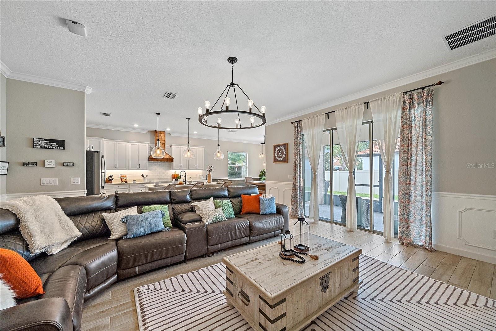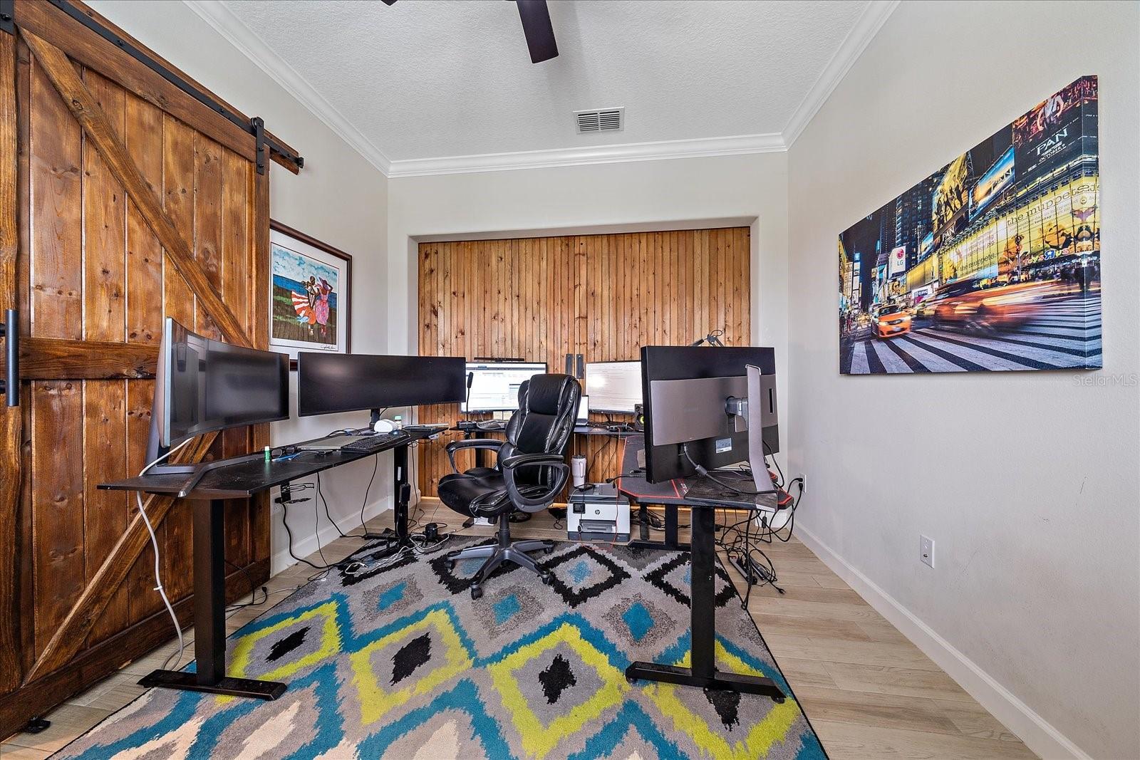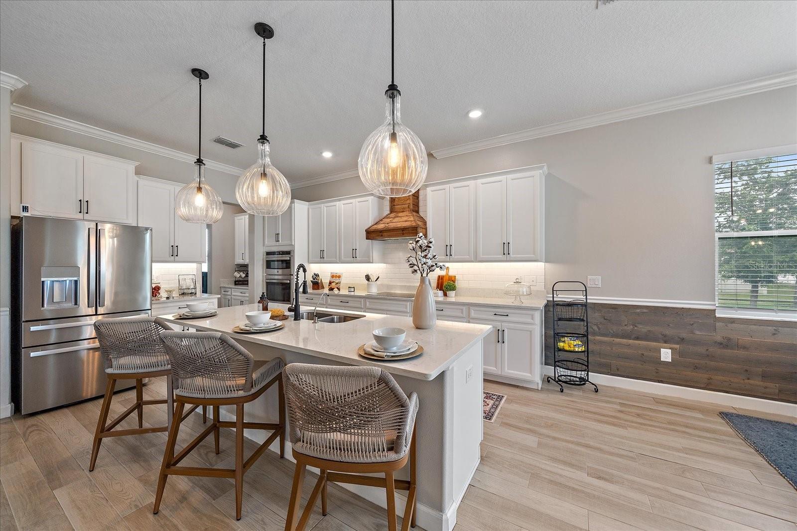 A luxurious lifestyle awaits you in the 55+ resort-style community of Medley at Southshore Bay! This lovely home has an in-law suite next to the entrance, the Primary Owners Suite is to the rear of the home and includes custom closets, and an additional guest bedroom. There is also two additional bonus rooms, an office on the first floor, a he/she cave on the second floor, plus 3 1/2 bathrooms. The Seller has taken immaculate care of the home and is move-in ready! Your new elegant home sits on a premium lot and was built in 2021. This home boasts countless upgrades such as crown molding, chair rails, light fixtures, induction stovetop and hood, subway tiles and backsplash, Kitchen cabinet hardware, large baseboards throughout the main living area, and MORE. You will also fall in love with the custom barn doors, quartz countertops, accent walls, spacious lanai, and stunning backyard patio pavers. Medley at Southshore Bay is a 55+ Community and offers maintenance-free grounds, fully gated, swimming lagoon membership, and a clubhouse. The Medley clubhouse features a restaurant, bar, state-of-the-art fitness center, and resort pool. Come and experience the wonderful, active lifestyle and live the Florida dream so many desire!