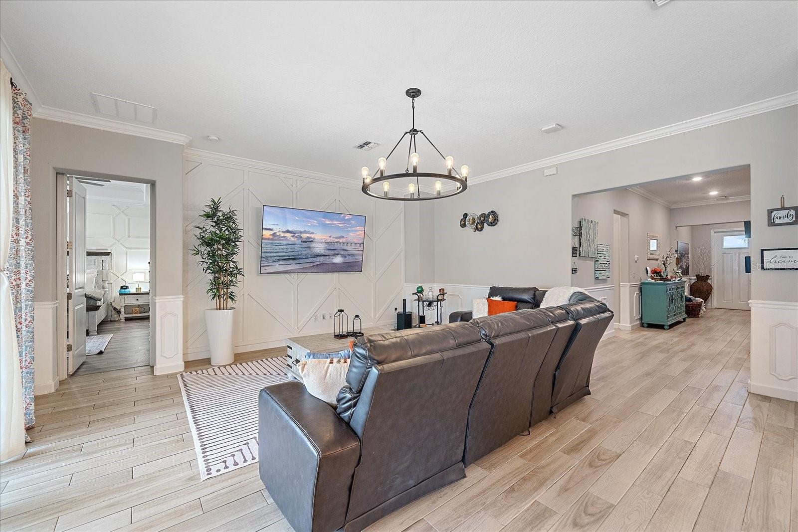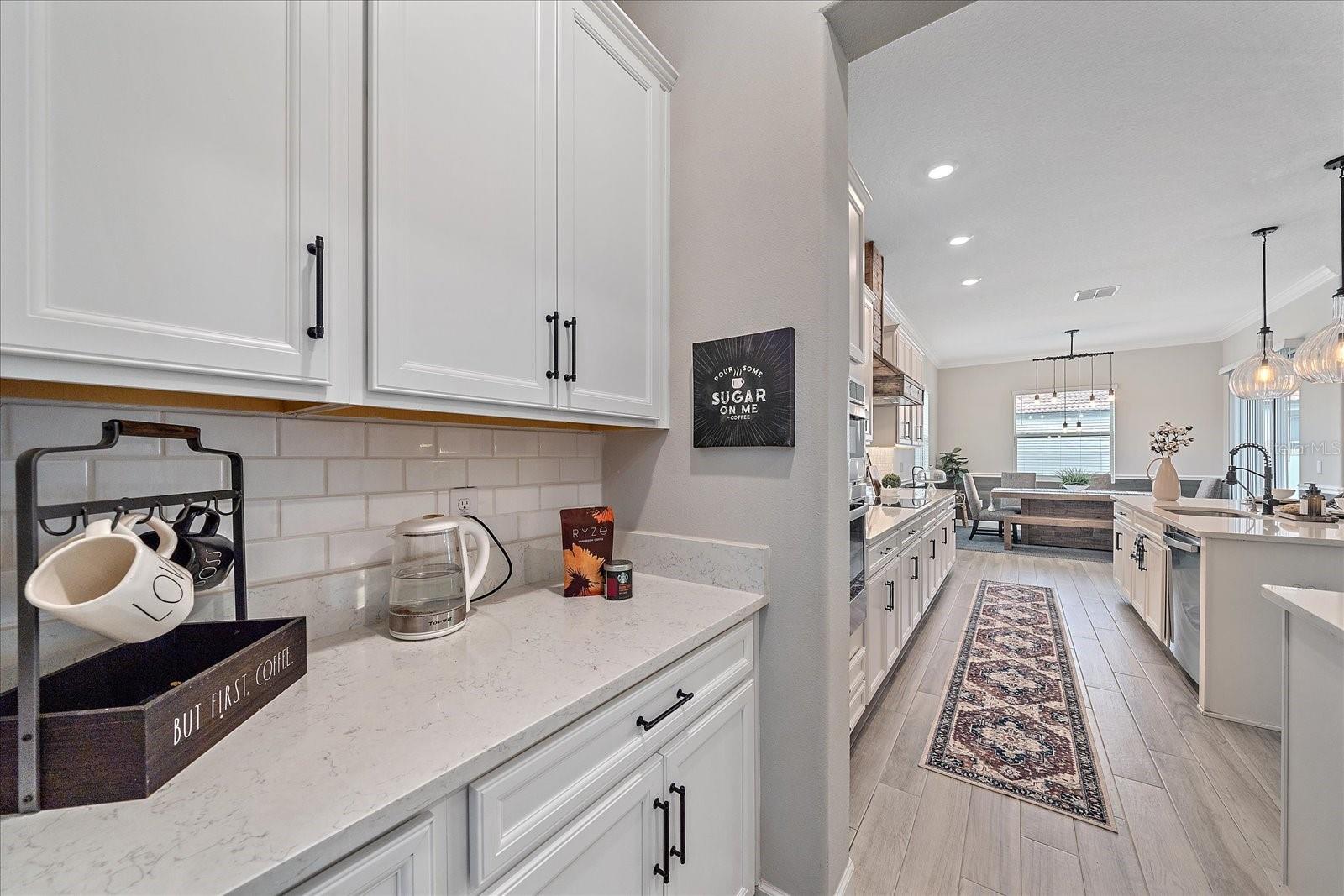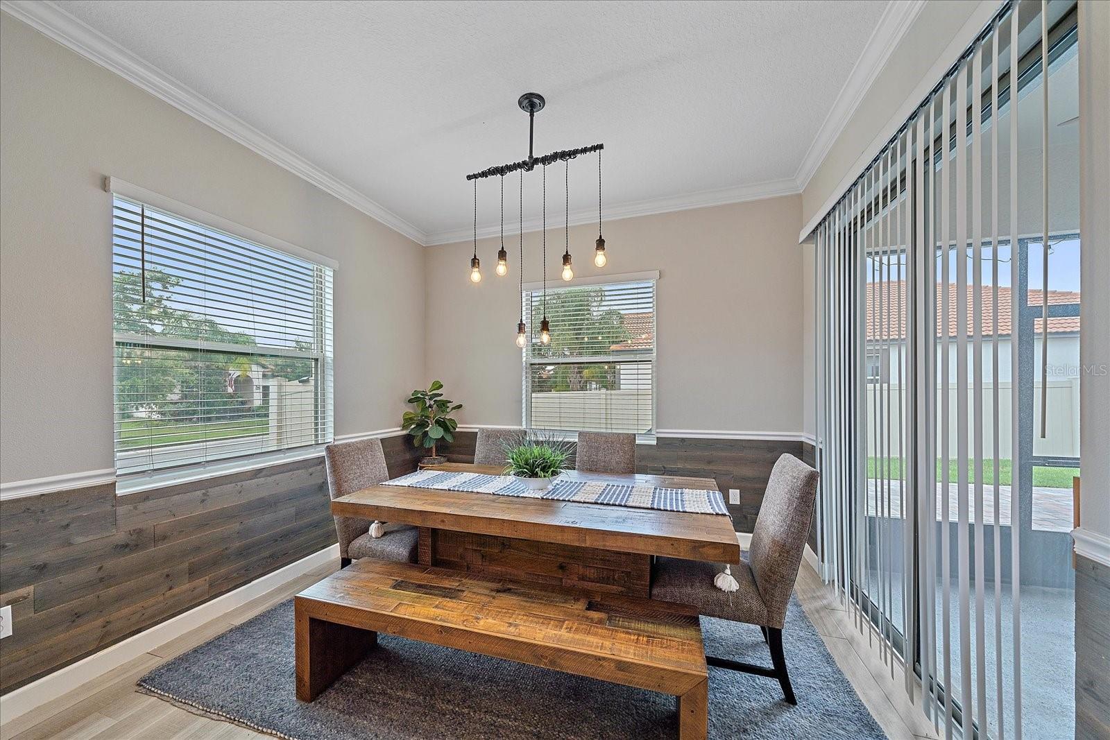 A luxurious lifestyle awaits you in the 55+ resort-style community of Medley at Southshore Bay! This lovely home has an in-law suite next to the entrance, the Primary Owners Suite is to the rear of the home and includes custom closets, and an additional guest bedroom. There is also two additional bonus rooms, an office on the first floor, a he/she cave on the second floor, plus 3 1/2 bathrooms. The Seller has taken immaculate care of the home and is move-in ready! Your new elegant home sits on a premium lot and was built in 2021. This home boasts countless upgrades such as crown molding, chair rails, light fixtures, induction stovetop and hood, subway tiles and backsplash, Kitchen cabinet hardware, large baseboards throughout the main living area, and MORE. You will also fall in love with the custom barn doors, quartz countertops, accent walls, spacious lanai, and stunning backyard patio pavers. Medley at Southshore Bay is a 55+ Community and offers maintenance-free grounds, fully gated, swimming lagoon membership, and a clubhouse. The Medley clubhouse features a restaurant, bar, state-of-the-art fitness center, and resort pool. Come and experience the wonderful, active lifestyle and live the Florida dream so many desire!