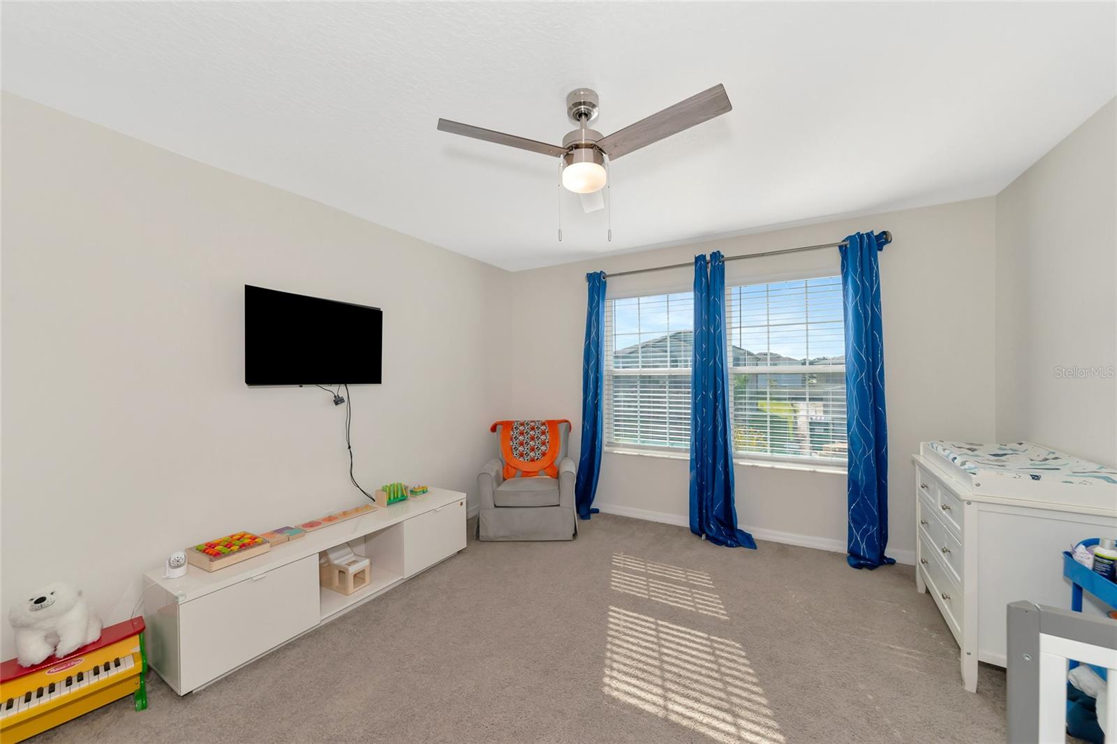 SELLER offering to BUY DOWN interest rate!! Built in 2023 this MI Homes Mira Lago-A model boasts over 3500 square feet of living space offering 5 bedrooms, 3 bathrooms, a 3 car garage, and more than enough space for everyone and everything! From the moment you step through the front door, you’re greeted by a grand foyer featuring high ceilings and a large dining room to your left. The GOURMET KITCHEN is a chef’s dream, boasting stainless steel appliances and a large island with seating. The granite countertops and white kitchen cabinets are accentuated by a grey tile backsplash, giving it a clean, modern look. There is an abundance of cabinet storage space, a walk-in pantry, and breakfast nook. The windows and sliding glass doors let plenty of natural light inside, and lead to a screened in lanai and beautifully designed paver patio with plenty of room for outdoor seating and dining. The open-concept living area includes a generously sized living room with a built-in electric fireplace. Also downstairs is a guest bedroom and full bathroom. There are upgraded fans and light fixtures throughout the home. Upstairs contains a second large FAMILY ROOM/FLEX SPACE that can be used as a playroom, media room, or additional living space.. You’ll find the master suite to be both comfortable and elegant with a luxurious en-suite bathroom, complete with double vanities. The four remaining bedrooms and second guest bath all have plenty of space and a clean, neutral color palate that offers sophistication and versatility. As if the Home itself were not enough – AMENITIES ABOUND at Berry Bay. A Gorgeous Community Pool, Clubhouse, Pickleball and Basketball Courts, a Playground and Dog Park are available for residents to enjoy. There is NO NEED to wait on new construction when this BETTER THAN NEW home is available today!