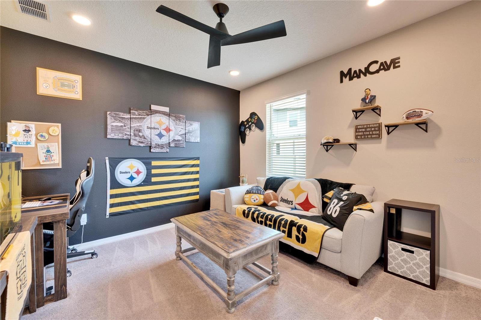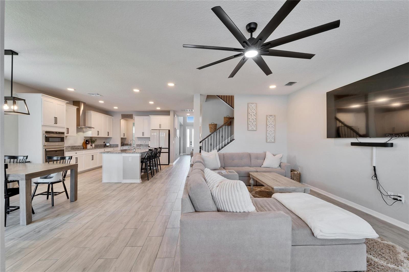 This 5-bedroom, 4-bath, 4-CAR GARAGE stunner sits on a quiet cul-de-sac lot with full water views. As you arrive, you’ll immediately notice the incredible curb appeal and the impressive width of this highly sought-after lot. The paver driveway and stone exterior beautifully showcase this stately home. As soon as you step inside, your attention will immediately be grabbed by the two-story entry, wrought iron upper railings, and custom office built-ins. The first floor features long-plank tile flooring throughout the main living space. As you come in from the 4-car garage there is a spacious laundry room, which is plumbed for a wash bin and has abundant storage space under the staircase. The kitchen is truly designed for a chef, offering generous counter space, ample cabinetry, and high-end stainless steel appliances. Just off the kitchen is a butler’s pantry with even more storage, perfect for entertaining and hosting parties. The main floor continues to impress with an additional bedroom and full bathroom, perfect for guests or everyday use. From the kitchen area, step out into the screened-in lanai which measures 40' X 32' giving you an expansive space of over 1,200 sq ft ideal for large outdoor dining, plenty of seating, and room for a play or game area. From the lanai you can enjoy beautiful views of the water and still have plenty of yard space since the home sits on a quarter acre lot. Upstairs, you’ll find hardwood flooring on the staircase and throughout the spacious loft/entertainment room. The owner’s suite is located at the rear of the home and features a well-appointed en-suite with dual vanities, a tiled shower, and a large walk-in closet. Three additional generously sized bedrooms include feature walls, with the bedroom nearest the loft offering direct access to a full en-suite bathroom. The garage is beautifully finished with epoxy flooring, storage shelving, a built-in shoe rack, and space for four vehicles. The middle space of the garage is a tandem 2-car deep space, perfect for storing a boat or camper or possibly having a home gym/workshop. With upgrades throughout and one of the best lots in the area, this home truly stands out. The Berry Bay Community features a community pool, pickleball courts, basketball courts, playground and dog walk stations. Tampa, St. Pete, Lakewood Ranch and beautiful beaches are all within 45 minutes, making this a perfect central location.