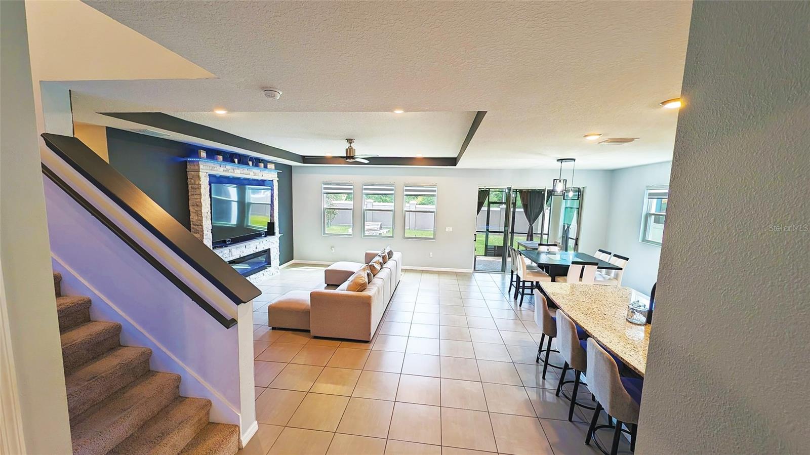 DON'T WAIT!! NEAR NEW CONDITION LOTS OF UPGRADES, MOVE-IN-READY HOME Located in the NEWLY ESTABLISHED, highly sought-after LAGOON community of Southshore Bay. Nestled in a picturesque setting, this property is highlighted by its unique 5-ACRE CRYSTAL BLUE LAGOON, providing a paradise of recreational activities such as kayaking, paddle boarding, a floating obstacle course, and entertainment options for the whole family. This spacious, TURNKEY residence boasts four bedrooms and three full baths, with the convenience of one bedroom and a full bath located on the main floor. Step inside to discover an inviting open-concept layout adorned with MODERN UPGRADES, including SMART HOME technology controlling lights, accent lights, garage door, and front entrance. Throughout the first floor, you'll find large ceramic tiles, providing both elegance and durability. Central heating and cooling ensure year-round comfort, while the second-floor laundry room with sink hook-up adds practicality to your daily routines. The heart of this home is the well-appointed kitchen featuring granite countertops, a sizable island with a sink, tile backsplash, wood cabinets, a generous walk-in pantry, a convenient walkthrough dry bar, and additional storage cabinets. Top-of-the-line stainless steel appliances from Whirlpool and Samsung elevate the cooking experience. The kitchen seamlessly flows into the great room, dining area, and a covered "screened-in" lanai, creating the perfect setup for indoor-outdoor living. Immerse yourself in the cozy ambiance of the great room, adorned with a beautiful stone accent wall and a built-in electric fireplace with a TV nook, adding both warmth and entertainment options. Moving to the second floor, the master bedroom awaits, complete with a sizable SITTING ROOM and a large walk-in closet that conveniently opens to the laundry room. The master bathroom impresses with tile flooring, an oversized walk-in shower with exquisite tile trim, a separate garden tub, and textured walls, creating a spa-like retreat. Additionally, the second floor boasts a spacious bonus room (Loft) with a closet, two more well-appointed bedrooms, a bathroom with double vanity sinks, a linen closet, and a storage closet, catering to your family's needs. For added peace of mind, this home comes equipped with CUSTOM STORM SHUTTERS, providing protection during inclement weather. Don't miss the opportunity to embrace Florida living at its finest in this exceptional home. Act now and make it yours to enjoy the perfect combination of style, functionality, and outdoor recreation!
