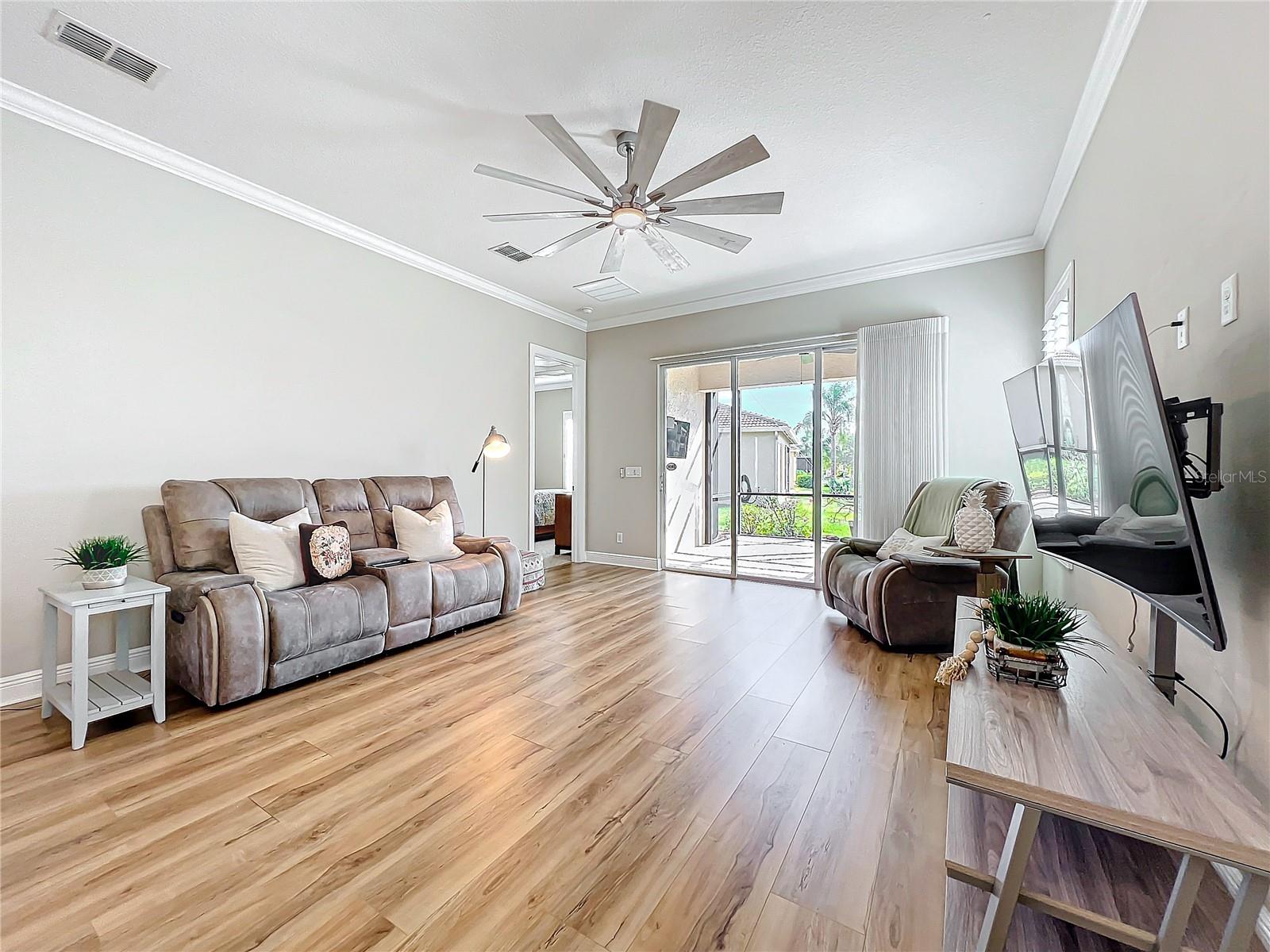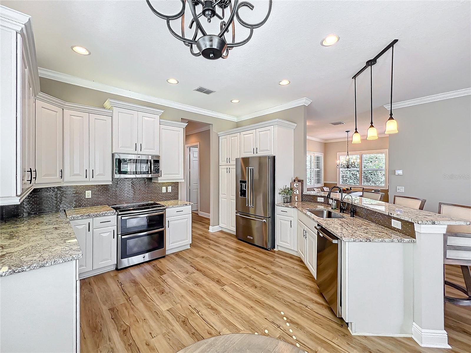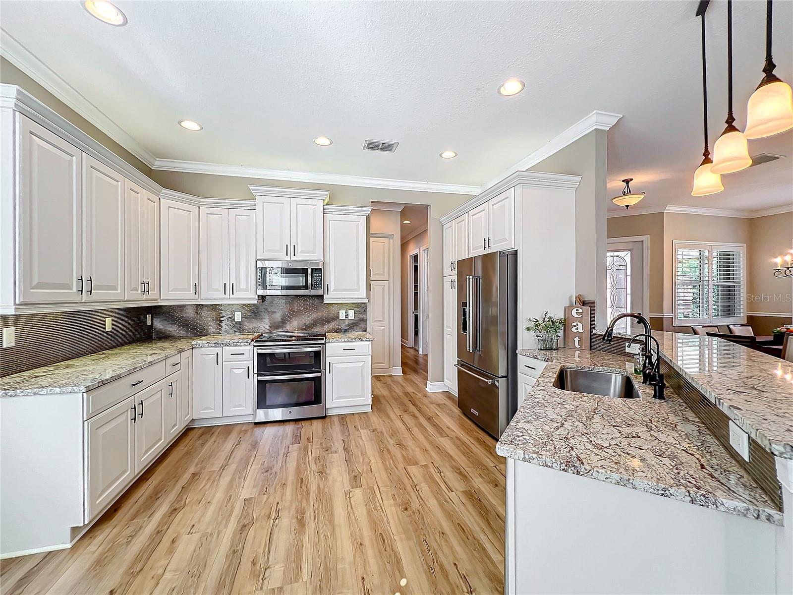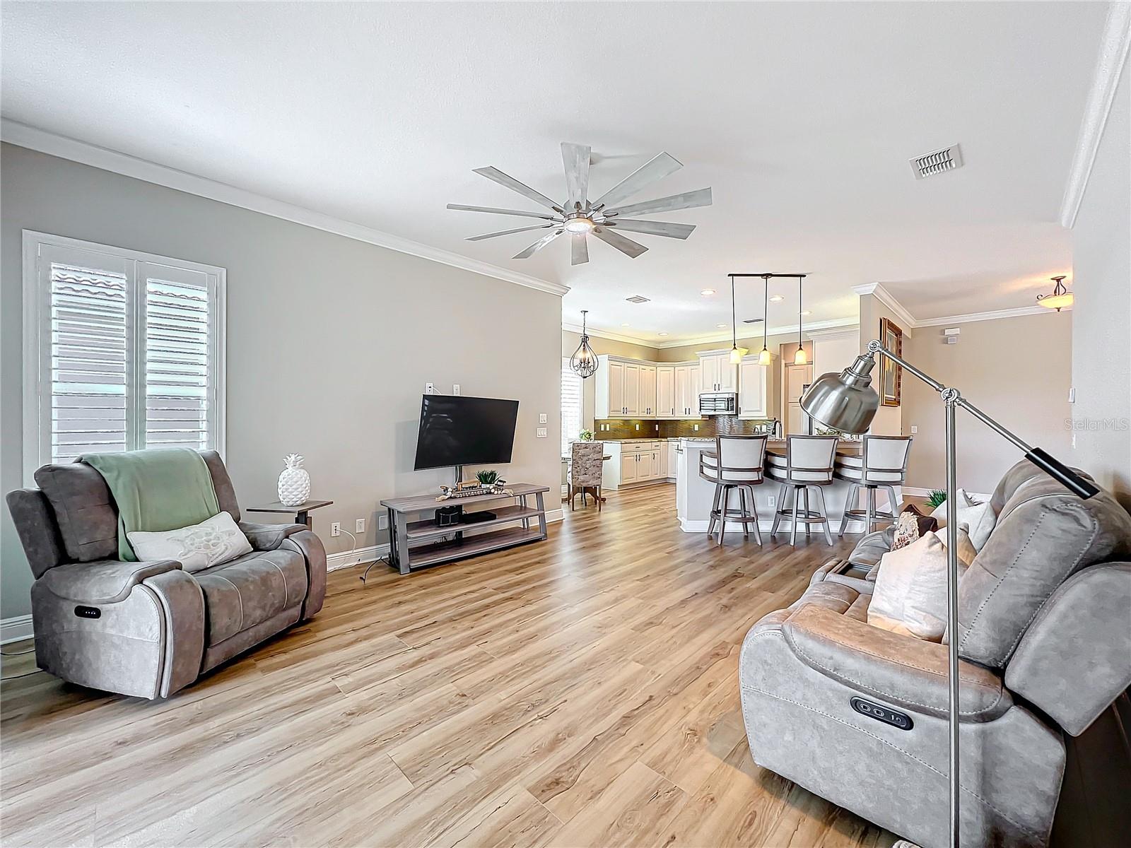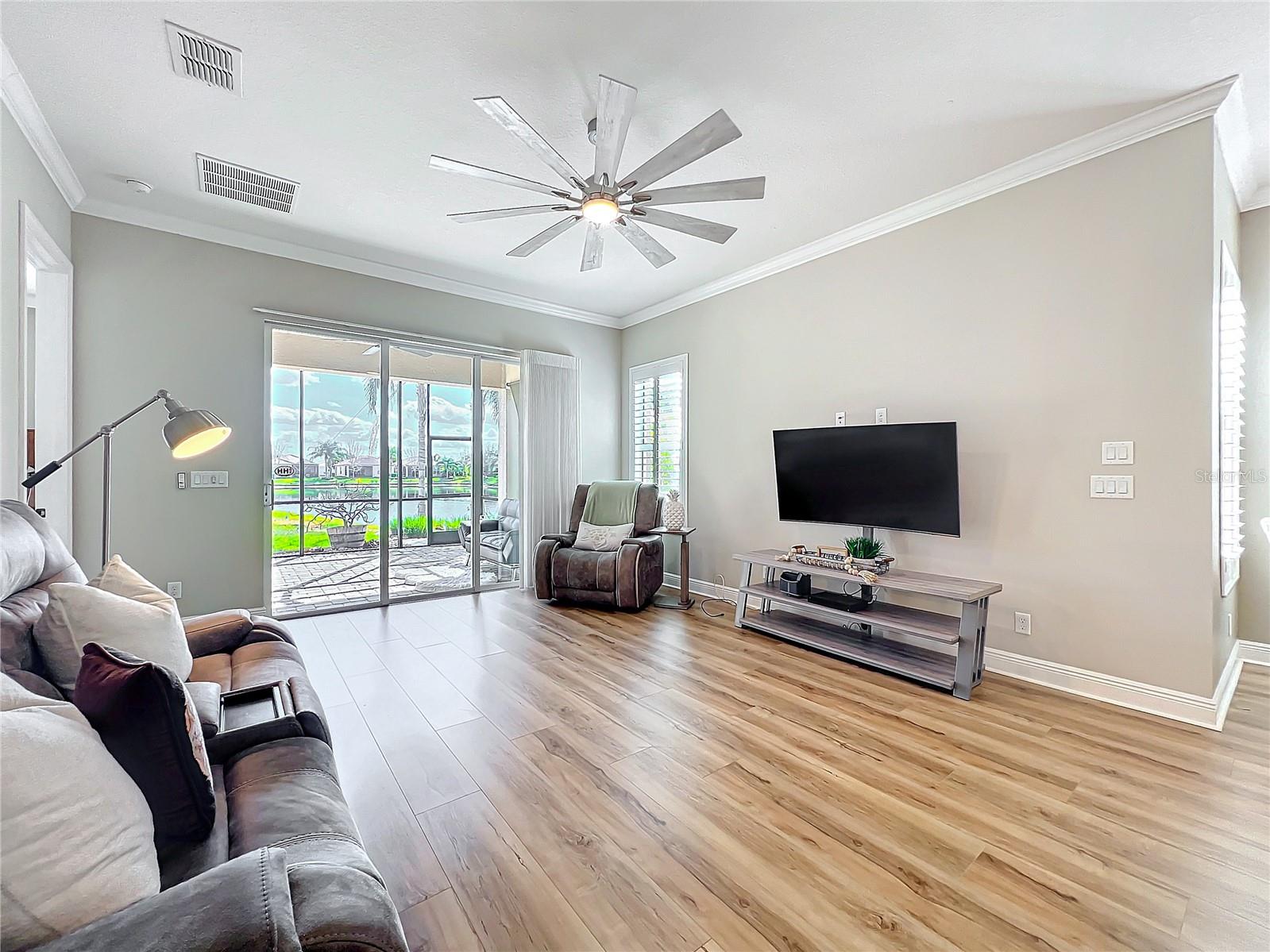 Luxury 3-Bed, 2-Bath Tile Roof Home in Valencia Lakes, Resort-Style Living at it's finest! This beautifully upgraded 1,775 sq. ft. home features a gourmet kitchen with granite countertops and high-end stainless steel appliances. Enjoy serene pond views from the spacious living room and master bedroom. The main suite includes built-in walk-in closets and a luxurious en-suite bath. *Furniture is negotiable* Additional features include luxury vinyl plank flooring, plantation shutters, crown molding, and an extended screened lanai with upgraded sealed brick pavers. Plus, RV/boat parking and hurricane shutters. Valencia Lakes offers a 40,000 sq. ft. clubhouse, heated pools, fitness center, tennis, pickleball, and more, with activities planned by a Lifestyle Director. Conveniently located near shopping and dining. A must-see!