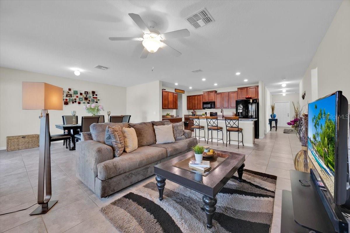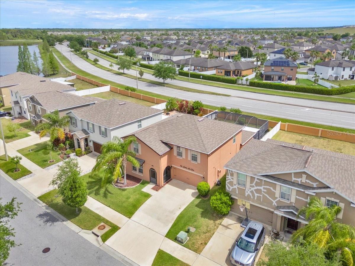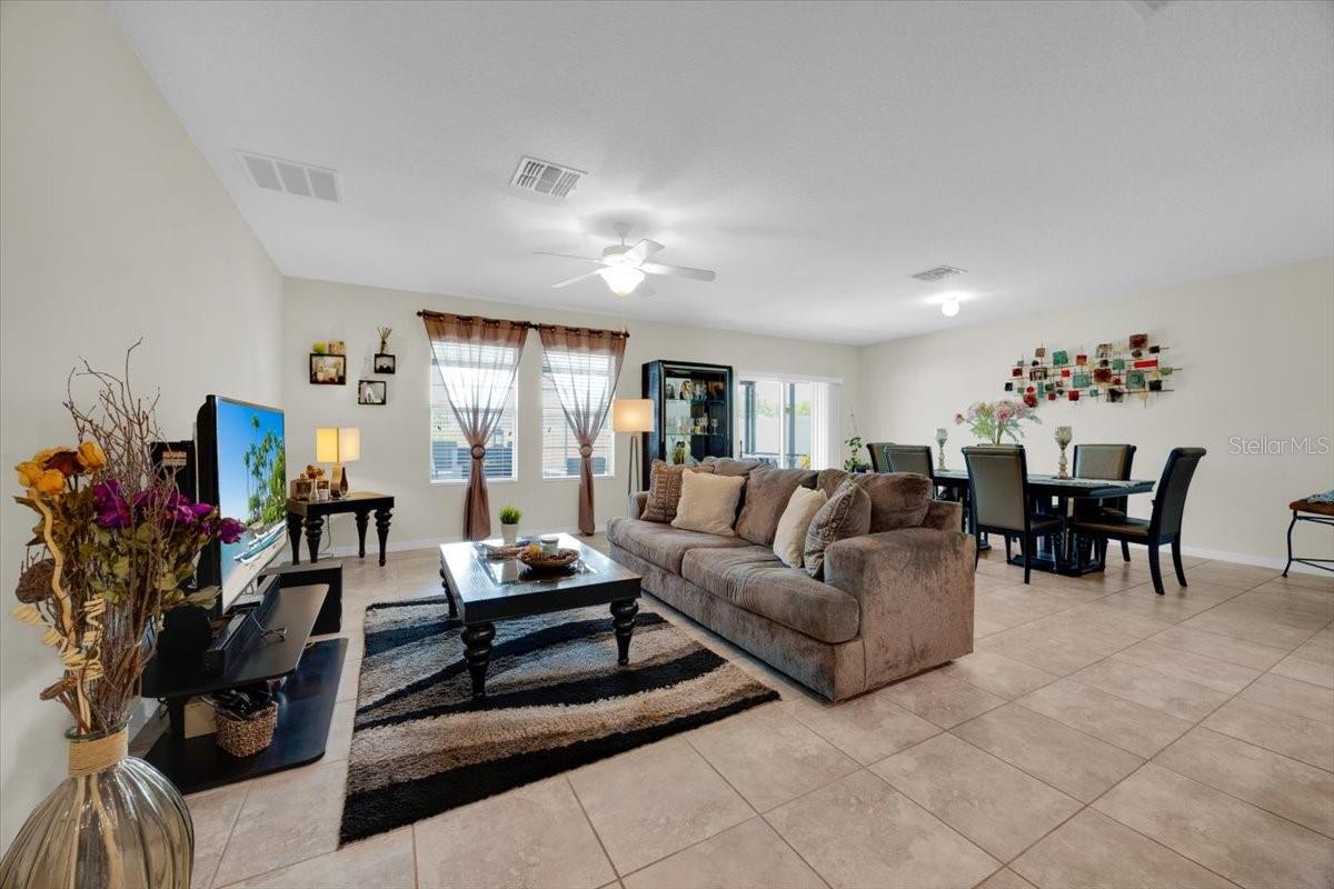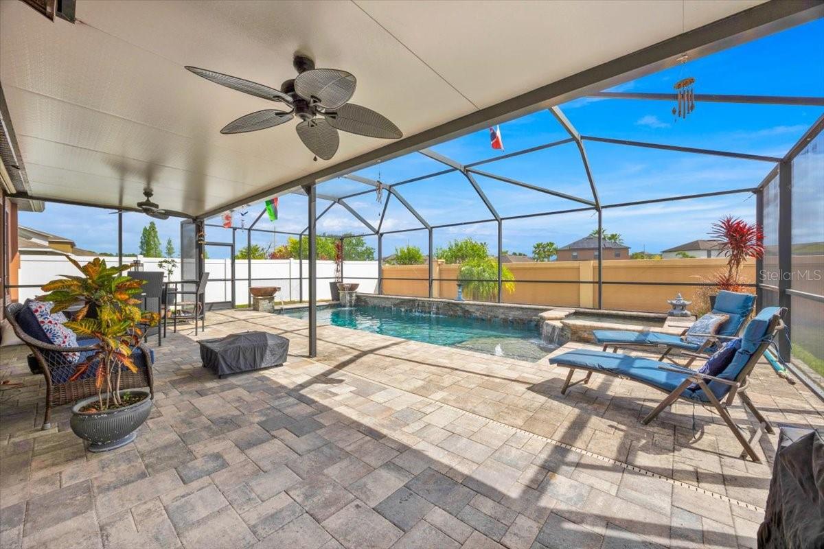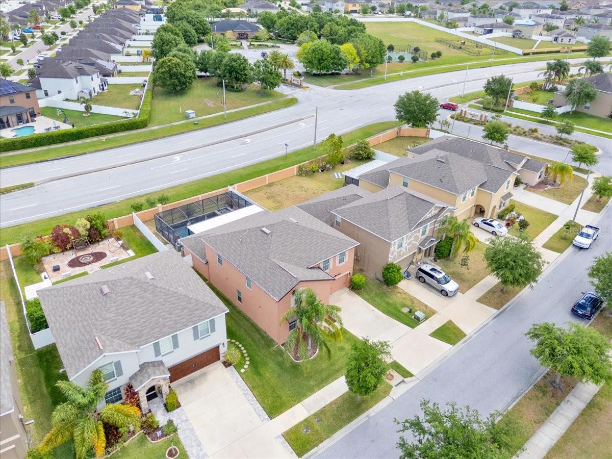 Welcome to this grand two-story pool home just steps away form the clubhouse featuring 6 bedrooms, 3 full bathrooms, a 2-car garage, and a resort-style Pebble Tec saltwater heated pool with a sun shelf—all fully screened and fenced for complete privacy. Freshly painted in 2024, this spacious home boasts a bright open floor plan with 9’ ceilings, a large kitchen with center island, GE appliances, 42” upper cabinets, and a combined dining and living room ideal for entertaining family and friends. The first floor includes the owner’s suite with a double vanity bathroom, a second bedroom, and a versatile flex room perfect for a home office or guest space. Upstairs, a generous loft leads to four additional bedrooms and two full bathrooms, providing ample room for everyone. Additional features include dual-zone A/C, a propane tank, and metal storm shutters for added peace of mind. Conveniently located near restaurants, entertainment, and major highways, this home truly has it all. Schedule your private showing today!