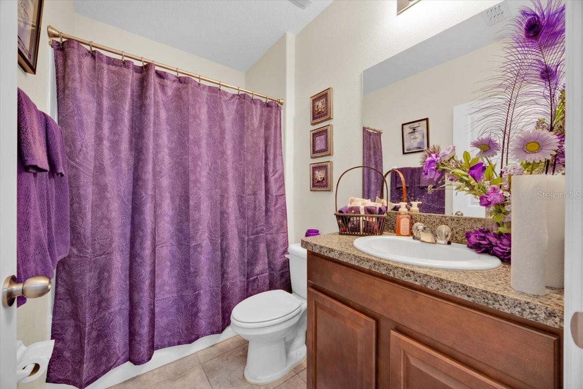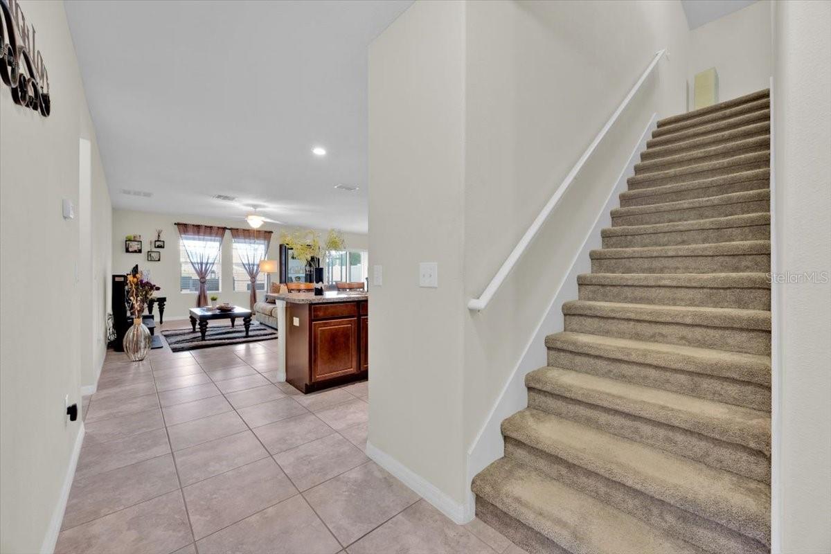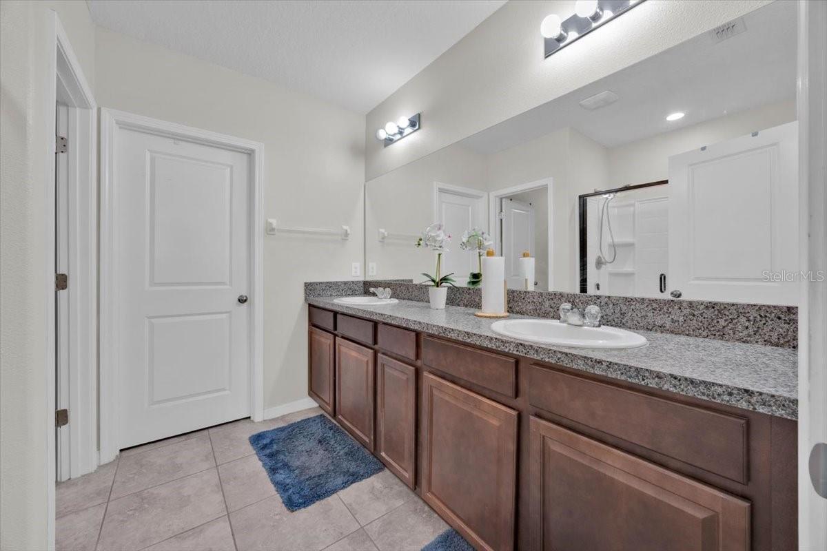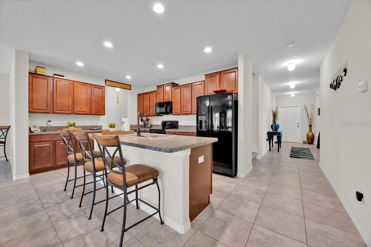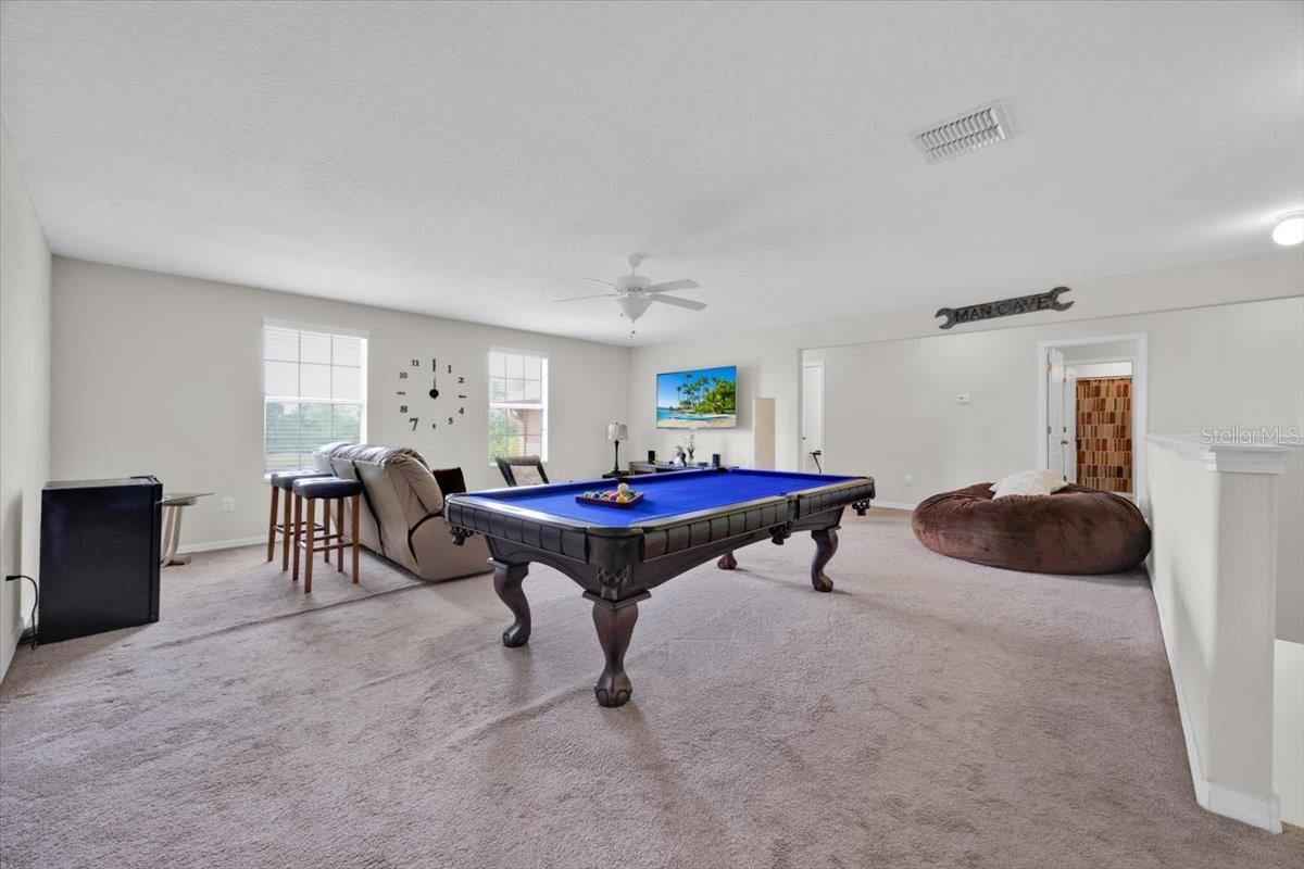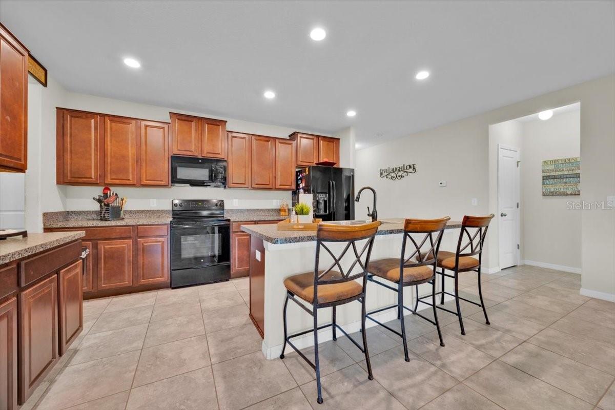 Welcome to this grand two-story pool home just steps away form the clubhouse featuring 6 bedrooms, 3 full bathrooms, a 2-car garage, and a resort-style Pebble Tec saltwater heated pool with a sun shelf—all fully screened and fenced for complete privacy. Freshly painted in 2024, this spacious home boasts a bright open floor plan with 9’ ceilings, a large kitchen with center island, GE appliances, 42” upper cabinets, and a combined dining and living room ideal for entertaining family and friends. The first floor includes the owner’s suite with a double vanity bathroom, a second bedroom, and a versatile flex room perfect for a home office or guest space. Upstairs, a generous loft leads to four additional bedrooms and two full bathrooms, providing ample room for everyone. Additional features include dual-zone A/C, a propane tank, and metal storm shutters for added peace of mind. Conveniently located near restaurants, entertainment, and major highways, this home truly has it all. Schedule your private showing today!