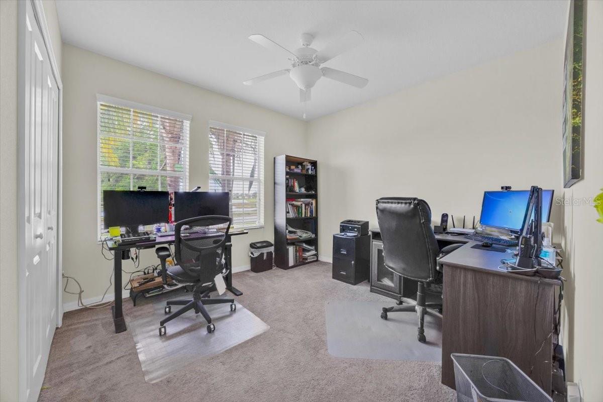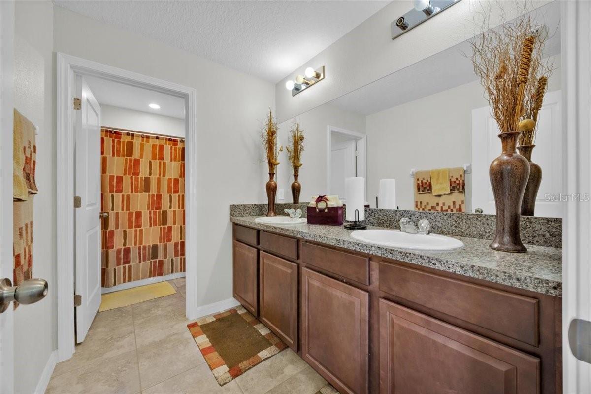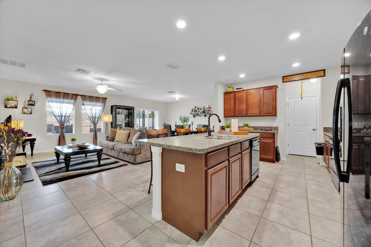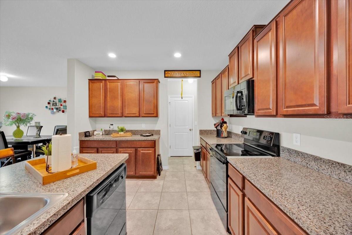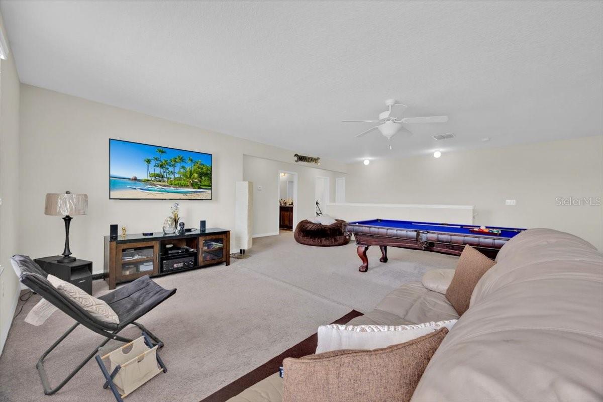 Welcome to this grand two-story pool home just steps away form the clubhouse featuring 6 bedrooms, 3 full bathrooms, a 2-car garage, and a resort-style Pebble Tec saltwater heated pool with a sun shelf—all fully screened and fenced for complete privacy. Freshly painted in 2024, this spacious home boasts a bright open floor plan with 9’ ceilings, a large kitchen with center island, GE appliances, 42” upper cabinets, and a combined dining and living room ideal for entertaining family and friends. The first floor includes the owner’s suite with a double vanity bathroom, a second bedroom, and a versatile flex room perfect for a home office or guest space. Upstairs, a generous loft leads to four additional bedrooms and two full bathrooms, providing ample room for everyone. Additional features include dual-zone A/C, a propane tank, and metal storm shutters for added peace of mind. Conveniently located near restaurants, entertainment, and major highways, this home truly has it all. Schedule your private showing today!
