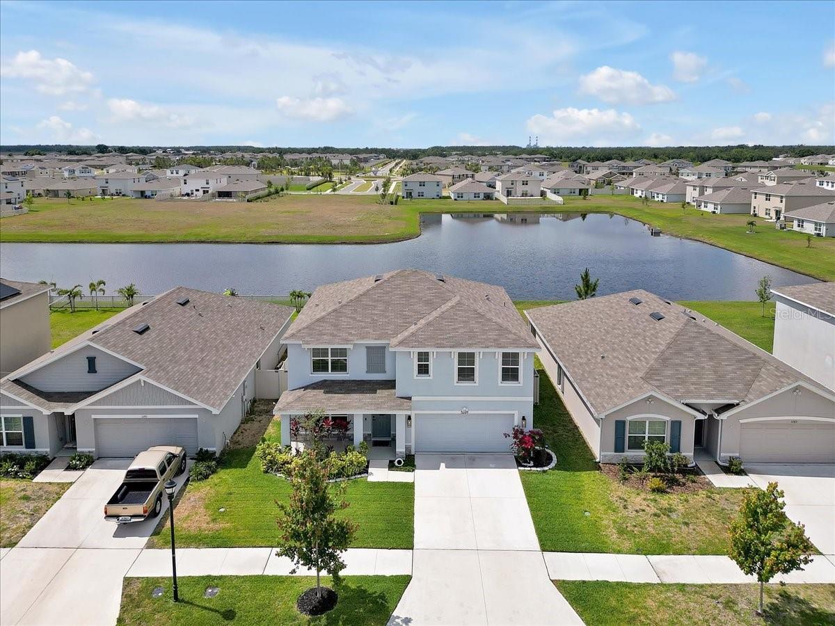 **This home is new, ready to move in and fully upgraded! Better than plain new construction!! Take advantage of this incredible opportunity in one of the biggest Hayden models with 2,674sqft. Stunning 5BR/3BA home with custom upgrades & pond view!! One bedroom and a full bathroom are conveniently located on the main floor, perfect for guests or multigenerational living. Enjoy luxurious touches like custom chandeliers, ceiling fans, and a beautifully designed primary bathroom featuring upgraded finishes and a double walk-in closet. The modern kitchen with stone accents on the island and all appliances included. Cozy up in the living area with a stunning electric fireplace and TV framed by stone detailing. Step outside to your fenced backyard with peaceful pond views ideal for relaxing or entertaining. This home offers modern elegance and thoughtful design throughout. Located in BERRY BAY an amazing Prime Location, just minutes from US-301 and I-75, offering easy access to Tampa, Brandon, and Sarasota. A short drive to Sun City Center for all shopping, dining, medical services, and Southshore Bay Lagoon for lots of friendly fun. Don’t miss the chance to own this exceptional property!