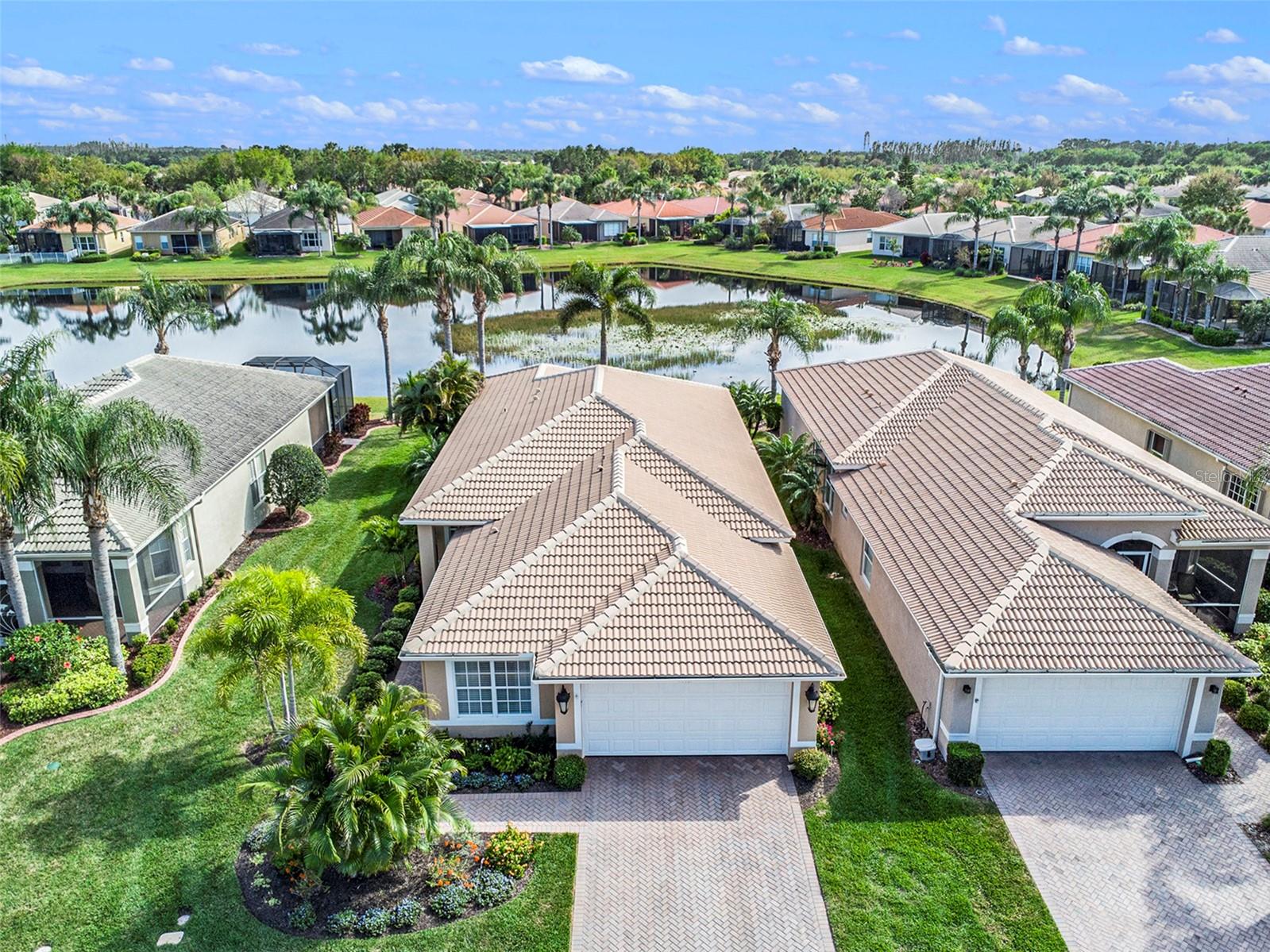 Welcome to this exquisite 3-bedroom, 2-bathroom home with a den, offering a serene and picturesque view overlooking a tranquil pond in the heart of a vibrant 55+ community. Nestled in a peaceful corner of the neighborhood, this residence provides the perfect blend of comfort and luxury for those seeking an active and fulfilling lifestyle. The spacious and thoughtfully designed interior features a modern kitchen with upgraded appliances, a cozy den that can be used as a home office or a quiet reading nook, and two well-appointed bedrooms with ample closet space. The open-concept living and dining area seamlessly connect, creating a welcoming space for entertaining friends and family. Step outside onto the private patio to enjoy the breathtaking scenery of the pond and its surrounding greenery. This community boasts an array of amenities, from an exclusive clubhouse and state-of-the-art fitness center to pristine tennis courts and sparkling pool, there's something for everyone here. The meticulously maintained sidewalks wind through lush greenery, perfect for leisurely strolls. With deed restrictions ensuring the preservation of our community's charm, and special regulations maintaining its integrity, residents find peace of mind in our gated enclave, though absent of guards. Reclaimed water irrigation sustains our verdant landscapes while minimizing environmental impact. Membership fees cover essential services including cable TV, internet, and security, along with maintenance of private roads and recreational facilities, ensuring every resident experiences the epitome of luxury living.