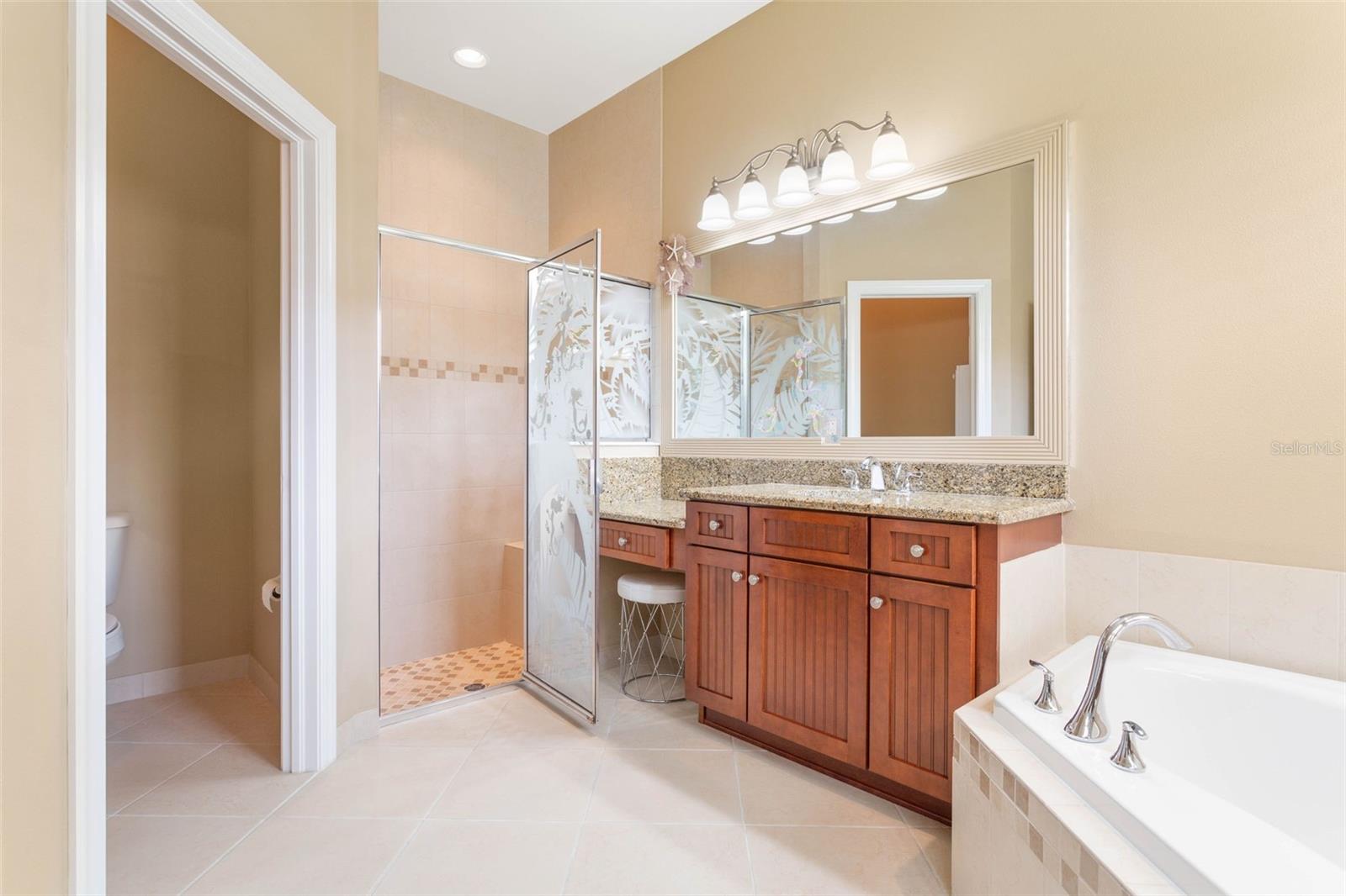 One or more photo(s) has been virtually staged. This popular Capri model offers 3 bedrooms, 2 baths, and 2 car garage. This pristine "move-in-ready" home is located in Valencia Lakes, The Greater Tampa Bay's premier 55+ resort style community! As you enter through the double 8' entry doors, notice the dynamic 12'6 ft. high coffered ceiling in the foyer. Most will appreciate how the great room and informal dining room open to each other as well as the outdoor living space. The Triple 8 ft. sliders off the main living area provides direct access to the screened in/covered rear lanai...the perfect place to take advantage of your own completely private back yard oasis. This home showcases large floor tile throughout the entire home, that's right no carper anywhere. The beautiful gourmet kitchen features 42" maple cabinets, upper and lower lighting w/ crown molding and valance, granite countertops, stainless single bowl sink, and all new appliances including a French door refrigerator, GE stainless range, microwave and Bosch dishwasher. The primary-suite is spacious a has 2 walk-in closets. The spa-like primary bathroom showcases a separate walk-in shower with seat and decorative tile, roman tub, separate vanities, granite countertops and maple 36" cabinets. The den/3rd bedroom has double 6 panel French doors and a closet. Bedroom #2 is located in it's own wing for maximum privacy for guests. Bath #2 features maple cabinets, granite counter with extended " banjo top" and tub/shower combo. The laundry room includes upper cabinets for storage and a utility sink with cabinet plus upgraded New large capacity washer and dryer. This spectacular home is loaded with many custom features such as: New HVAC in 2020, New water heater, water softener system, New disposal, custom light fixtures and ceiling fans, wood plantation shutters, framed bathroom mirrors, screened front entry, 4' brick paver patio extension, epoxy garage floor, New garage opener, rain gutters, New exterior paint and more. Take advantage of all that Valencia Lakes has to offer. fabulous entertainment center, bistro, pools, card rooms, state of the art fitness center and art center, clubs, educational seminars, tennis courts, Bocce ball, Pickle Ball and more. Let the fun begin! This is rated as one of the best over 55+ communities in the country and offers a ton of "green space" throughout the entire community, provides excellent activities and entertainment for the residents. This friendly community provides walking, biking, swimming, and golf cart convenience. The monthly HOA fee includes membership for the clubhouse, security system subscription, and lawn maintenance/irrigation without extra charges. Start living the dream and schedule your showing today!
