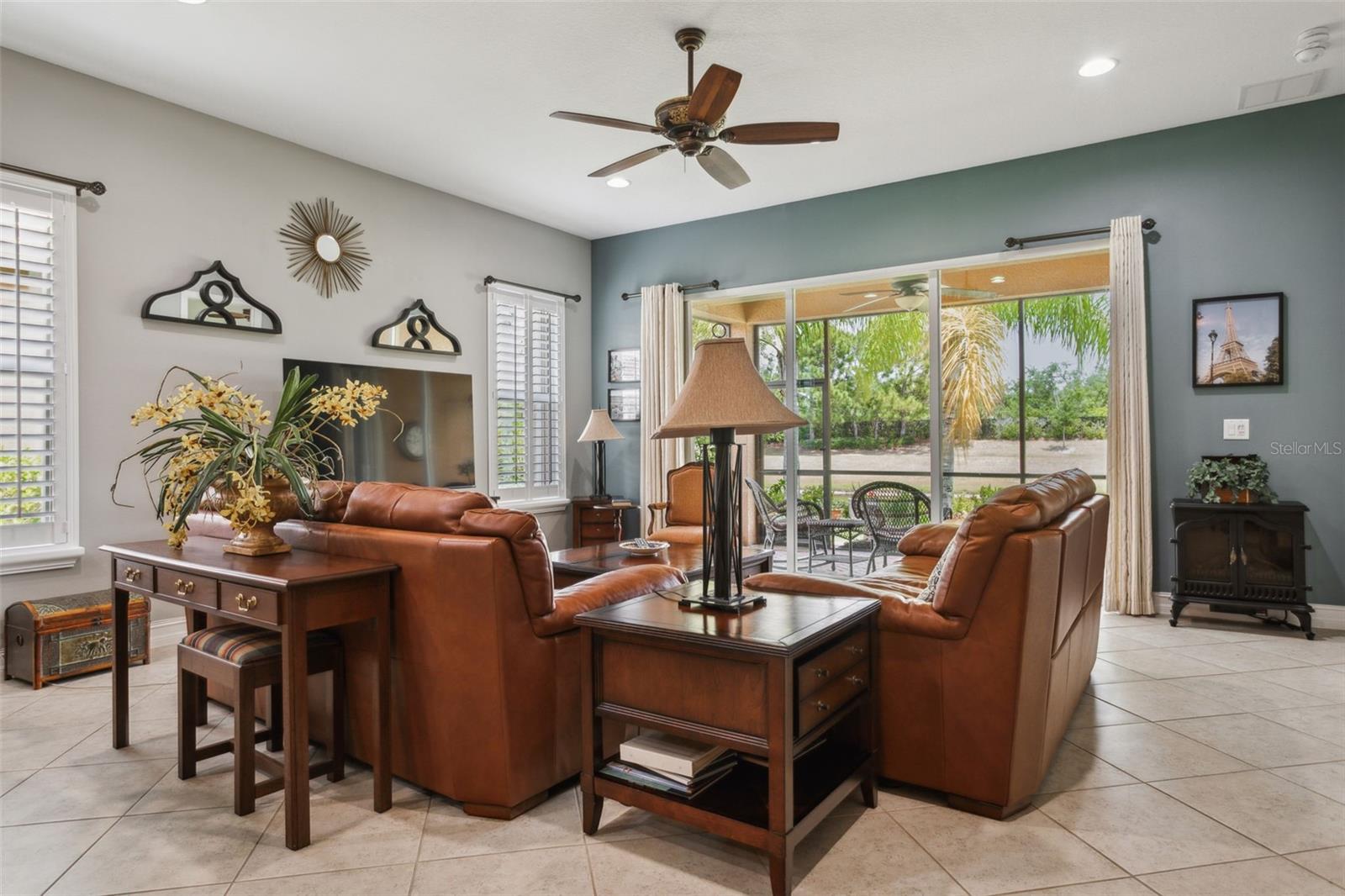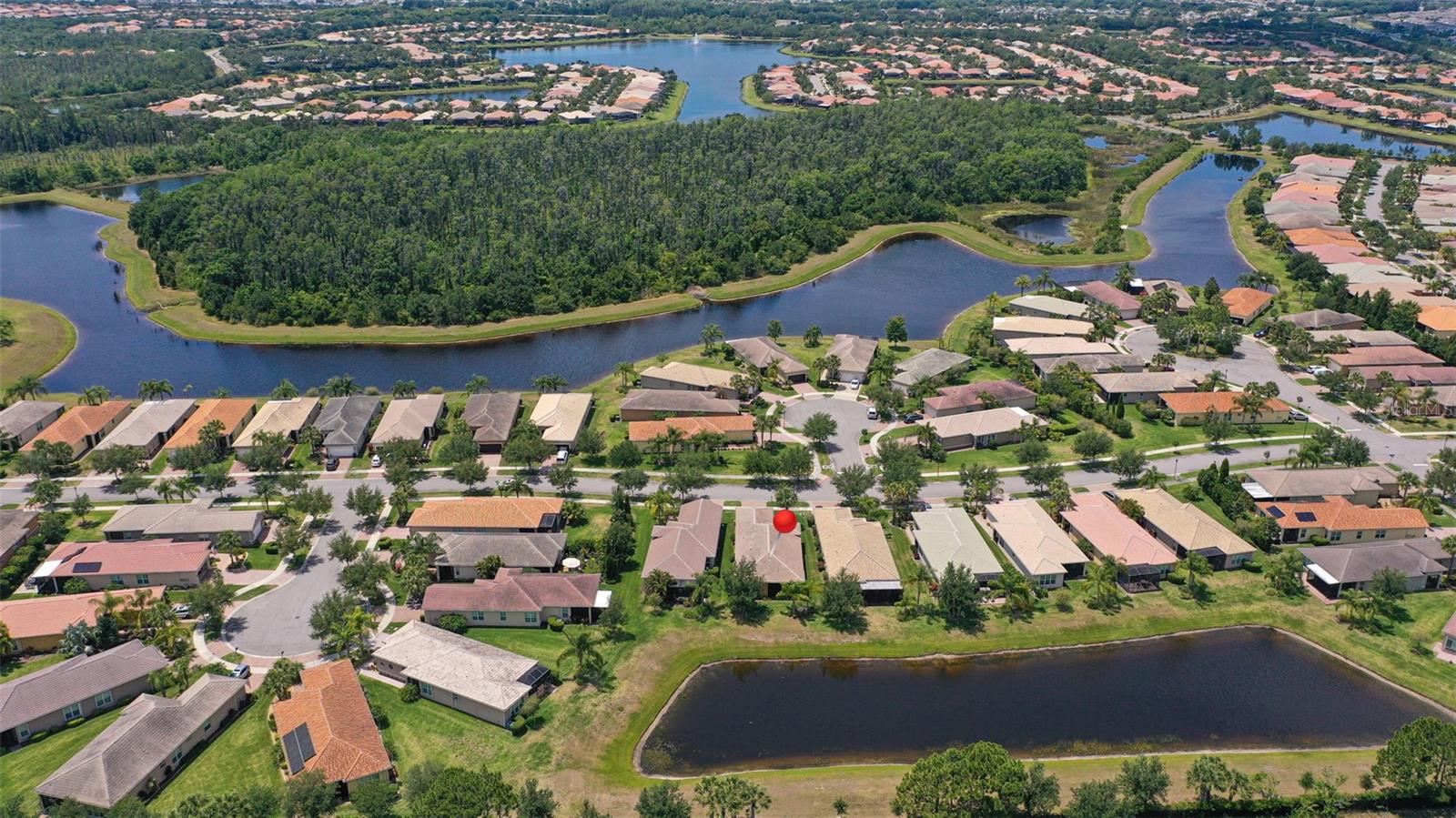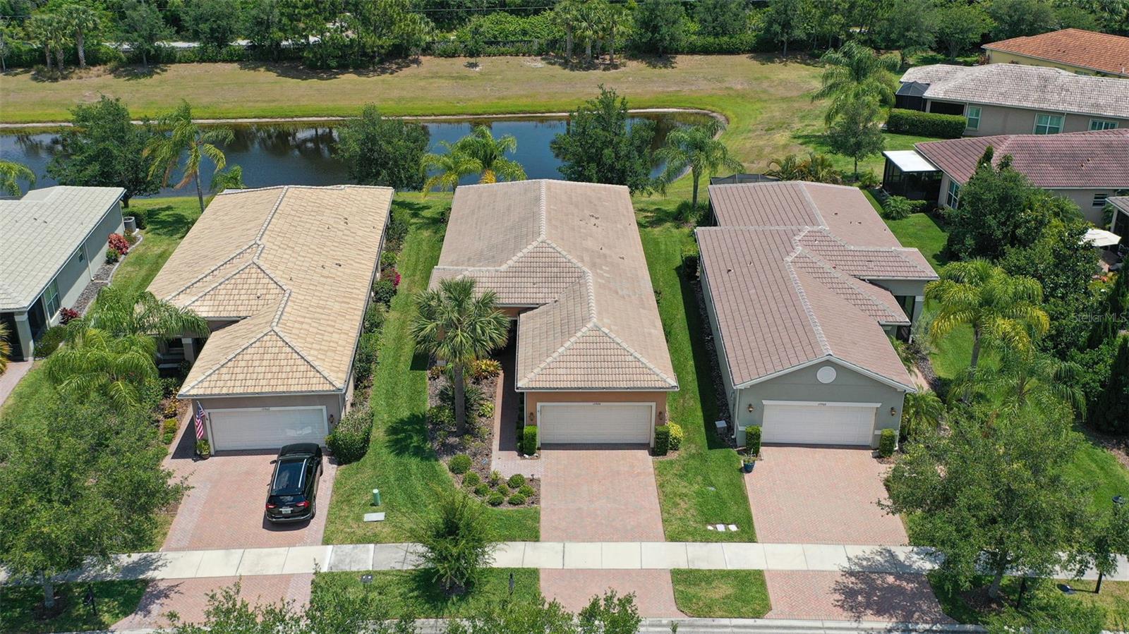Sip on your morning coffee while enjoying the picturesque Florida sunrise from your own screened in covered lanai with "private water view" with no backyard neighbors in sight. This popular Salerno model offers 3 bedrooms, 2 baths, and 2 car garage. This home does not require lender flood insurance and is designated as a flood zone X due to the higher elevation. This pristine home is located in Valencia Lakes, The Greater Tampa Bay's premier 55+ resort style community. As you approach this lovely home, notice the 8' entry door, bay window and covered front porch for the ultimate curb appeal. Most will appreciate how the great room and kitchen open to each other with a spacious separate formal dining room for special occasions. The large triple 8' sliders off the main living area provide direct access to the screened covered rear lanai with tranquil water view...the perfect place to relax or entertain. This home showcases large floor tile laid on a diagonal throughout all main living areas and den/3rd bedroom. The luxurious gourmet kitchen features 42" maple cabinets, upper and lower lighting, cabinet crown molding and valance, glass doors with downlighting, granite countertops, large extended granite serving bar peninsula for casual dining, tumble stone marble back splash, upgraded stainless appliances including stainless French door refrigerator, Bosch dishwasher, microwave, built-in cabinet pantry and roll-out shelves. The primary suite is spacious a includes 2 walk-in closets and a serene water view. The spa-like primary bathroom showcases a separate walk-in shower with seat and decorative tile, separate vanities, granite countertops and 36" maple cabinets. The den/3rd bedroom has double 6 panel French doors and custom built-in. Bedroom #2 is located in it's own wing for maximum privacy for guests. Bath #2 features maple cabinets, granite counter with extended " banjo top" and tub/shower combo. The laundry room includes upper cabinets for storage and a utility sink with cabinet, plus a washer and dryer. This spectacular home is loaded with many custom features such as: Water Softener System, Carrier HVAC replaced in(2017), accordion storm shutters, custom plantation shutters, rain gutters, designer fans and light fixtures and more. Don't forget to ask about the available furniture! Take advantage of all that Valencia Lakes has to offer. Fabulous social hall, bistro, pools, card rooms, state of the art fitness center, art/crafts center, clubs, educational seminars, tennis courts, bocce ball, pickle ball and more. Let the fun begin! This is rated as one of the best over 55+ communities in the country and offers a ton of "green space" throughout the entire community, and provides excellent activities and entertainment for the residents. This friendly community provides walking, biking, swimming, and golf cart access to restaurants and shopping. The monthly HOA fee includes membership for the clubhouse, security system monitoring, cable/internet and lawn maintenance/irrigation without extra charges. Start living the dream and schedule your private showing today!