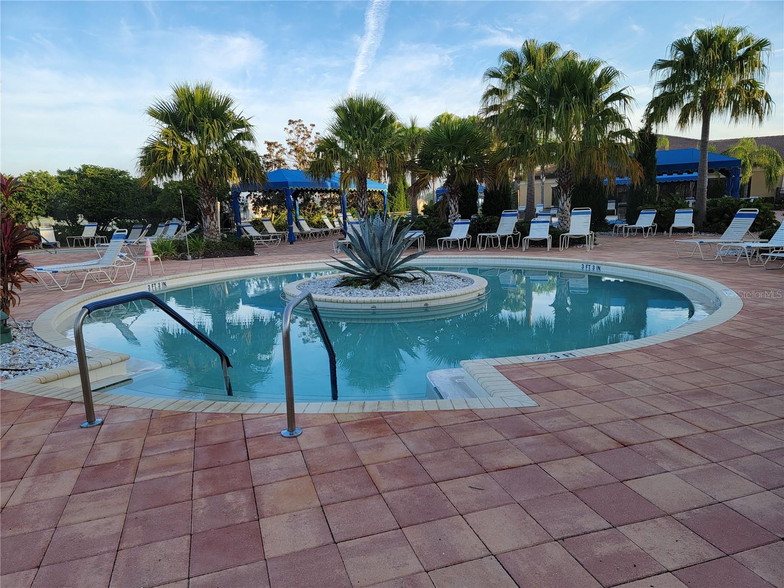 Motivated Seller and easy to show with a little notice!!! Welcome to this Valencia Lakes lightly lived in Cristina Villa split-bedroom plan home! Brick paver driveway and entry leads to light and bright Great Room with crown molding. The kitchen features wood cabinetry with over/under lighting, stainless steel undermount sink plus stainless-steel appliances and granite countertops. NO carpet in this Villa-neutral ceramic tile throughout the home. Additional features include plantation shutters, Hunter Douglas remote controlled retractable with light-diffusing vertical sheer panels, utility sink in garage, security system monitored by ADT, garage floors with epoxy coating and more. Enjoy quiet evenings or your morning coffee on the screened lanai overlooking a pond. Navigate around this active 55+ community in a golf cart, walk, bicycle, work out in the Fitness Center, swim in a heated pool, play Pickle Ball, compete in Tennis, join over 100+ clubs or just relax. Easy access to shopping, medical facilities, golf clubs, dining, houses of worship and airport.