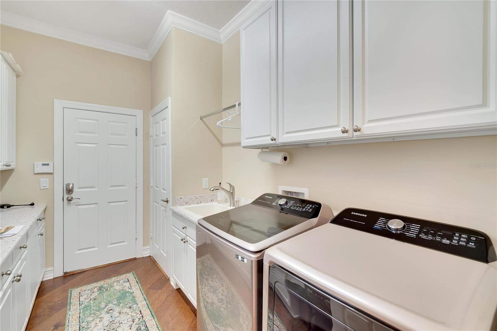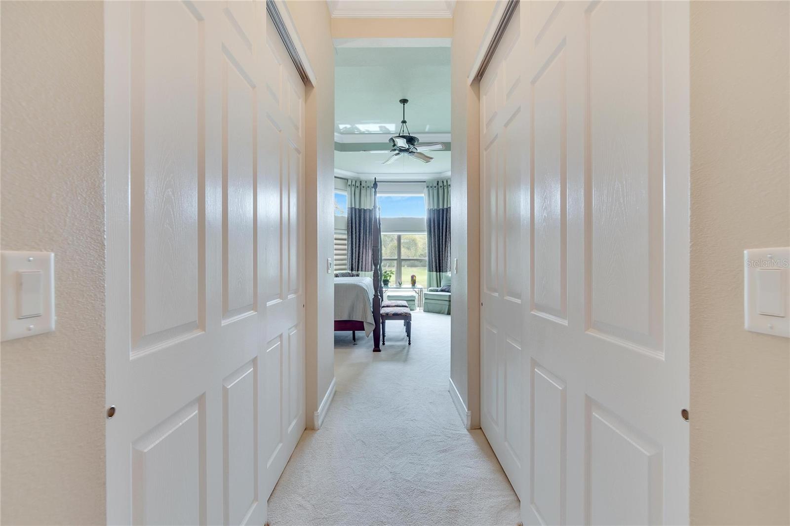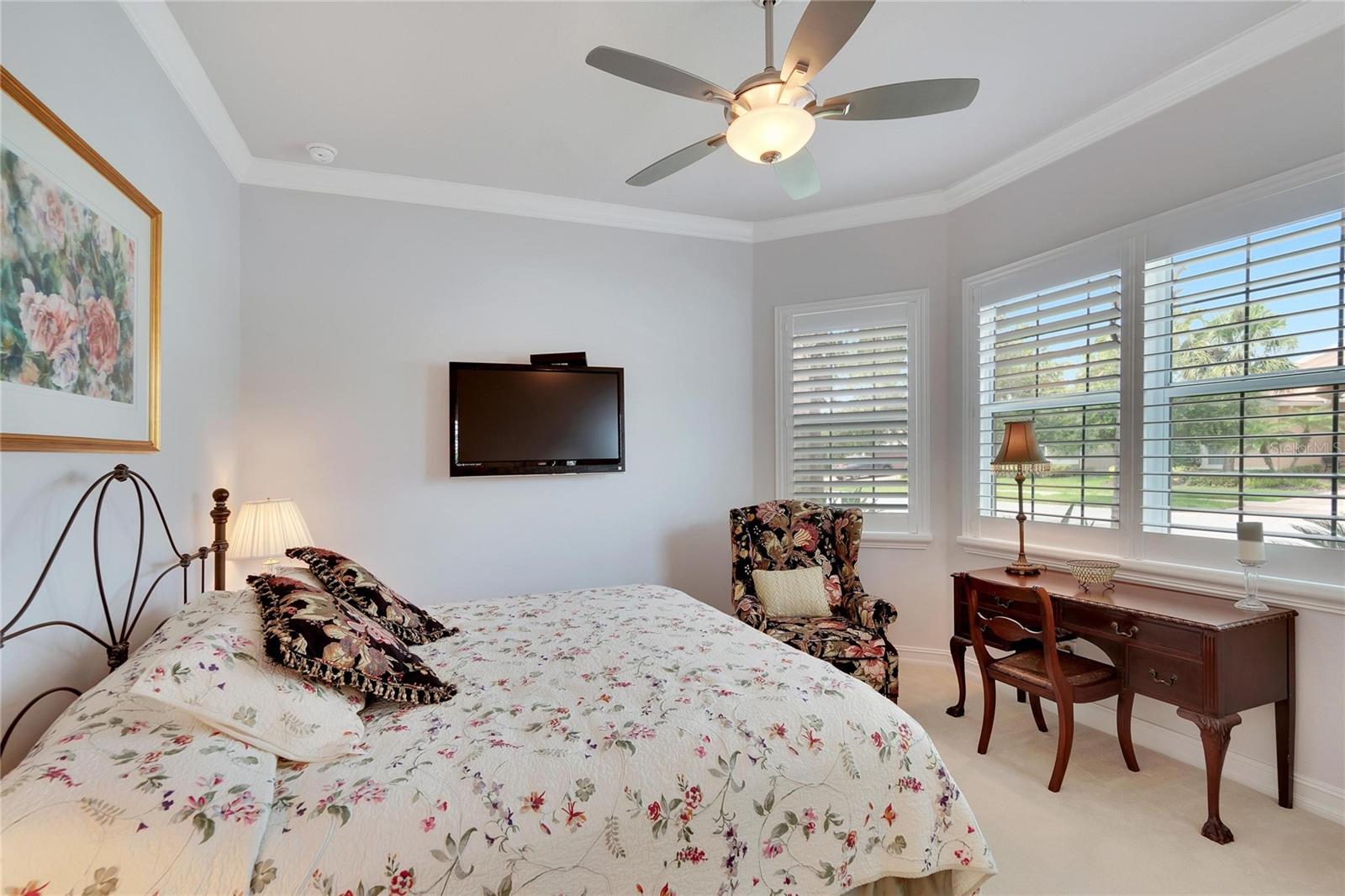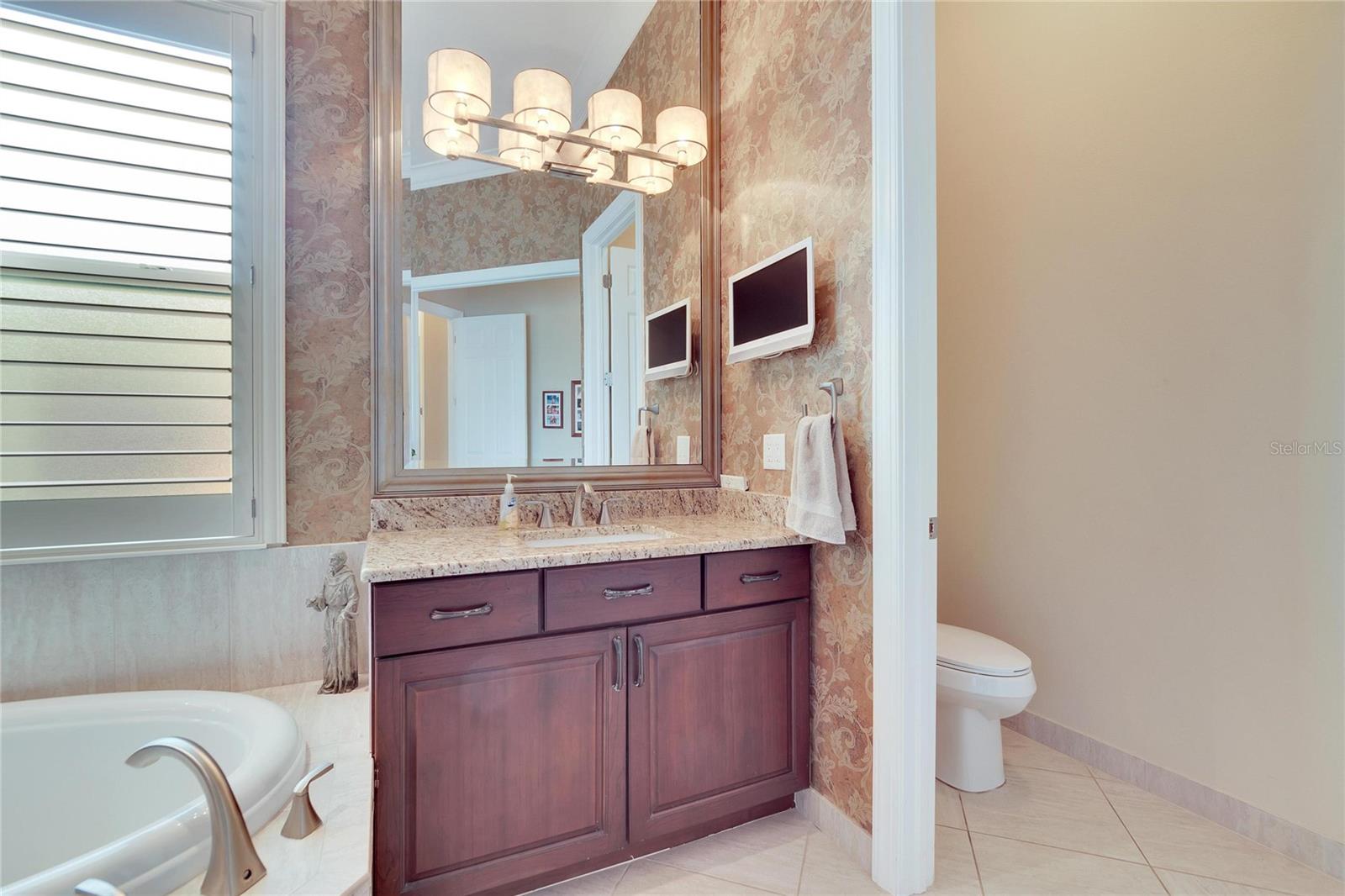 Welcome to luxury living at its finest in Valencia Lakes, Florida’s premier 55+ community. Step into the elegance of the Tivoli Model, where double wrought iron glass doors open into a grand great room offering stunning views of tranquil waters and the extended outdoor lanai. This custom-designed home boasts a wealth of features designed for comfort and style. The expansive great room is highlighted by a tiered ceiling adorned with crown molding, complemented by hand-scraped hickory hardwood floors that flow seamlessly through the great room, kitchen, dining area, powder bath, and laundry room. An entertainment center complete with a wet bar and wine cooler sets the stage for relaxed gatherings and evenings of entertainment. In the heart of the home, the gourmet kitchen is a chef’s delight with custom-designed maple cabinets, abundant pull-outs, and upgraded stainless steel appliances including a oven/microwave combo. The stainless steel range hood is a focal point, accented by subway tile extending to the ceiling. A generously sized bar offers additional workspace and casual dining options. Retreat to the master suite featuring a majestic 12-ft trey ceiling with crown molding, dual master closets with custom cabinetry, and a luxurious spa-like master bath. This sanctuary includes beveled framed mirrors, plantation shutters, dual sinks, a soaking tub, a spacious shower, and a linen closet for added convenience and storage. The second bedroom functions as another master suite, complete with a walk-in closet, plantation shutters, and an upgraded bath boasting custom cabinets and stone countertops. A well-appointed den with wood flooring provides flexible space for a home office or additional living area. Additional upgrades throughout the home include comfort height commodes, large baseboards, designer ceiling fans, upgraded lighting fixtures, custom window coverings, and rear speakers in the great room. A water softener enhances daily living comforts. For added convenience, the large laundry room offers ample cabinet and counter space along with a washer and dryer. This meticulously maintained property is move-in ready, offering not just a home but a lifestyle tailored for relaxation and enjoyment. Don’t miss your chance to own this exquisite home in Valencia Lakes, where luxury meets convenience in a vibrant 55+ community setting. Schedule your private tour today and discover the unparalleled charm and sophistication of this remarkable property.
