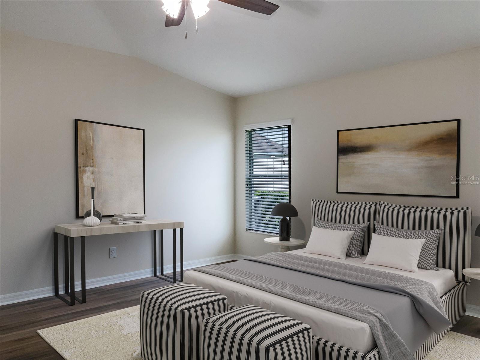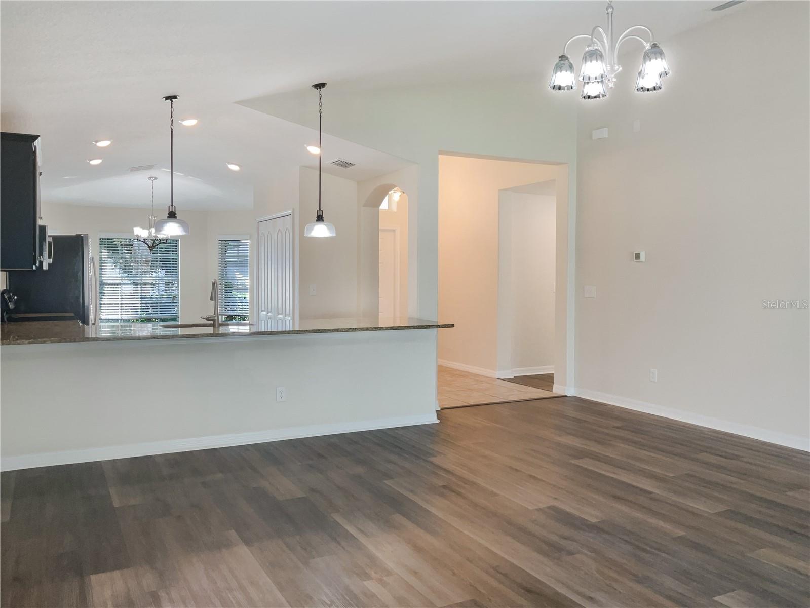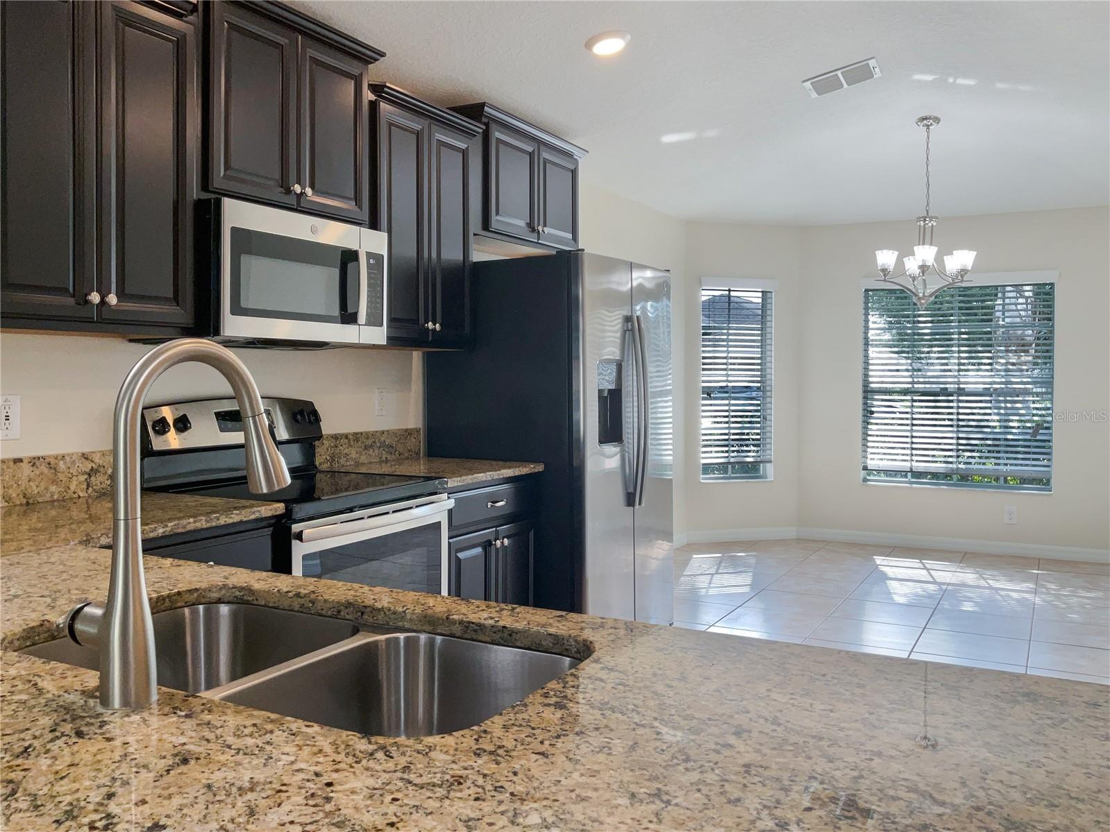 One or more photo(s) has been virtually staged. Welcome to Vista Palms, where comfort meets convenience in this meticulously maintained Lennar home! This energy-efficient gem is designed to keep utility costs low while offering a warm and inviting atmosphere. As you step inside, you'll be captivated by the spacious open layout and soaring cathedral ceilings that create an immediate sense of grandeur. The eat-in kitchen is a chef's dream, featuring a breakfast bar, dinette seating, recessed lighting, and stainless steel appliances. The kitchen is beautifully appointed with granite countertops, pendant lighting, 42" staggered maple cabinets with pull-out shelves, and a charming bay window, all seamlessly connected to the cozy family room. Step outside to enjoy Florida’s beautiful weather on the screened lanai, perfect for relaxing or entertaining family and friends. The primary suite boasts a walk-in closet, dual-sink granite vanity, elegant wood cabinets, and an oversized glass-enclosed shower. The secondary bedrooms are equally spacious and share a well-appointed bathroom. Vista Palms offers resort-style amenities, including a nature trail/jogging path, a clubhouse with a fitness and recreational room, pool with a separate spa/ kiddie pool, bocce ball, a tot lot, and pickleball. With nearby shopping, dining, parks, boat ramps, golf courses, and easy access to US-301 and I-75, this home is perfectly situated for a vibrant lifestyle. Schedule your private showing today! This is a must see!