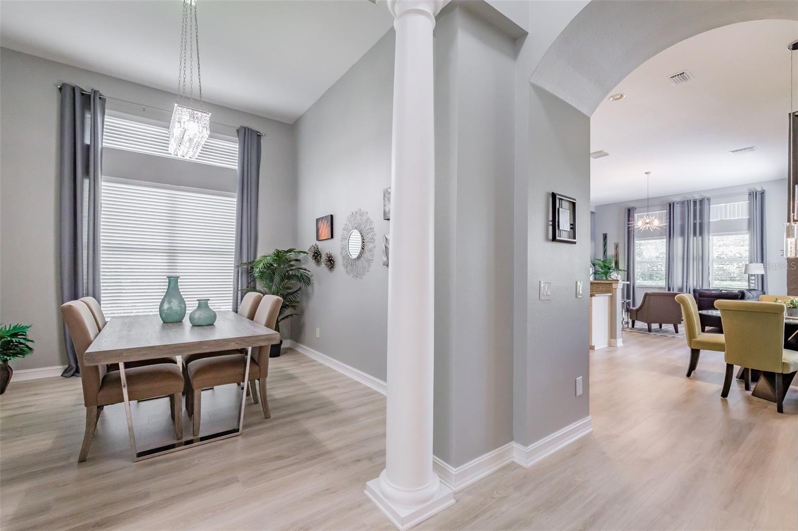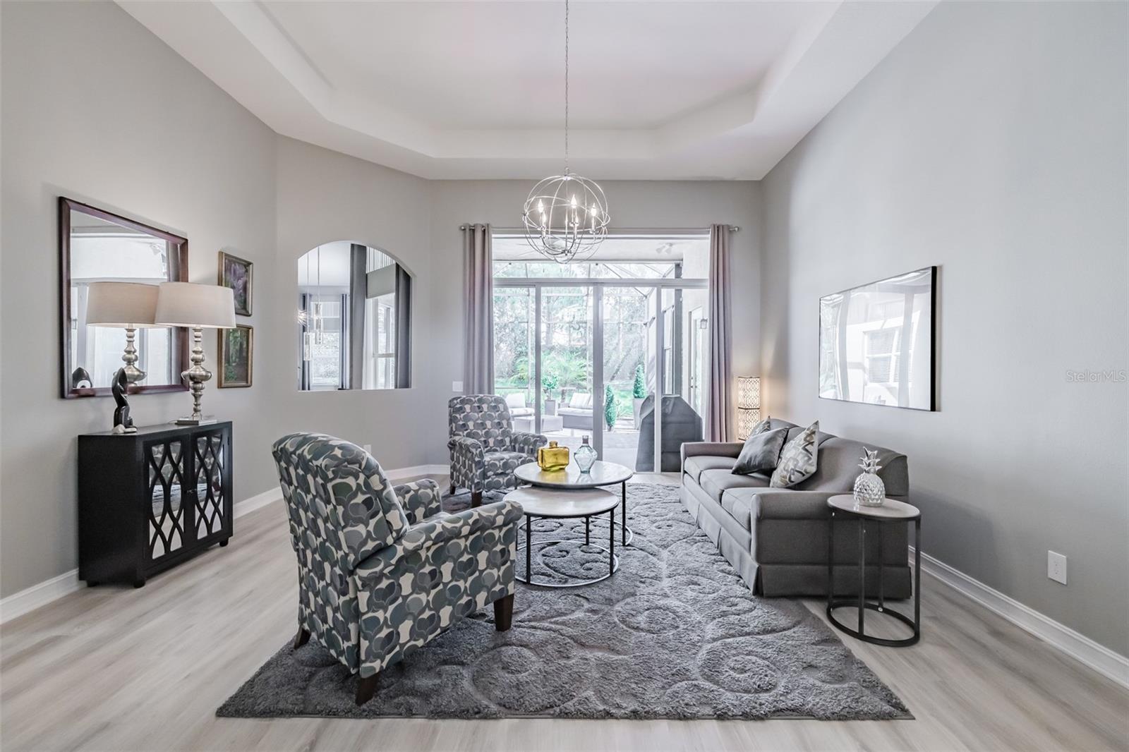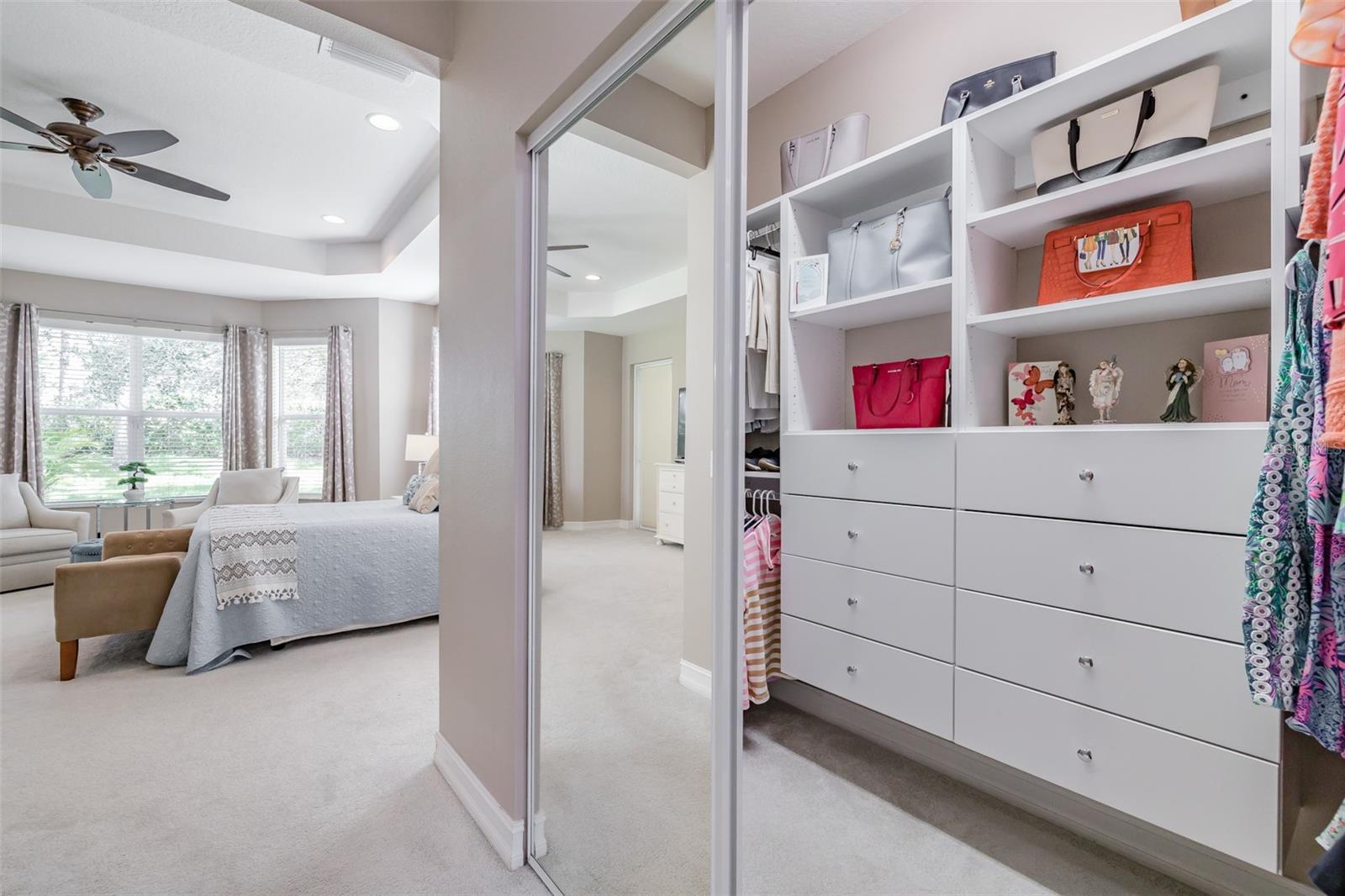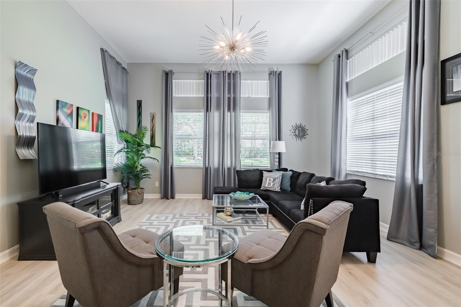 C'mon, make me an Offer that I can't refuse, we are highly motivated. This VERONA is one of few in Valencia Lakes, Tampa Bay's premier Active Adult Community. With 2,866SF under A/C, it will comfortably accommodate the most discerning and demanding amongst us. The Foyer features a 14' ceiling with a niche wall, and it welcomes guests into a Living room with a towering 12'-13' Tray ceiling, two Tuscan columns, and a 10' wide 4-panel Sliding Glass door leading to a private and expansive Lanai. The Dining Room features a 12' ceiling and 2 more Tuscan columns. Caesar would be proud. Recently renovated, the Kitchen is 18'x15' and features a center island, quartz counters, solid maple cabinetry, a 10' long Bar-Height counter that will seat 5 persons, a customized walk-in pantry, double-ovens, counter cooktop, quartz counters topped by optical glass backsplash, double sinks, and a generous Casual Dining Area. The Kitchen overlooks a 20'x17' Family Room with a 12' ceiling, 6 windows with a Transom window above, and a Sliding Glass door to the Lanai. The Master Bedroom has a 9'-10' Tray ceiling, 5 windows, a French door to the Lanai, two custom-finished Walk-In Closets and a very large renovated Ensuite Bathroom. You will love the two separated vanities, Garden Tub, large Walk-In Shower, and the W/C for the Commode. Bedrooms 2 and three are on the opposite side of the house and to the front which will afford you and your guests sublime privacy. The Office/Den is a great space to use as you choose. Throughout the main areas, there is gorgeous laminate flooring, and the bedrooms are carpeted. This house has undergone a magnificent transformative renovation that will not leave you wanting for anything more. Creature comforts are provided by two HVAC units, the main unit was replaced in Spring 2025. The garage features a 'Bump-out' that does afford space for a garage storage system. The Lanai is 29'x18' and it will be a glorious private oasis to live life outdoors. The size, height, and abundance of natural light makes this house feel colossal, yet comfortably large at the same time. You will be proud to call this house, "Home”. Enjoy resort style living at Valencia Lakes. This sought-after community has an amazing 40,000SF Clubhouse offering entertainment shows, dances, over one hundred Clubs, a 5,000SF 24/7 State-of-the Heart Fitness Center, Resort-style pool, 5 Lane-Lap pool, Resistance pool, Spa, Steam & Dry Saunas, 2 Multi-Purpose Fitness Rooms that host Classes, Games Rooms, 7 Pickleball courts, 6 USTA Har-Tru Clay Tennis courts, Bocce, Shuffleboard, Basketball Half-Court, Softball Field, RV & Boat Storage Facility, Gardens plots, Dog Parka a venerated Memorial Honor Circle. Conveniently located to excellent hospitals, Downtown Tampa, Tampa airport, Eclectic St. Petersburg, and a short drive to Disney, Cruise Ports, Sarasota, and some of the best beaches in the country! Come enjoy elegant comfort and begin living your idyllic life. Carpe diem. This home comes with a 13 month Home Warranty for buyer's Peace of Mind and to help make transitioning easier!