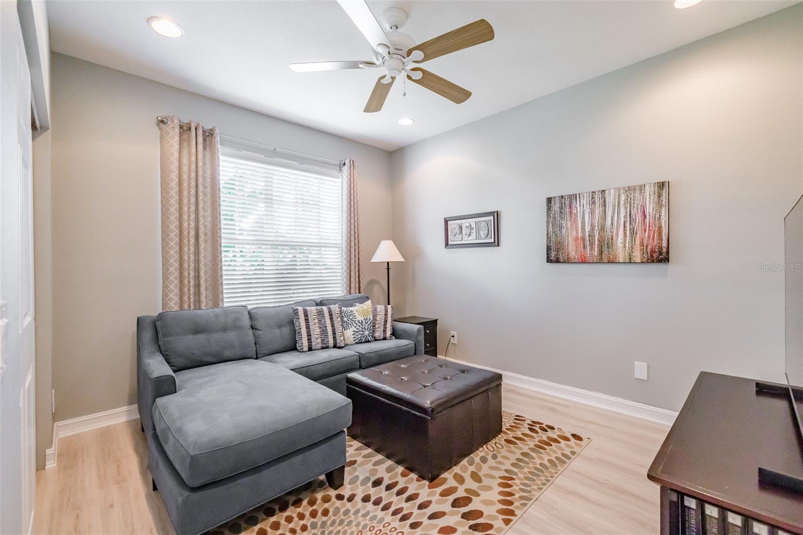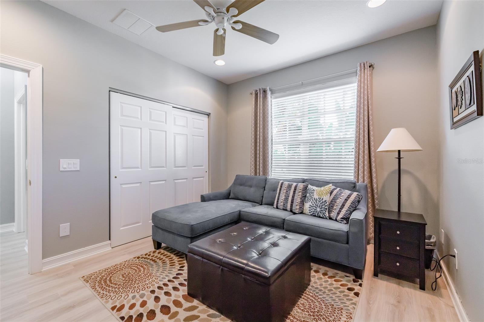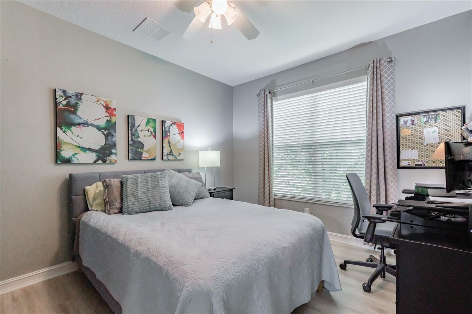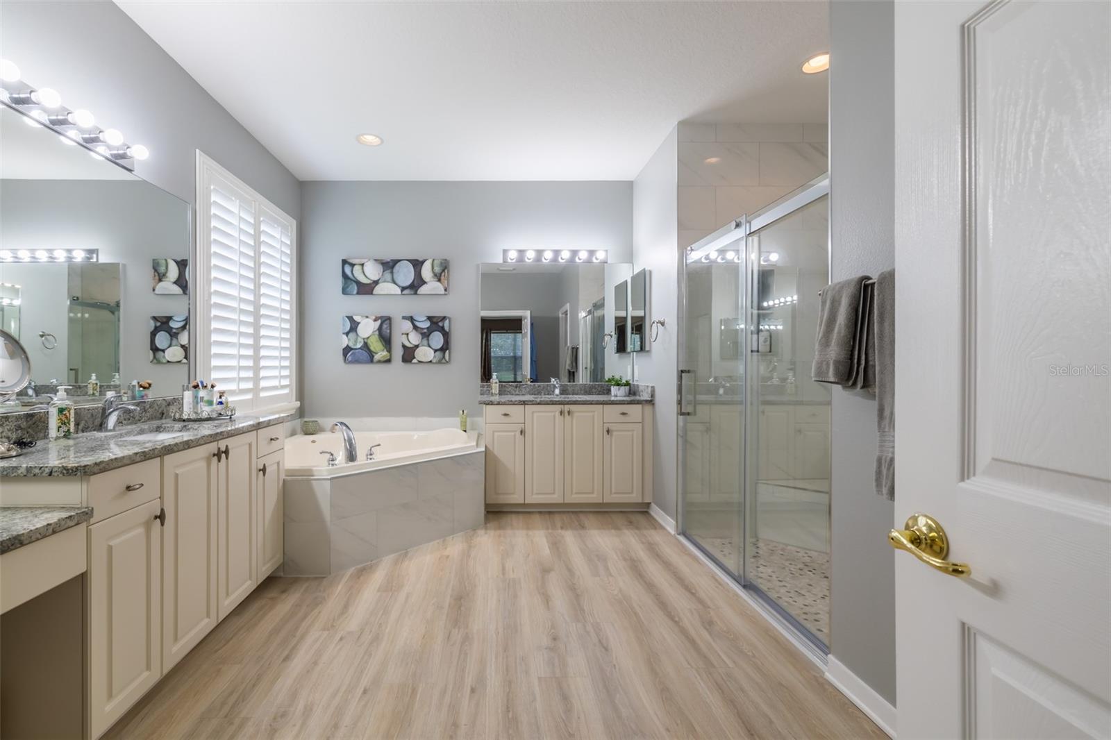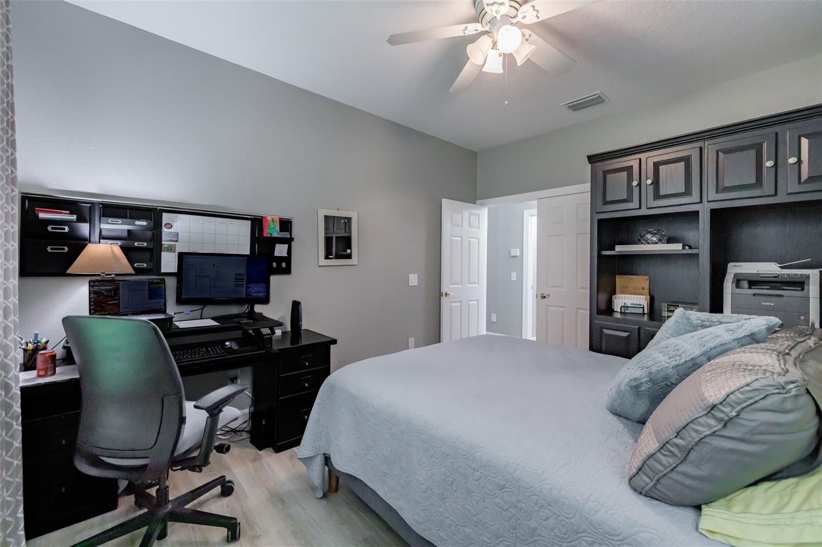 C'mon, make me an Offer that I can't refuse, we are highly motivated. This VERONA is one of few in Valencia Lakes, Tampa Bay's premier Active Adult Community. With 2,866SF under A/C, it will comfortably accommodate the most discerning and demanding amongst us. The Foyer features a 14' ceiling with a niche wall, and it welcomes guests into a Living room with a towering 12'-13' Tray ceiling, two Tuscan columns, and a 10' wide 4-panel Sliding Glass door leading to a private and expansive Lanai. The Dining Room features a 12' ceiling and 2 more Tuscan columns. Caesar would be proud. Recently renovated, the Kitchen is 18'x15' and features a center island, quartz counters, solid maple cabinetry, a 10' long Bar-Height counter that will seat 5 persons, a customized walk-in pantry, double-ovens, counter cooktop, quartz counters topped by optical glass backsplash, double sinks, and a generous Casual Dining Area. The Kitchen overlooks a 20'x17' Family Room with a 12' ceiling, 6 windows with a Transom window above, and a Sliding Glass door to the Lanai. The Master Bedroom has a 9'-10' Tray ceiling, 5 windows, a French door to the Lanai, two custom-finished Walk-In Closets and a very large renovated Ensuite Bathroom. You will love the two separated vanities, Garden Tub, large Walk-In Shower, and the W/C for the Commode. Bedrooms 2 and three are on the opposite side of the house and to the front which will afford you and your guests sublime privacy. The Office/Den is a great space to use as you choose. Throughout the main areas, there is gorgeous laminate flooring, and the bedrooms are carpeted. This house has undergone a magnificent transformative renovation that will not leave you wanting for anything more. Creature comforts are provided by two HVAC units, the main unit was replaced in Spring 2025. The garage features a 'Bump-out' that does afford space for a garage storage system. The Lanai is 29'x18' and it will be a glorious private oasis to live life outdoors. The size, height, and abundance of natural light makes this house feel colossal, yet comfortably large at the same time. You will be proud to call this house, "Home”. Enjoy resort style living at Valencia Lakes. This sought-after community has an amazing 40,000SF Clubhouse offering entertainment shows, dances, over one hundred Clubs, a 5,000SF 24/7 State-of-the Heart Fitness Center, Resort-style pool, 5 Lane-Lap pool, Resistance pool, Spa, Steam & Dry Saunas, 2 Multi-Purpose Fitness Rooms that host Classes, Games Rooms, 7 Pickleball courts, 6 USTA Har-Tru Clay Tennis courts, Bocce, Shuffleboard, Basketball Half-Court, Softball Field, RV & Boat Storage Facility, Gardens plots, Dog Parka a venerated Memorial Honor Circle. Conveniently located to excellent hospitals, Downtown Tampa, Tampa airport, Eclectic St. Petersburg, and a short drive to Disney, Cruise Ports, Sarasota, and some of the best beaches in the country! Come enjoy elegant comfort and begin living your idyllic life. Carpe diem. This home comes with a 13 month Home Warranty for buyer's Peace of Mind and to help make transitioning easier!